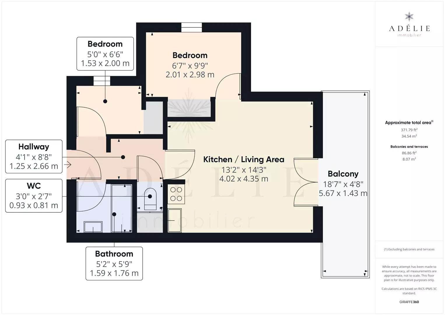 TRS121: 2 PIECES CABINE 6 PERSONNES de 35m2 classé 2*