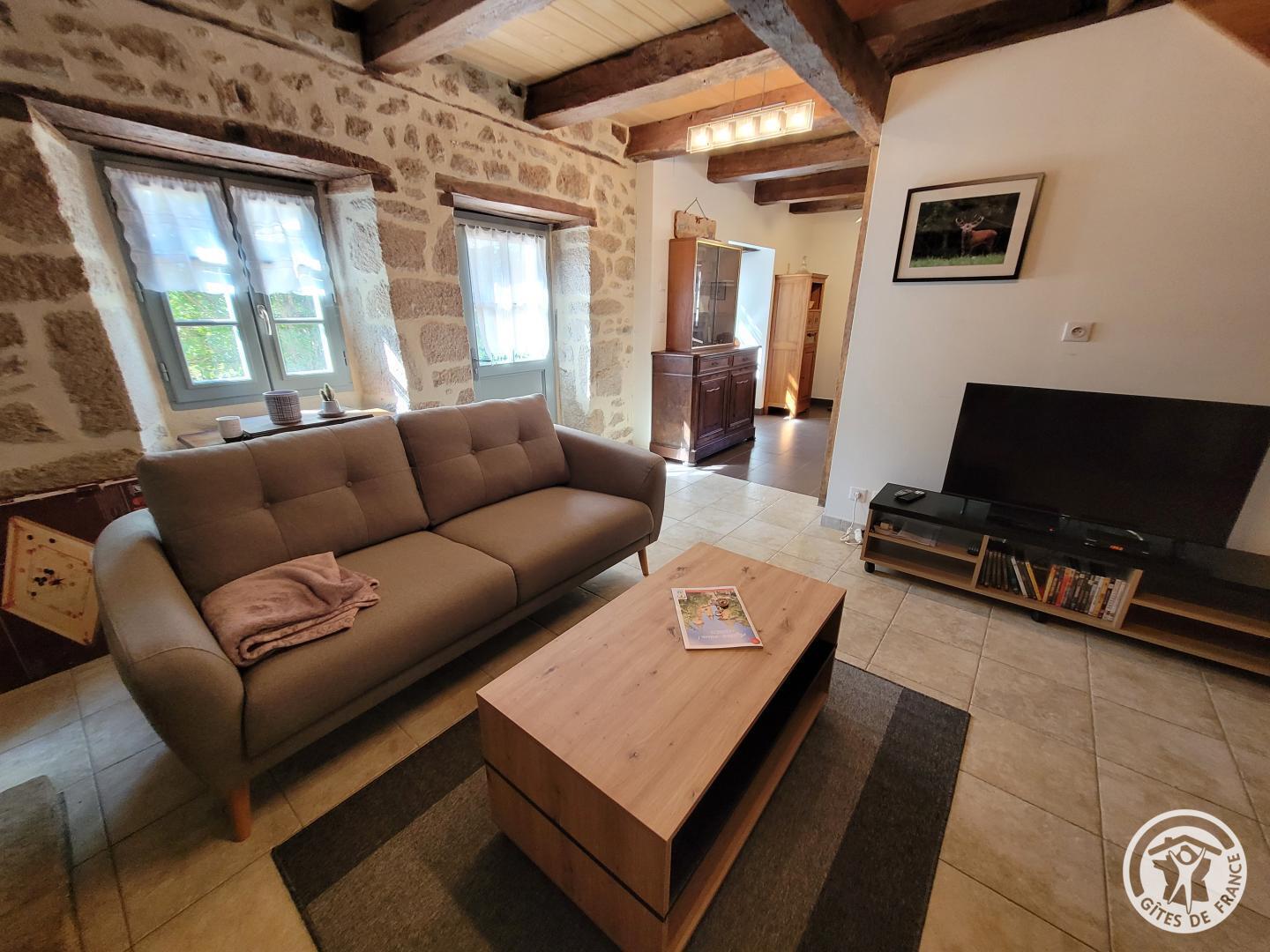 Situé au cœur de la Corrèze, dans le charmant village de Saint-Pardoux-la-Croisille, ce gîte en pierre typique vous accueille dans un cadre verdoyant et reposant. Idéal pour un couple, il peut également accueillir jusqu'à 2 enfants supplémentaires.