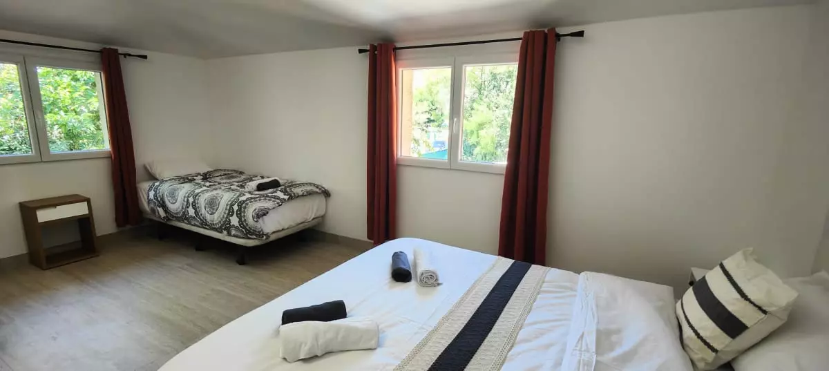 Pour les réservations de plus de 21 personnes, un appartement T3 situé dans la même copropriété peut être privatisé, permettant d'accueillir jusqu’à 6 personnes supplémentaires (sous réserve de disponibilité).