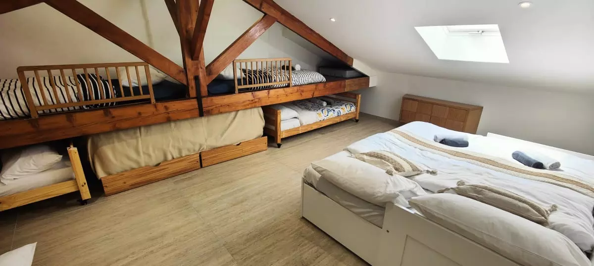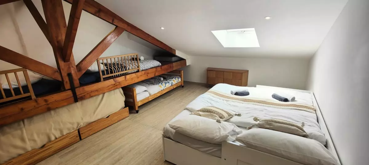 - un dortoir avec deux lits gigognes, deux lits simples 90x190 et deux lits pour enfants 80x180 ;