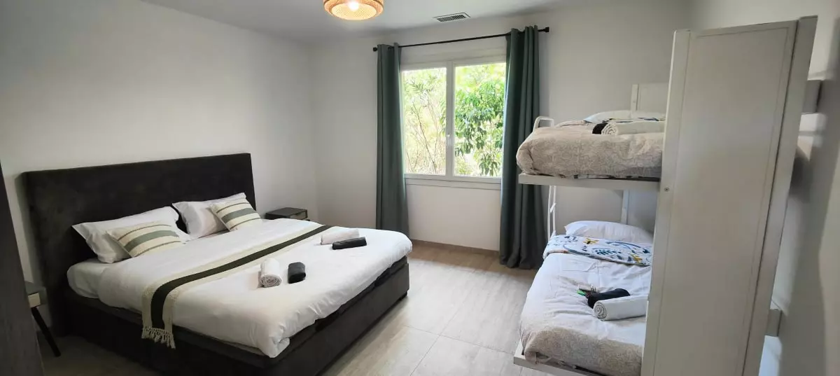 - une cinquième chambre avec un lit double 160x190 et un lit superposé 90x190 ;
