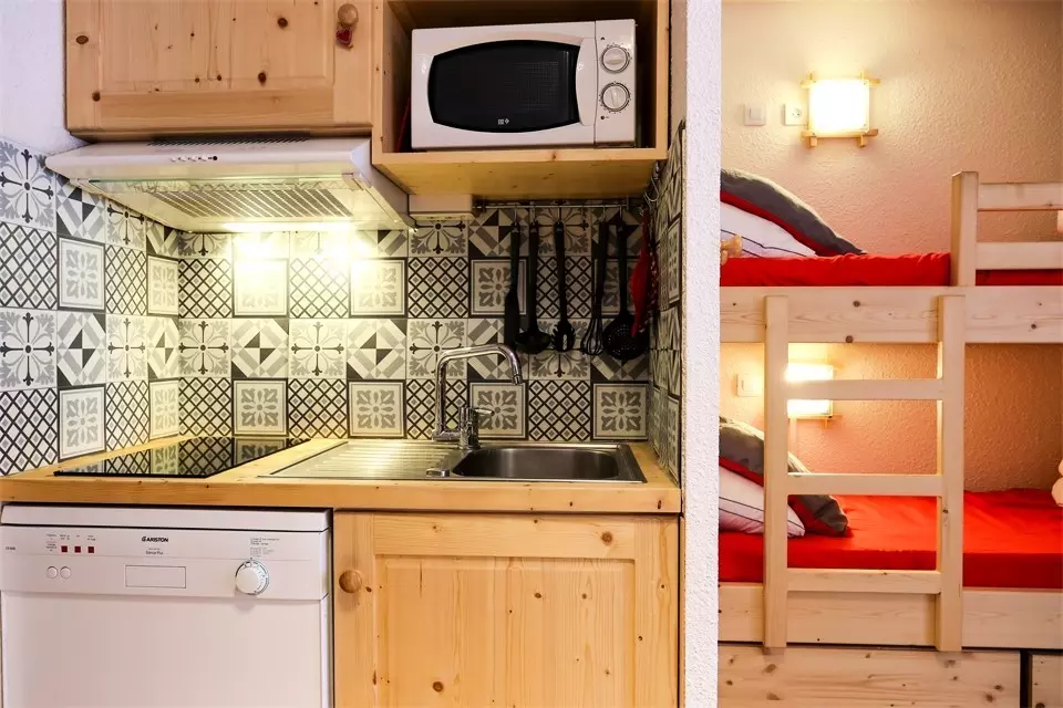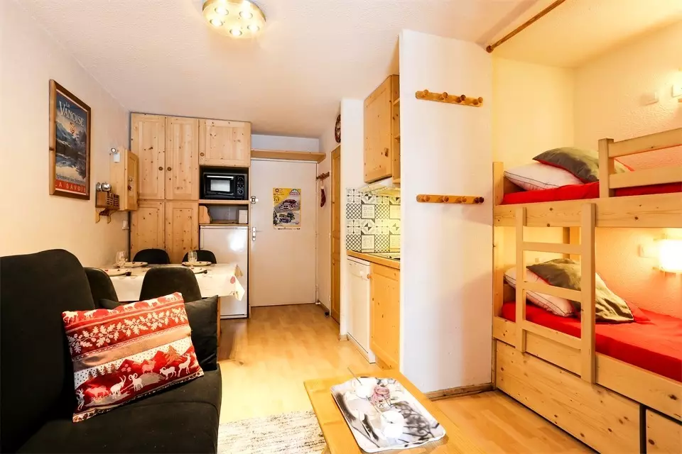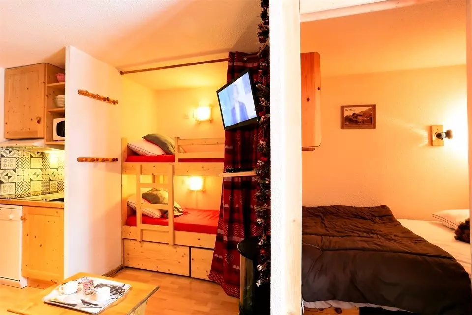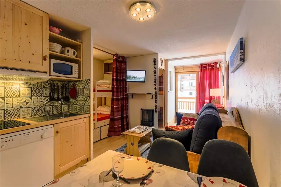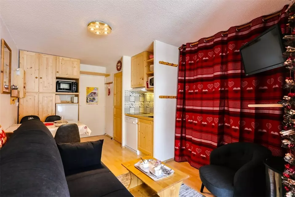 Appartement de 25 m² pour 4 personnes au 2ème étage avec ascenseur. Balcon avec une vue dégagée sur le secteur Plein Sud du domaine skiable.