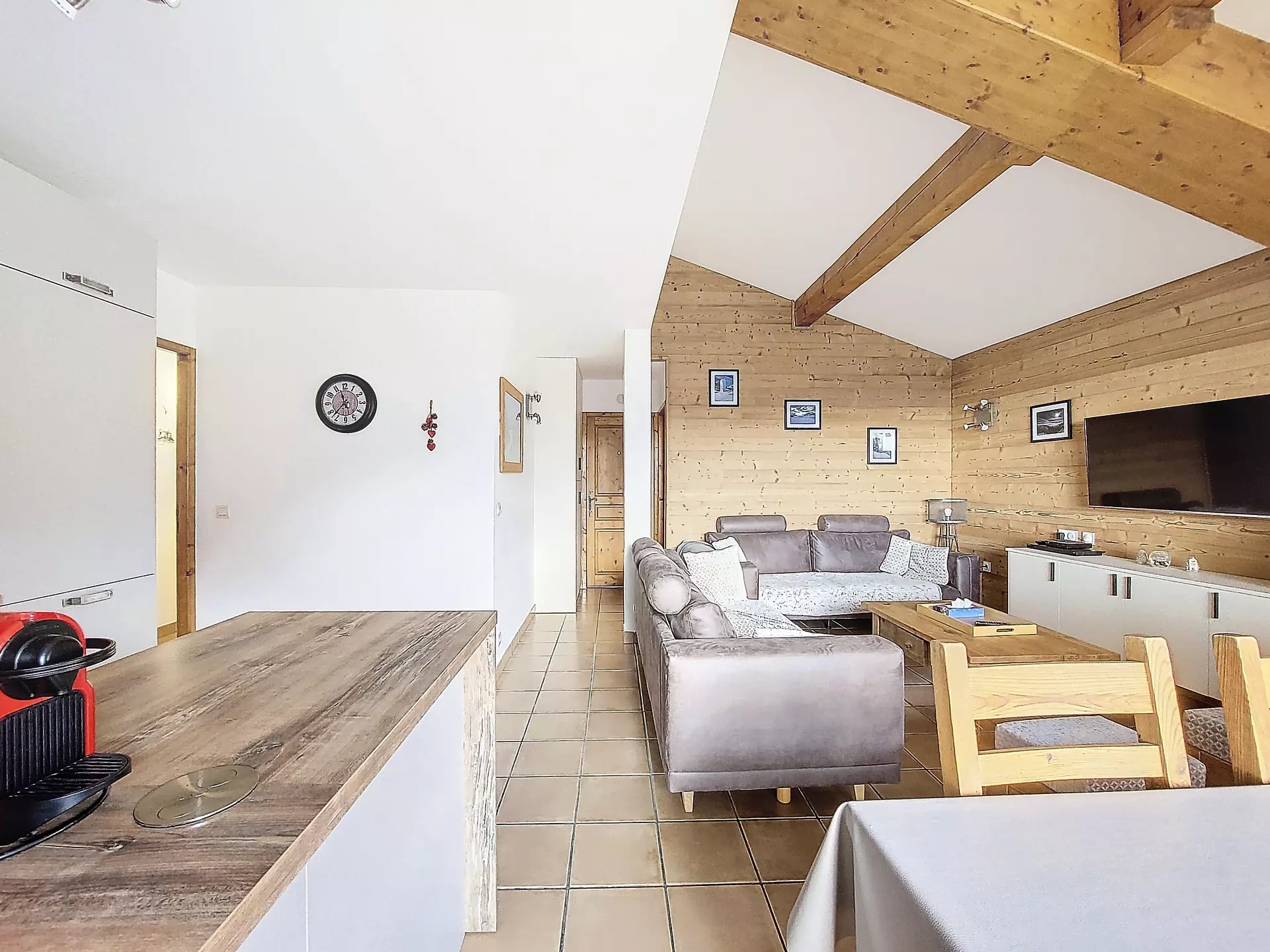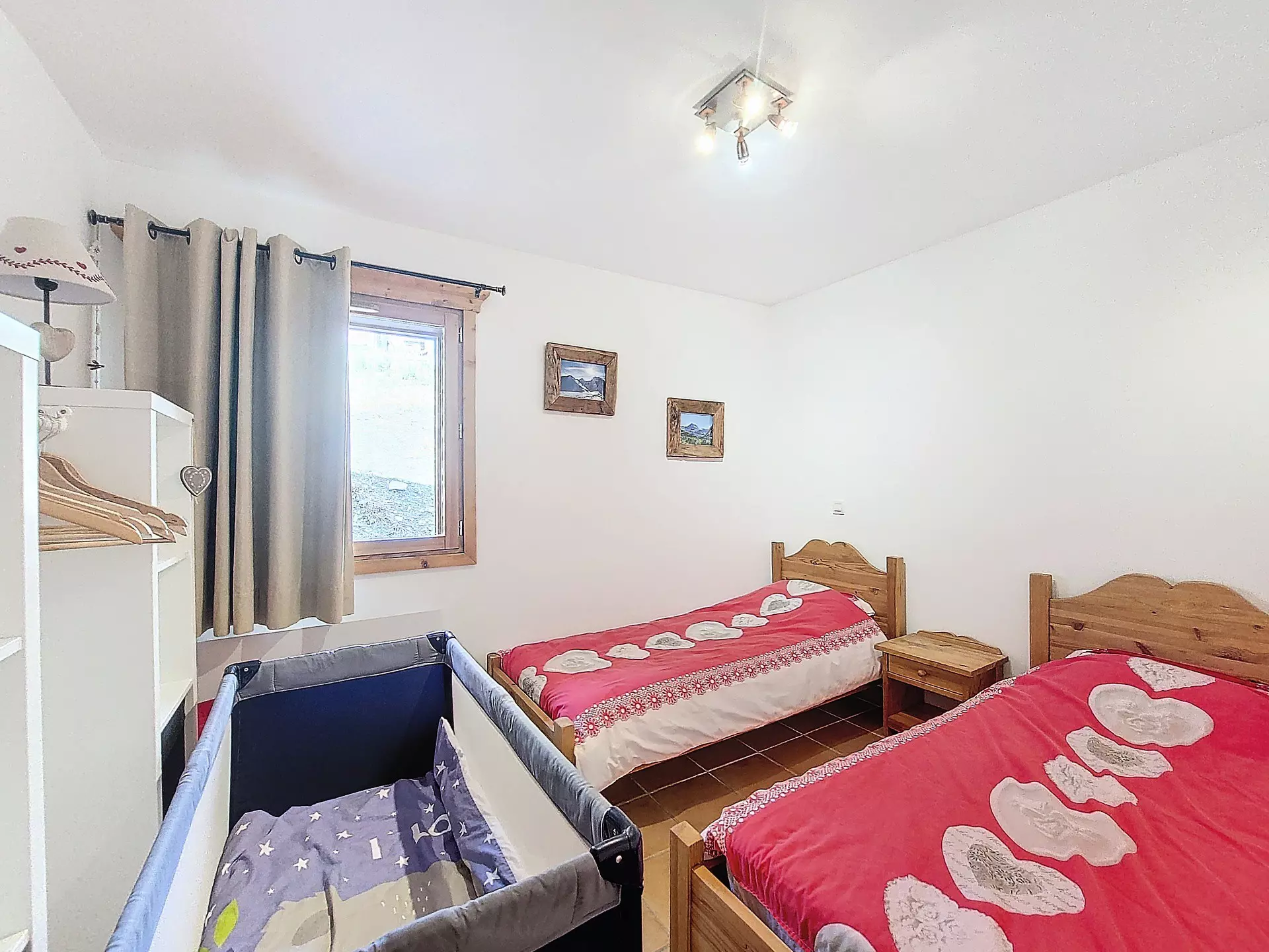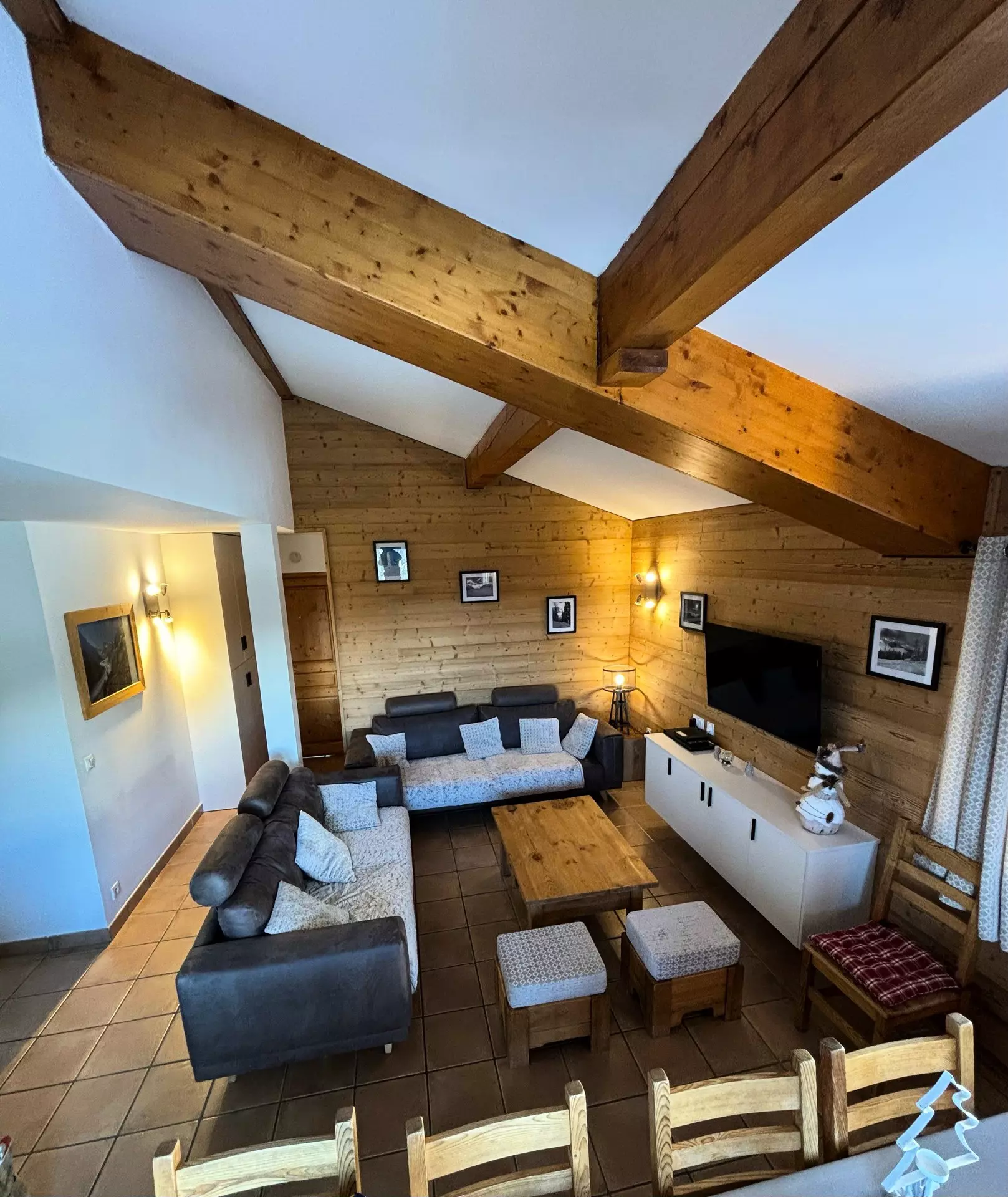 Appartement 6 pièces de 110 m2 pour 10 personnes. Il est situé au 4éme étage du premier bâtiment et possède un balcon exposé sud avec une vue panoramique sur la vallée de la Tarentaise.