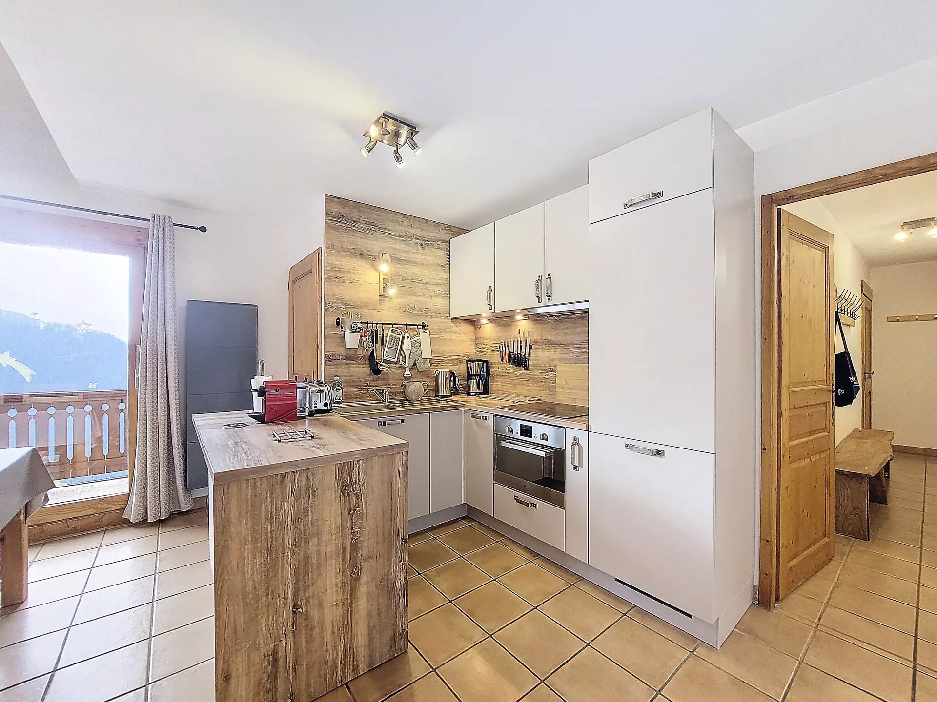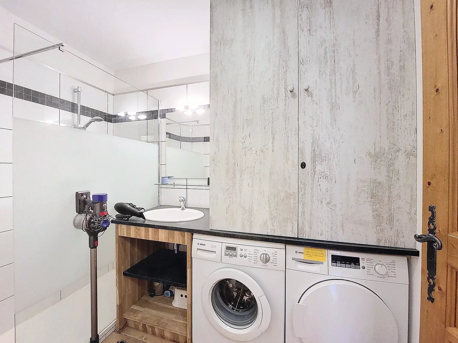 La cuisine dispose 4 plaques à induction, lave vaiselle, four électrique, four à micro-ondes, cafetière à filtre, appareil à raclette et bouilloire.