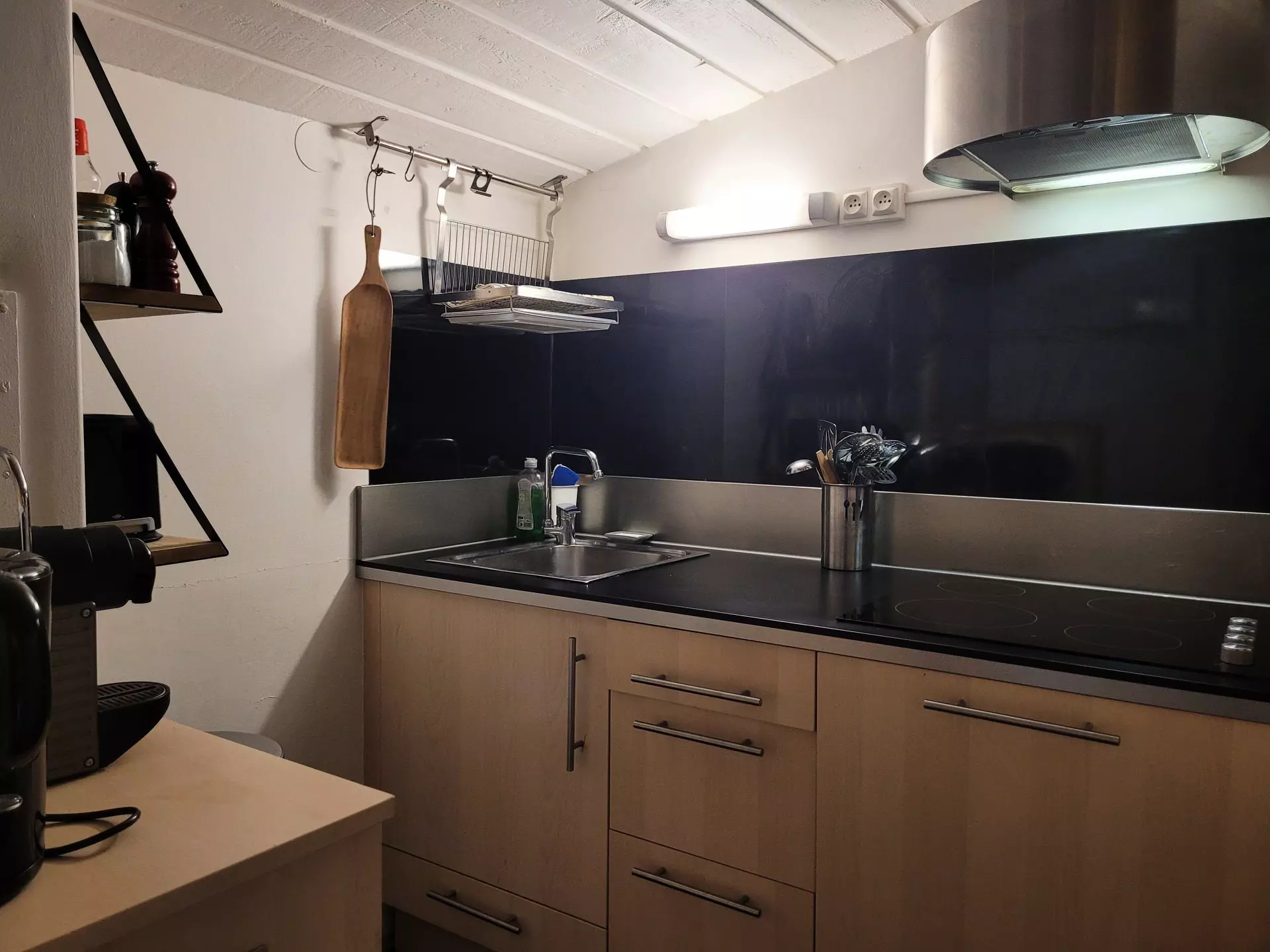 * Coin Cuisine : réfrigérateur-congélateur, plaques vitro-céramiques, four, lave vaisselle, cafetière Nespresso ;
