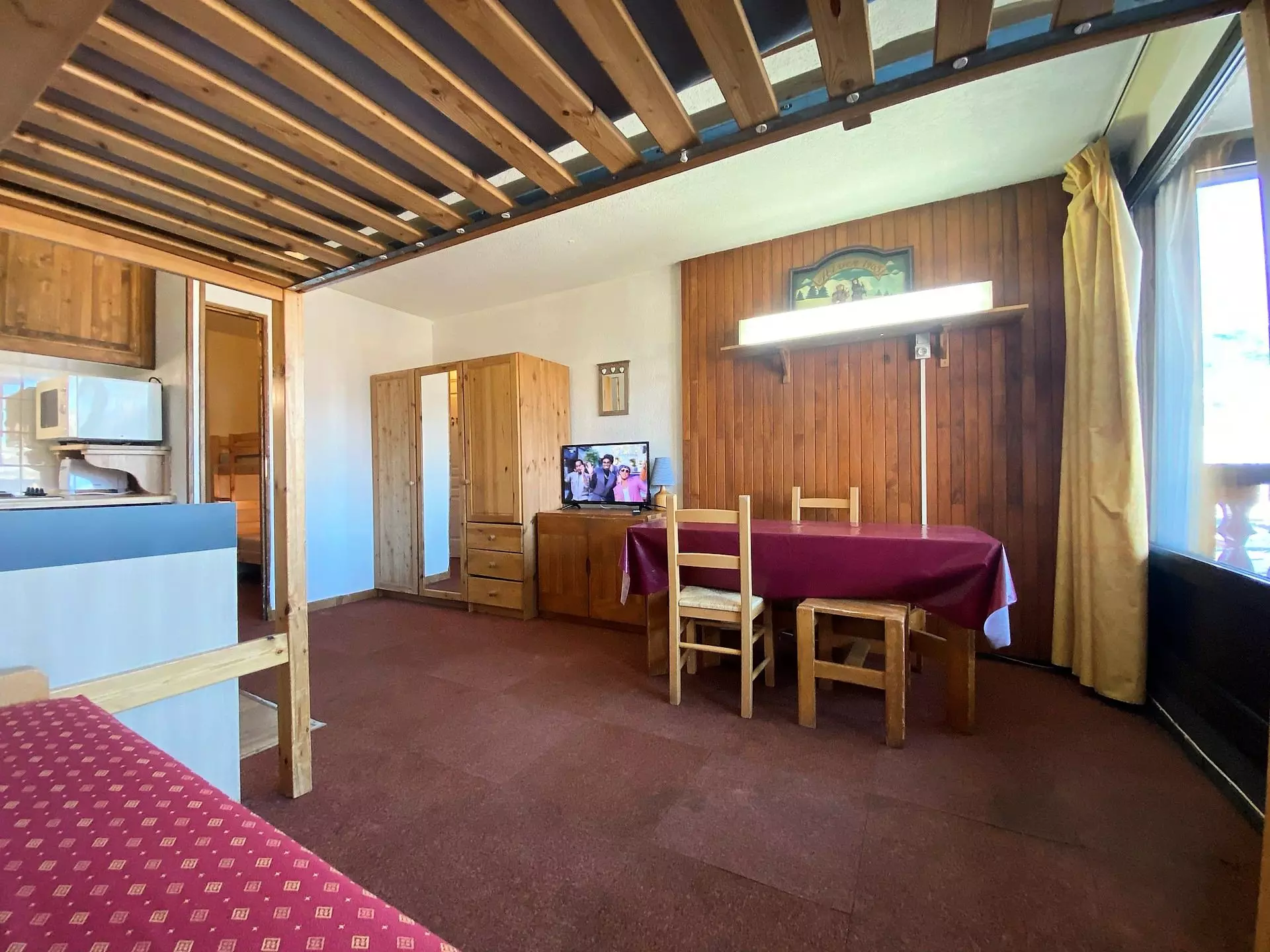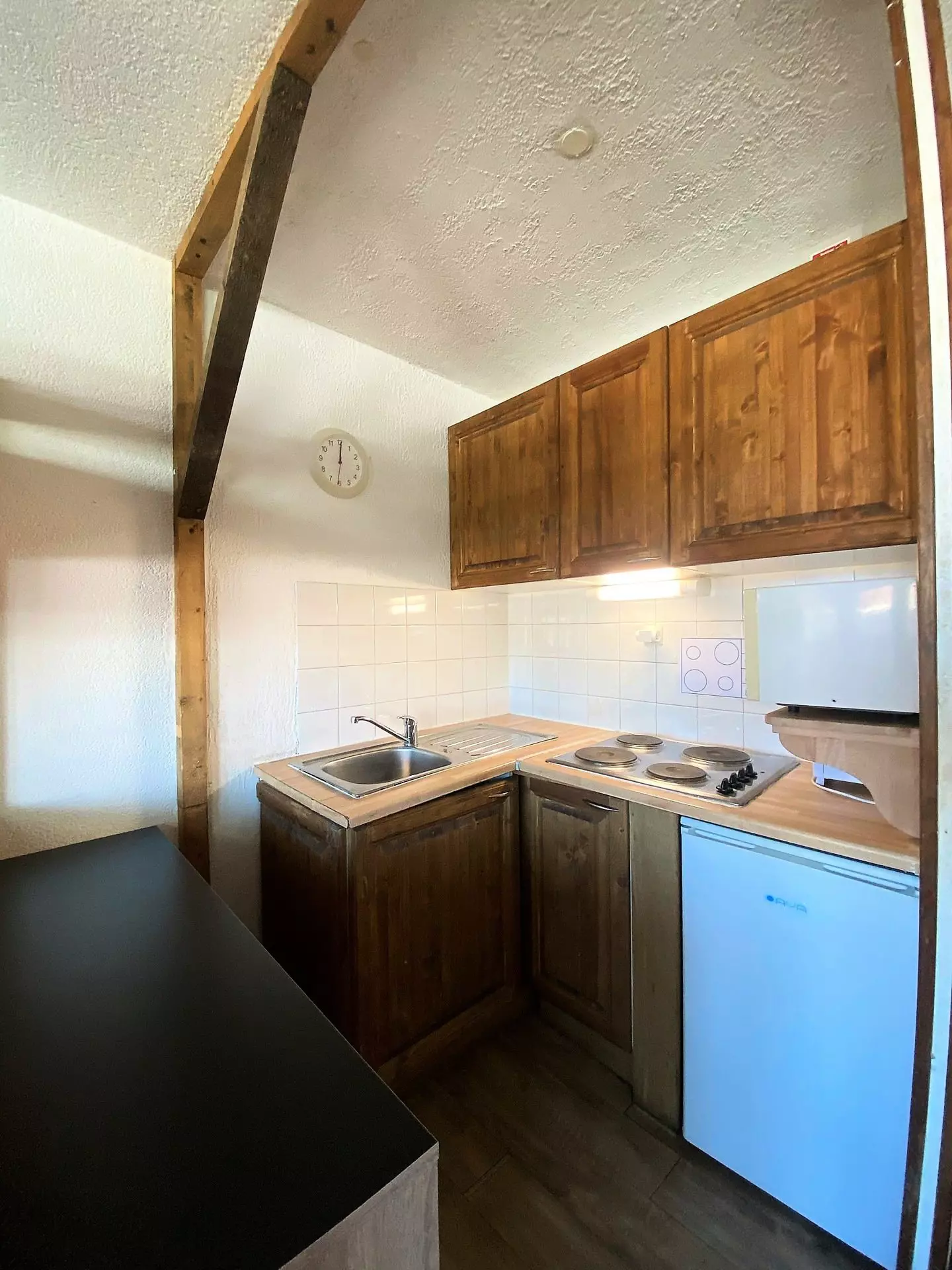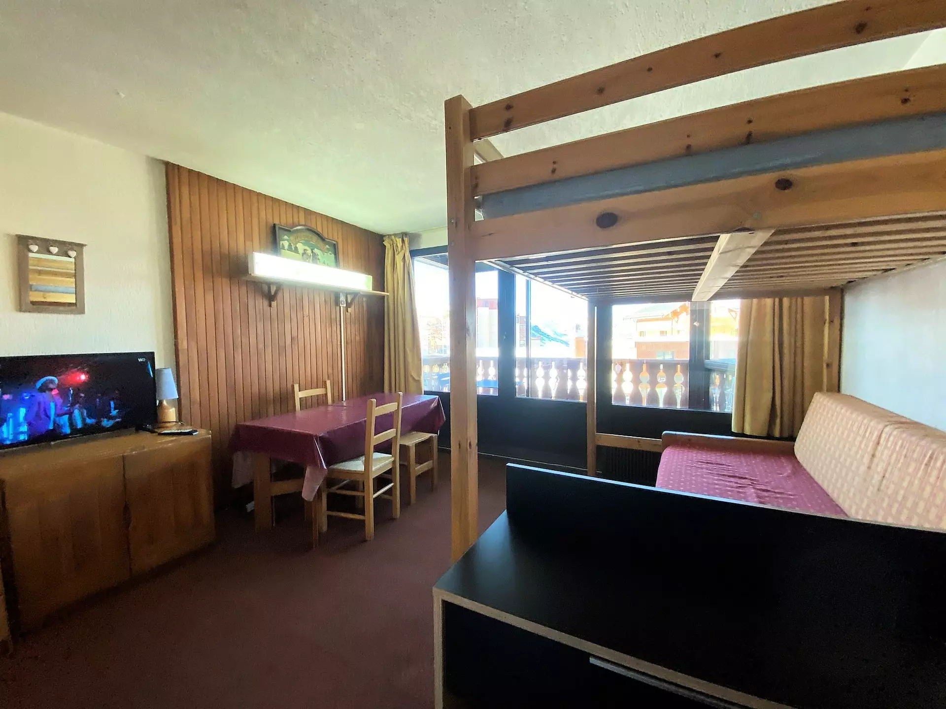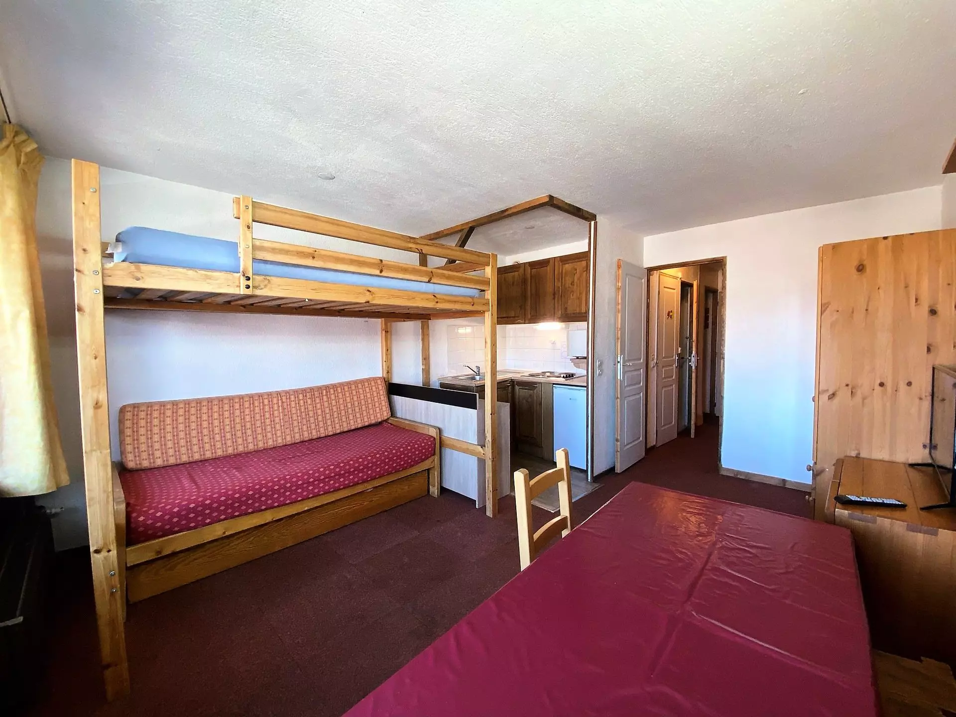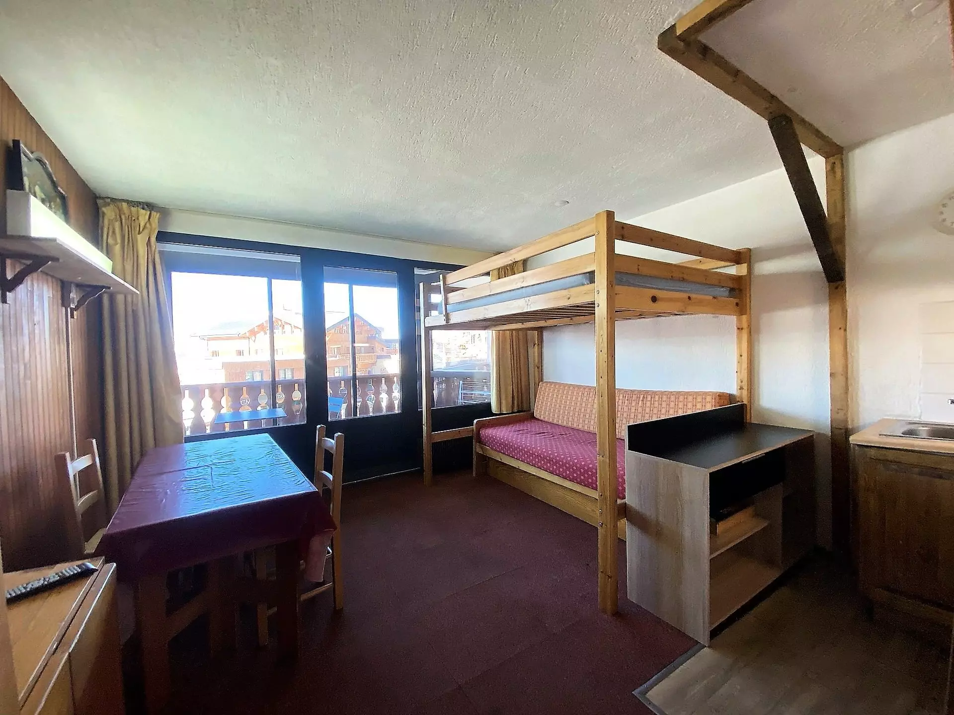 Ce studio de 28 m2 est situé au 1er étage avec une orientation sud ouest, offrant une vue dégagée sur le domaine skiable de Val thorens, ainsi que sur la rue animée.
