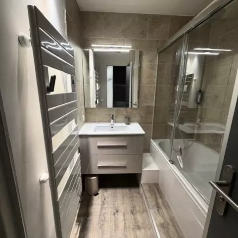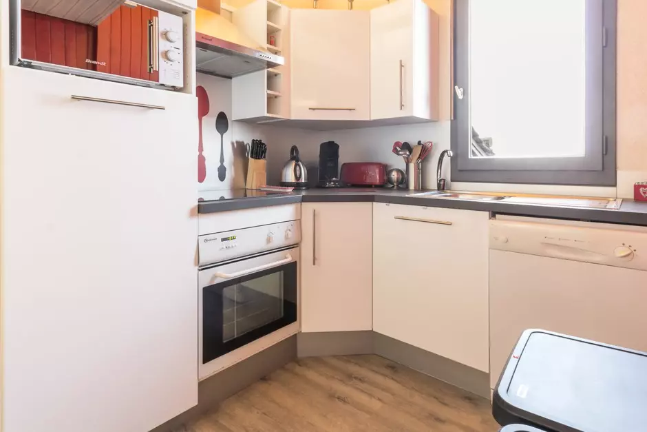 Ce bel appartement en duplex au centre de la station avec une magnifique vue sur la vallée et le Mont-Blanc se compose d'une cuisine ouverte rénovée et aménagée en L (plaques induction, four et micro-ondes, lave-vaisselle, réfrigérateur/congélateur, cafetière, bouilloire, grille-pain et lave-linge), d'une salle de bain avec baignoire et WC séparé au rez-de-chaussée.
