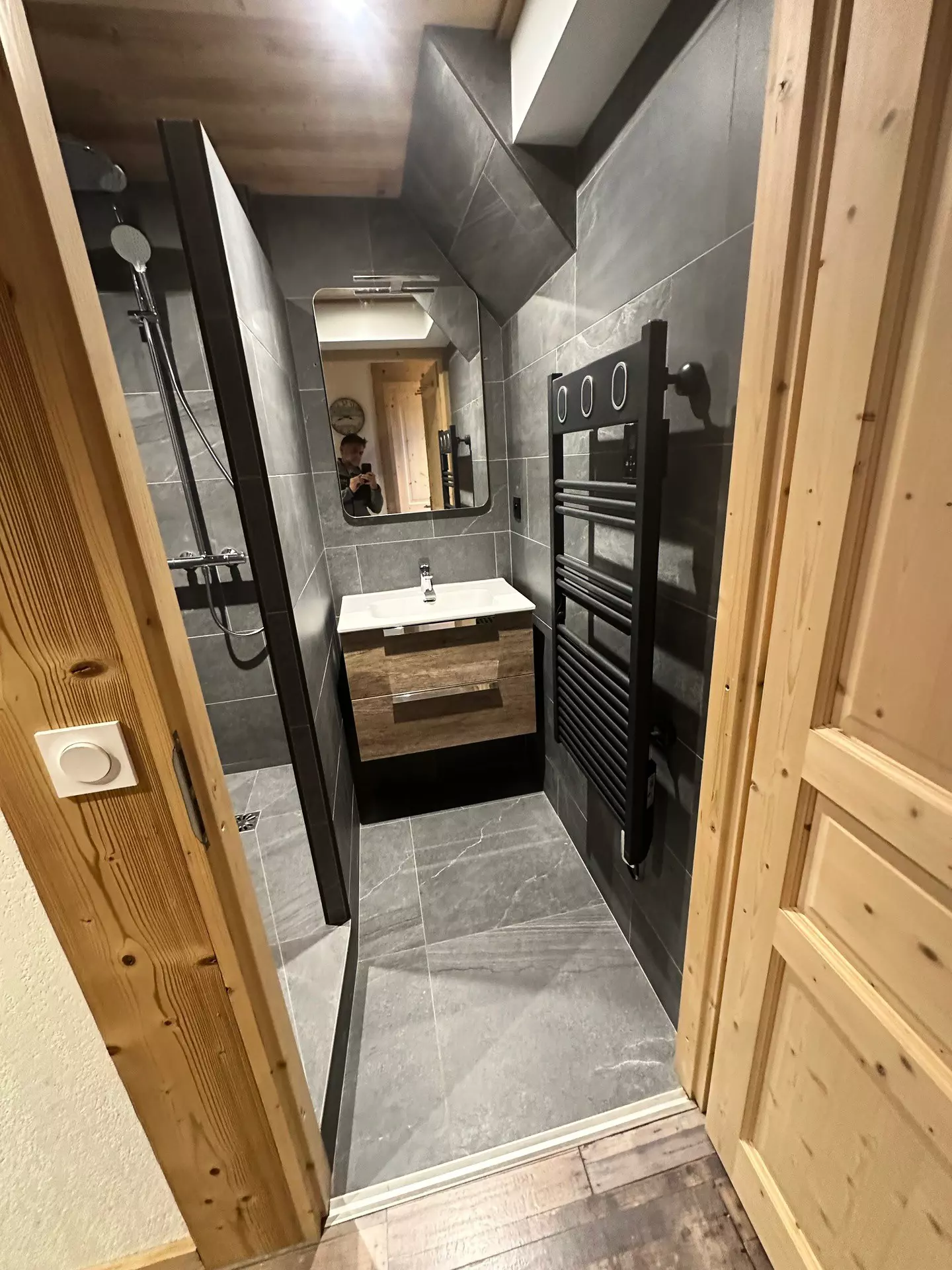 Salle de bains avec douche et WC indépendant (au rez-de-chaussée).