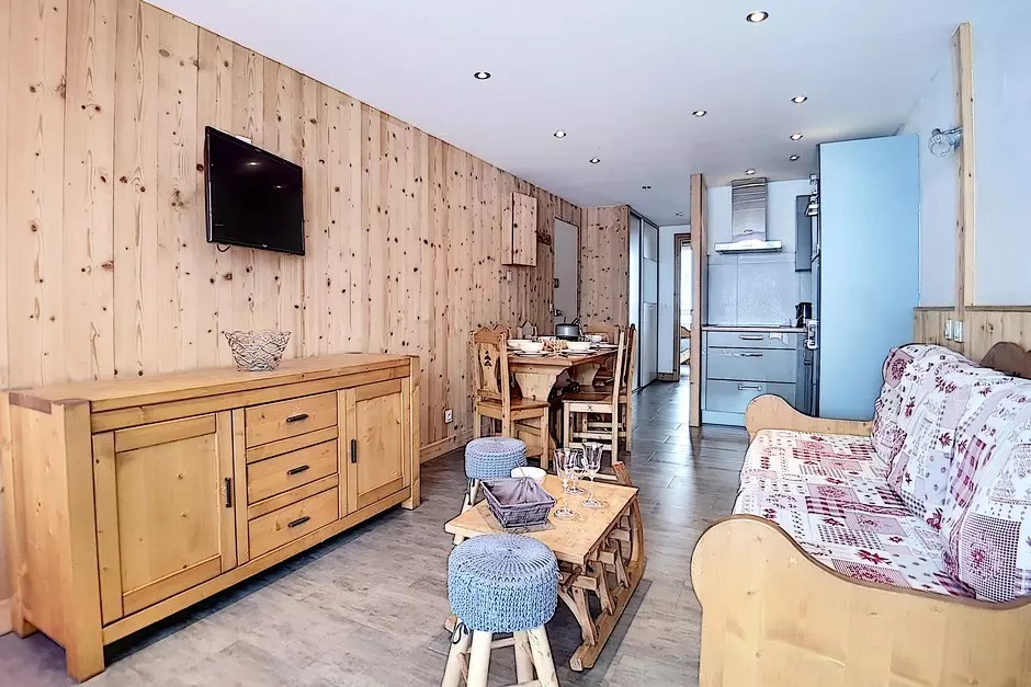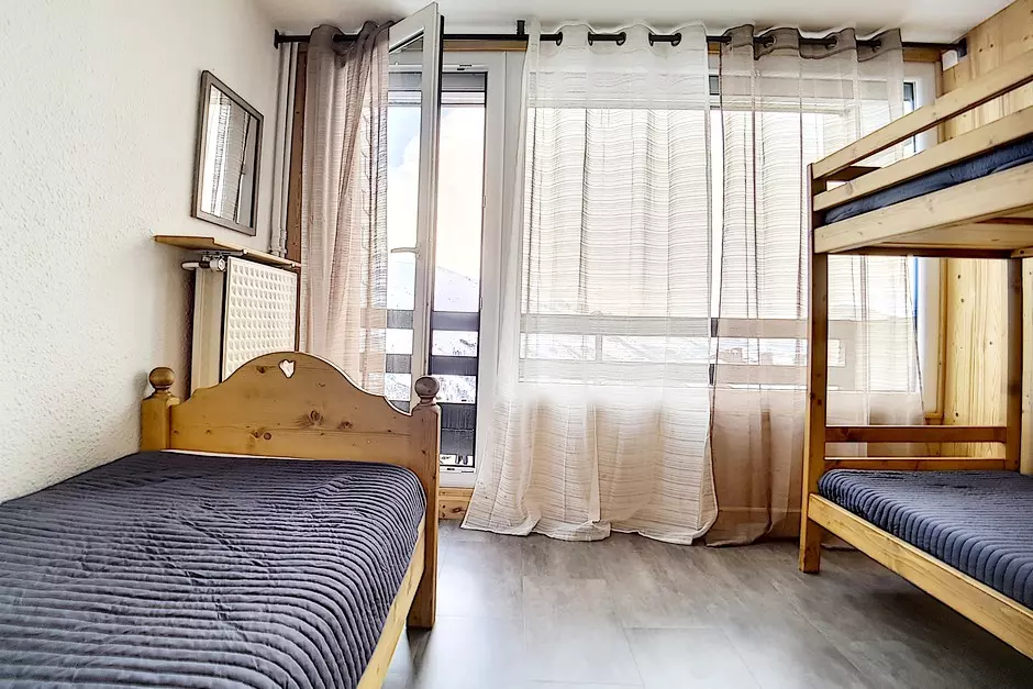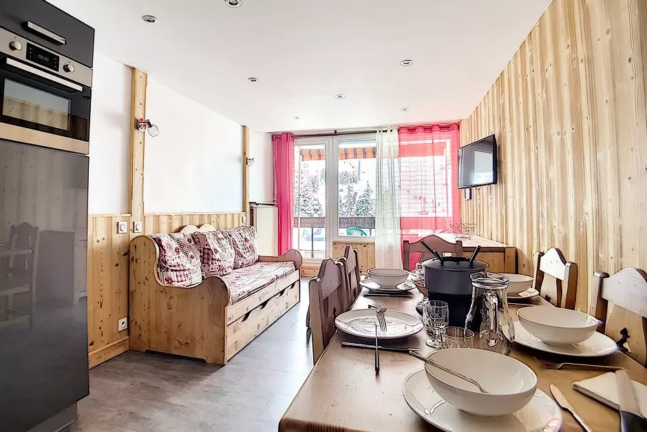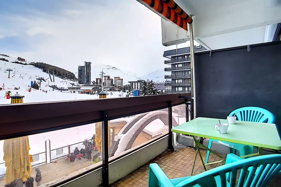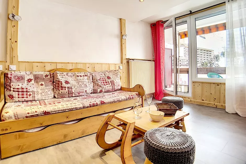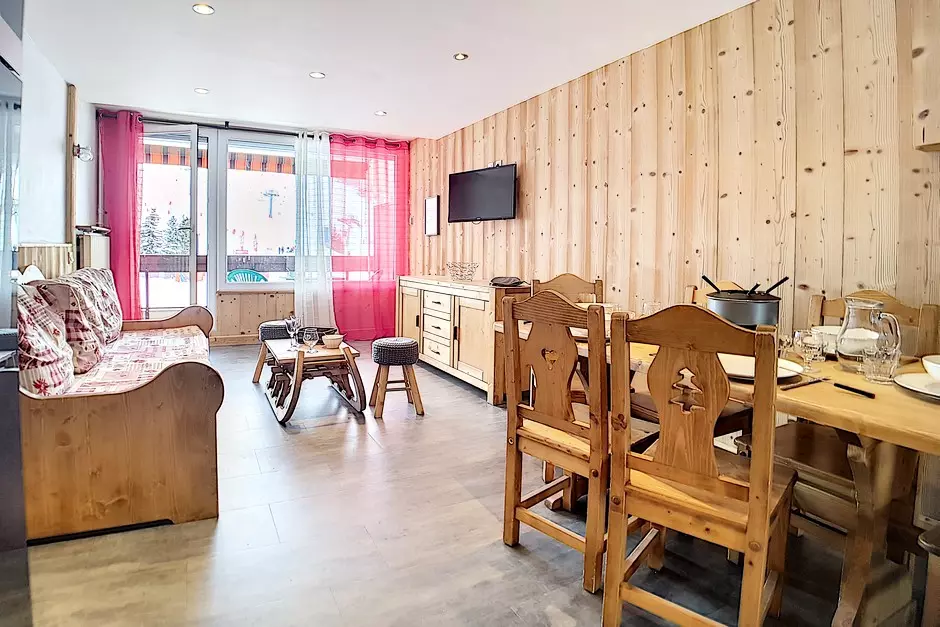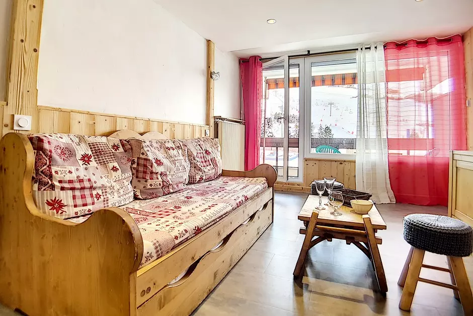 Très bel appartement entièrement rénové, orienté Sud-est, avec balcon. 38 m² pour 5 personnes. Il est situé au-dessus de la galerie commerciale, au 1er étage d'une résidence skis aux pieds.