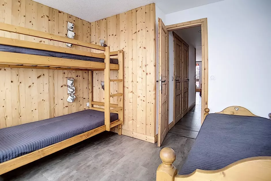 Chambre : 2 lits simples superposés + 1 lit simple (80cm).