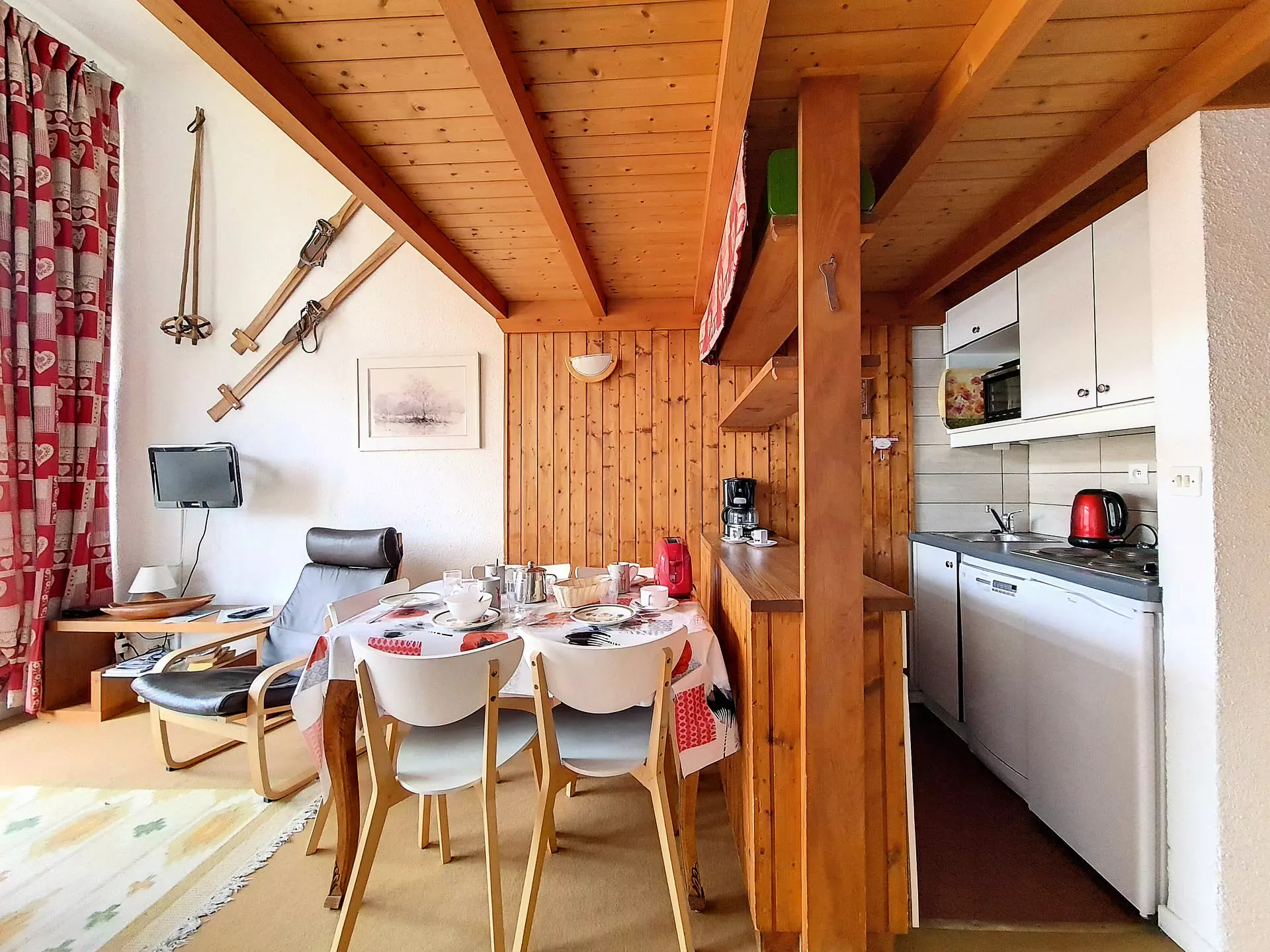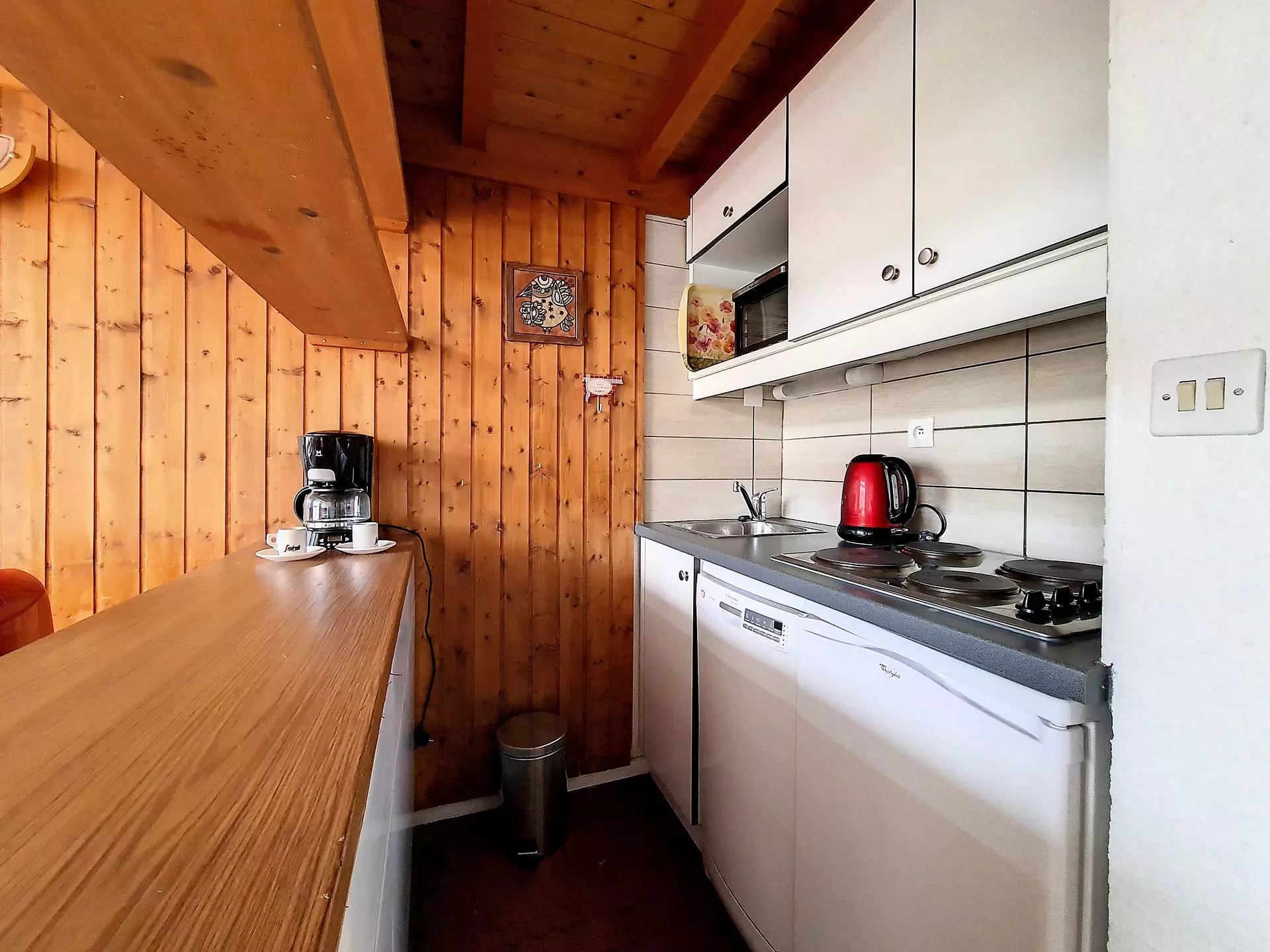 Cuisine incorporée 4 plaques, Mini four, réfrigérateur et lave-vaisselle, grille-pain, bouilloire et cafetière