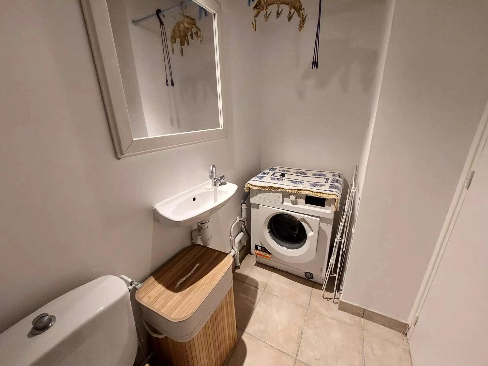 Pratique : Lave-linge, aspirateur, étendoir.