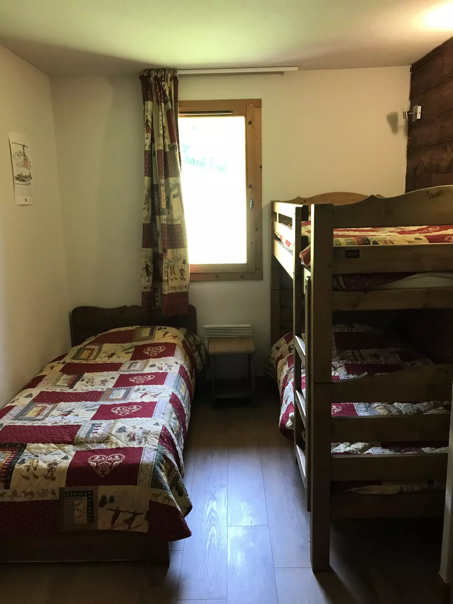 Chambre 1 (9m²) : 2 lits superposés, 1 lit simple (3x 90x190cm)