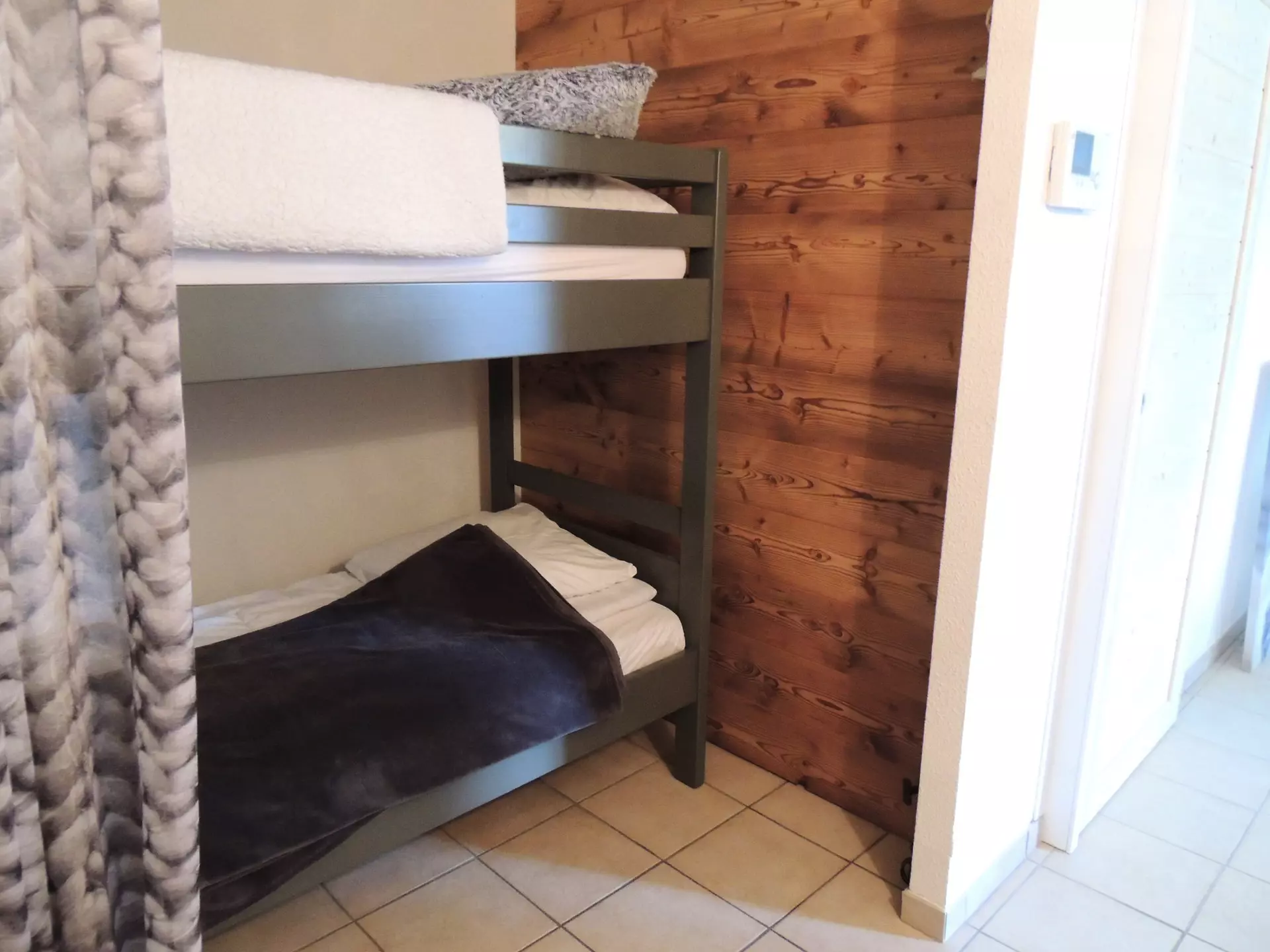 Entrée (séparée du séjour par un rideau) : 2 lits superposés (2x 90x190cm)