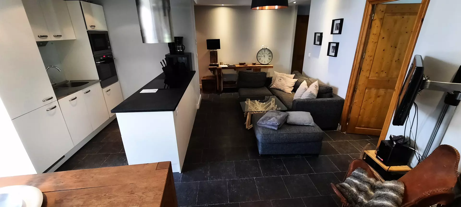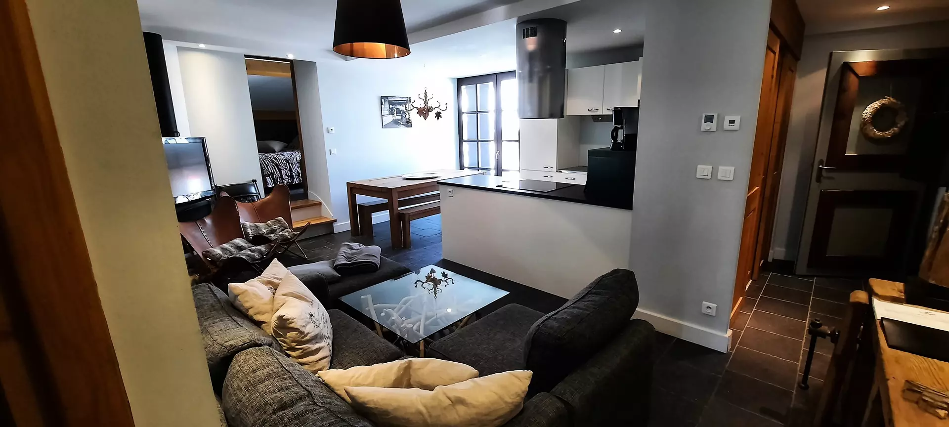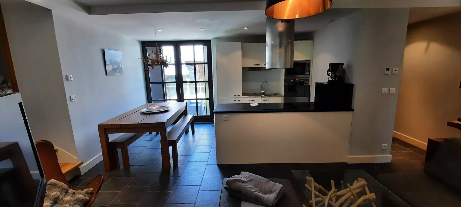 - Cuisine ouverte : four, micro-ondes, réfrigérateur, congélateur, plaque à induction (4 foyers), lave-vaisselle, appareils à raclette et à fondue.