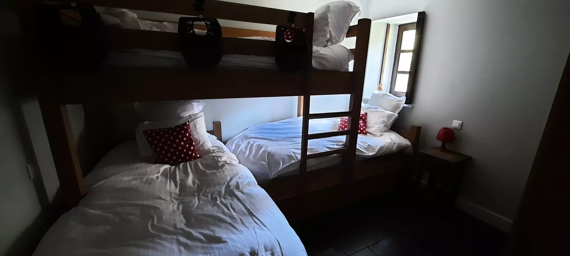 Chambre 2 (9m²) : 2 lits simples + 1 lit superposé + 1 lit simple gigogne (4x90x190cm)