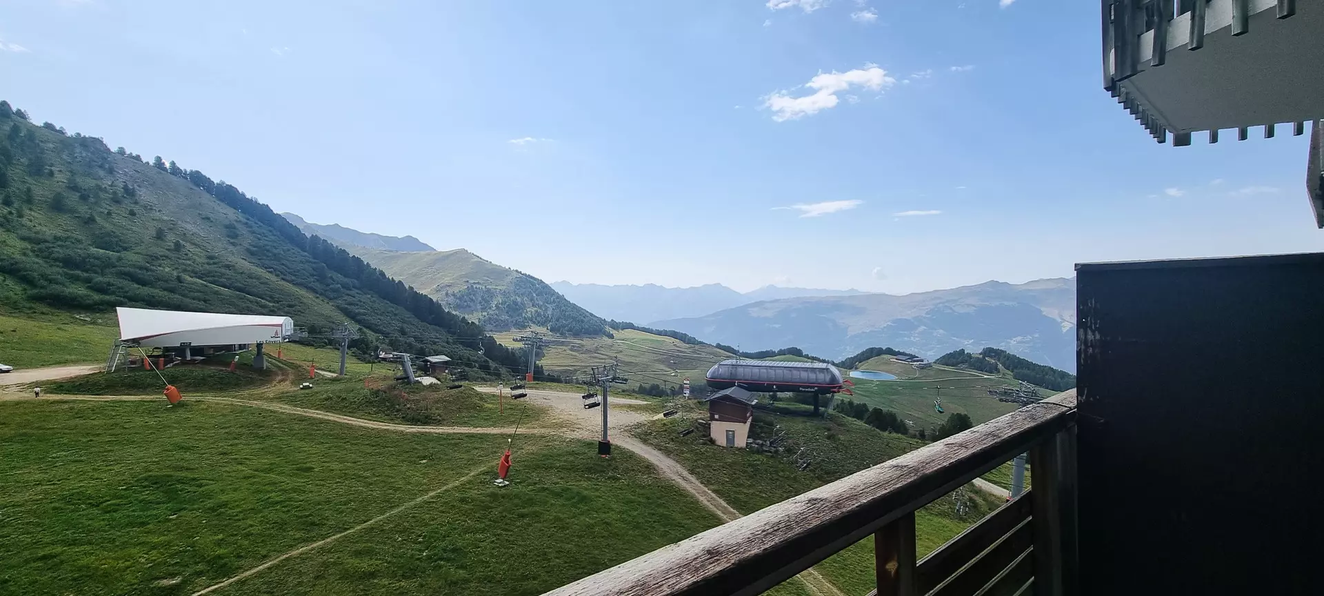 Ce studio se trouve au niveau "Q" du Paquebot des Neiges et est accessible par l'ascenseur "Diamant", étage élevé. Il se compose d'un séjour, d'un coin cabine fermé, d'une cuisine semi-ouverte, d'une salle de bain avec WC. Son balcon exposé Sud Ouest offre une superbe vue sur les pistes d'Aime 2000.