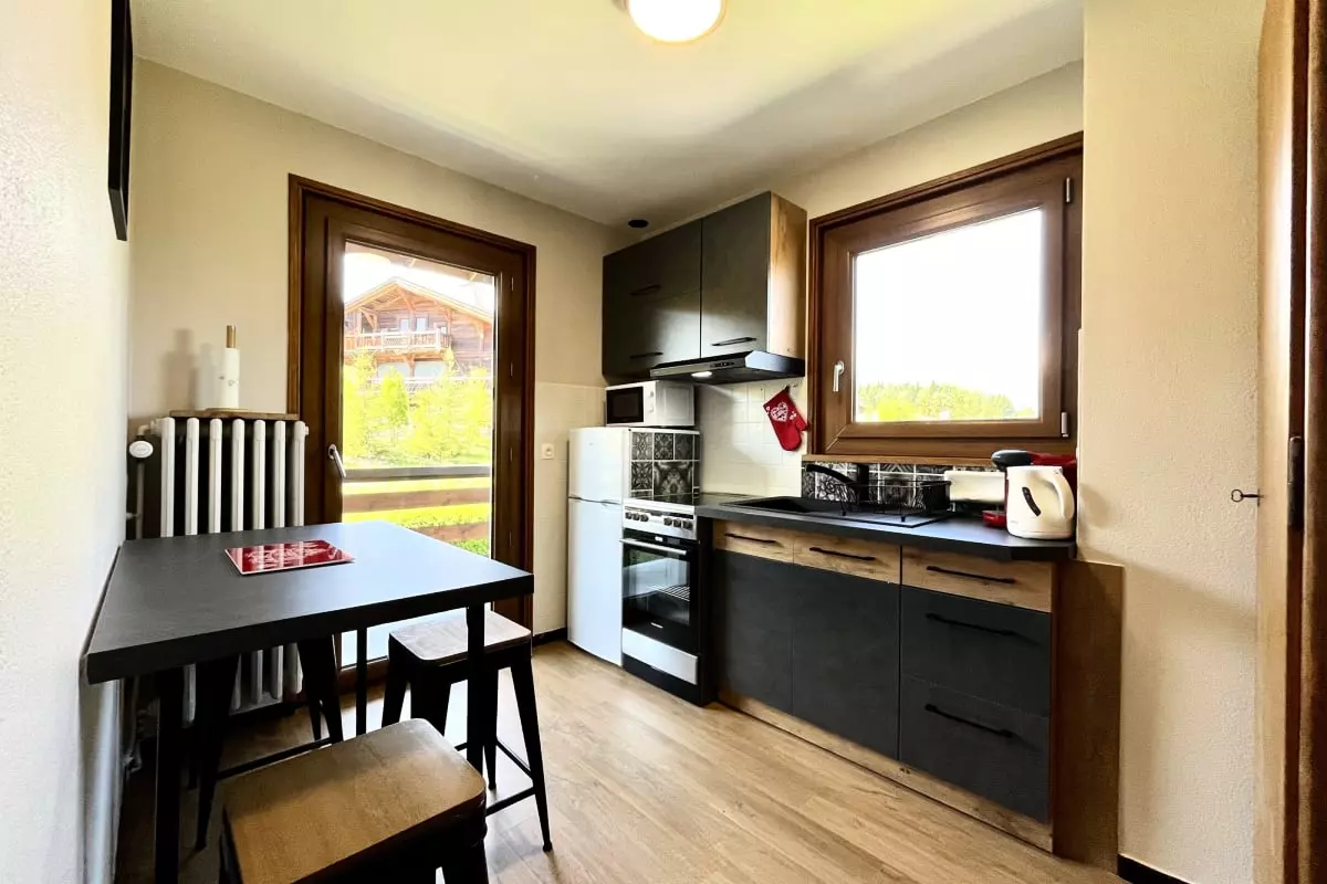 Ce beau studio à Combloux est idéal pour un séjour fonctionnel et reposant.