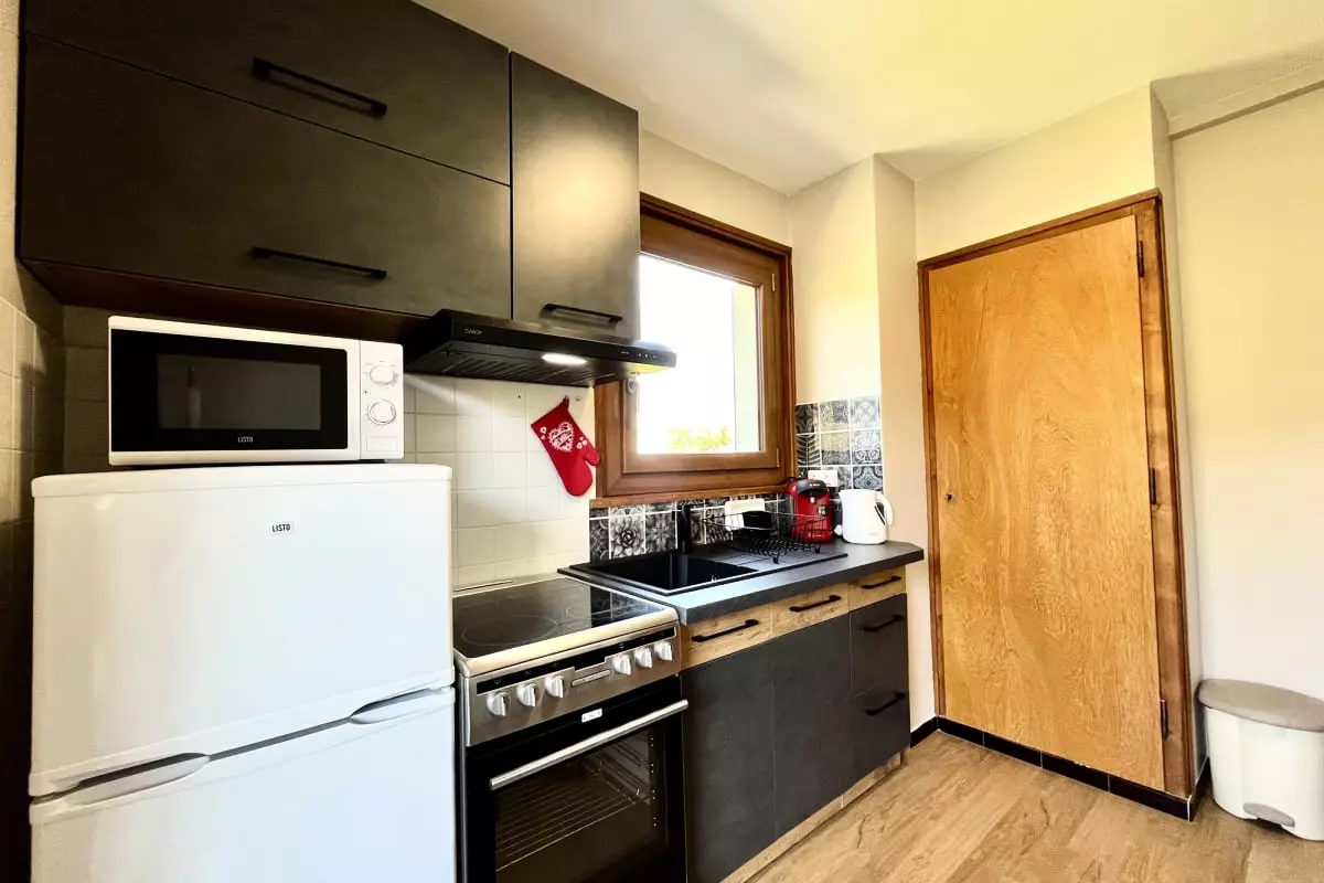 Situé au 2ème étage d’une résidence sans ascenseur, ce logement comprend une cuisine séparée entièrement équipée, une salle de douche avec sèche-cheveux et un lisseur à votre disposition, ainsi qu’un salon où vous trouverez un lit double de 140 x 190 et un canapé convertible, parfaits pour vous détendre après une journée de balade.