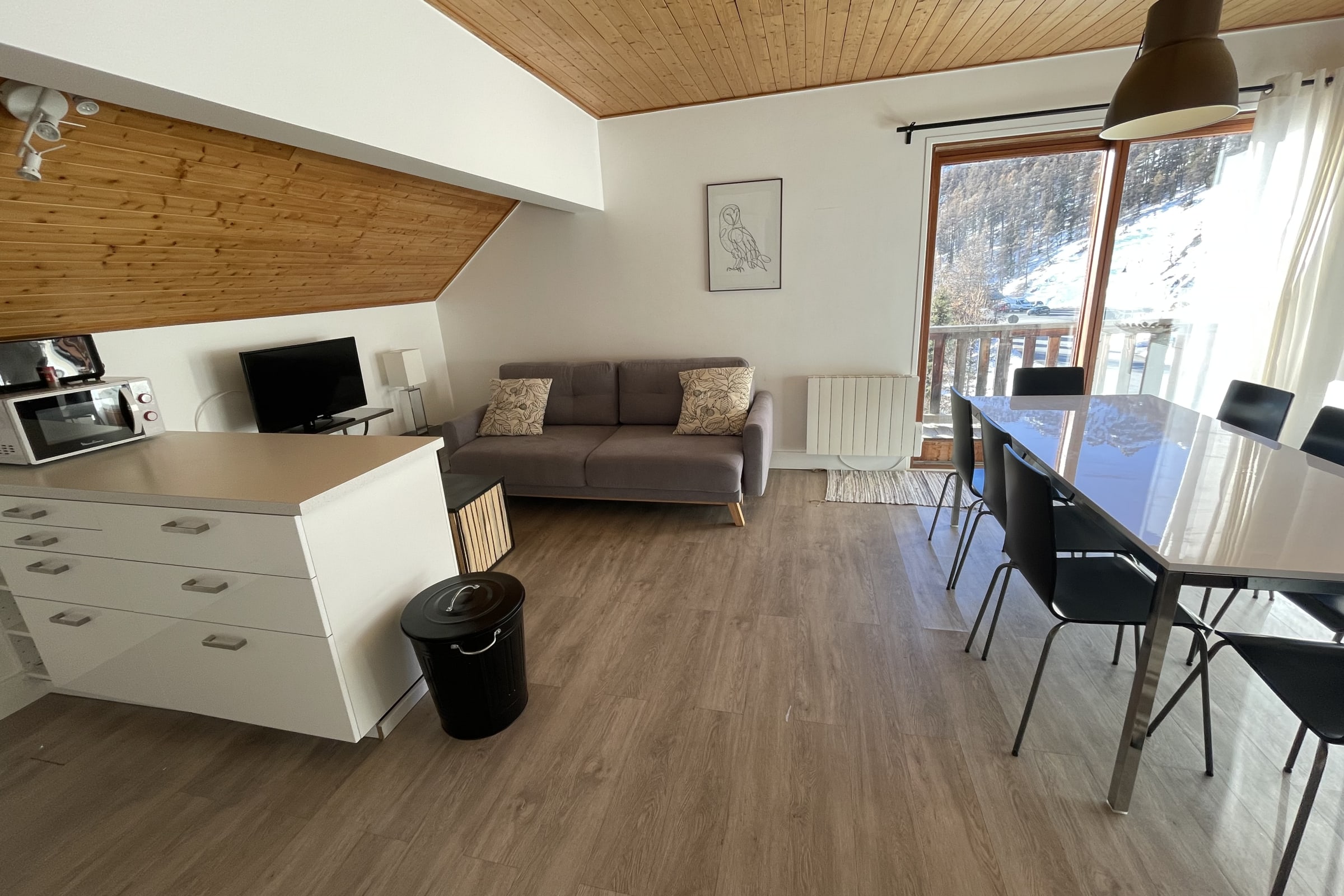 Après une journée sur les pistes, retrouvez-vous dans la spacieuse pièce à vivre pour partager une raclette ou une partie de cartes dans une ambiance conviviale.
