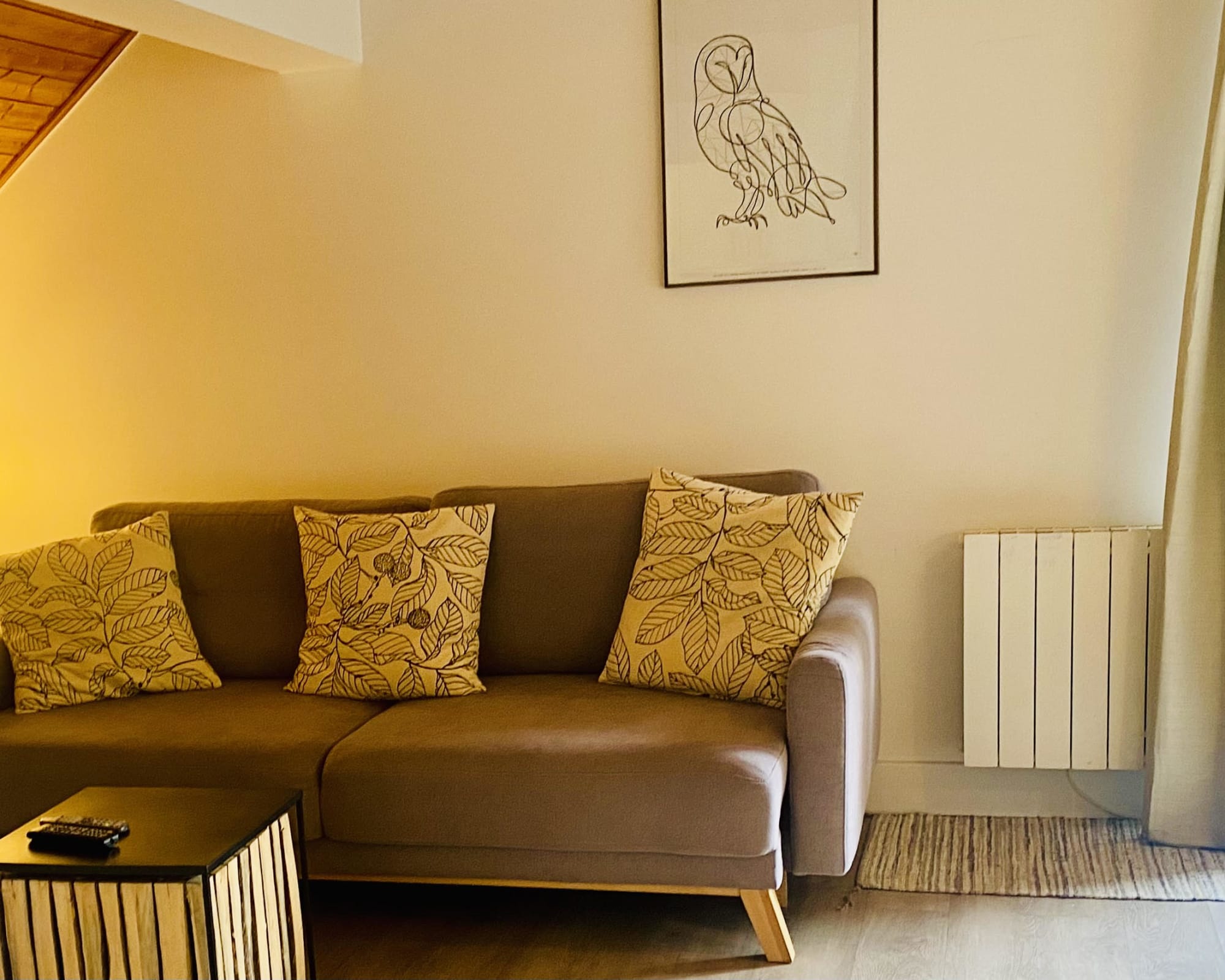 Côté couchages : une chambre double, une chambre avec lits superposés pour les enfants ou amis, et un canapé-lit dans le salon (attention le linge n'est pas inclus, il peut être pris en option).