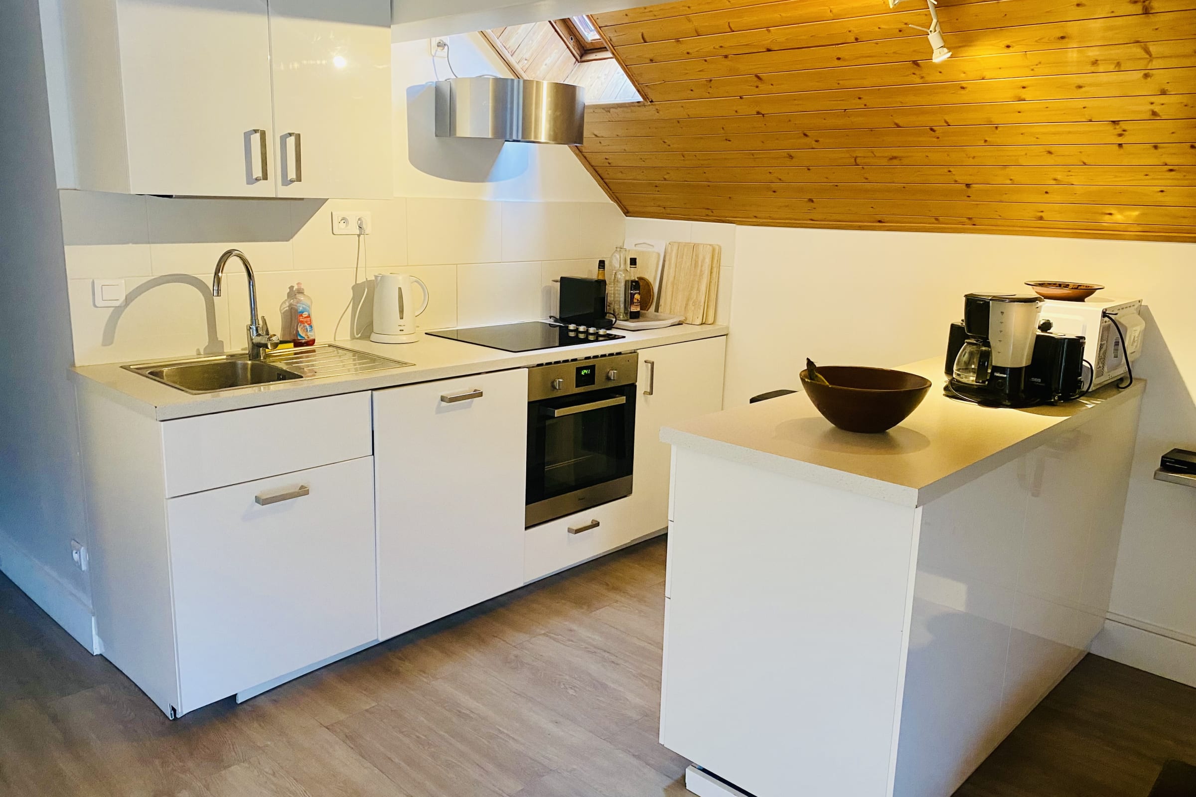 Côté cuisine, vous disposerez d'un four, d'un micro-onde, d'un lave-vaisselle et d'une machine à café Nespresso.