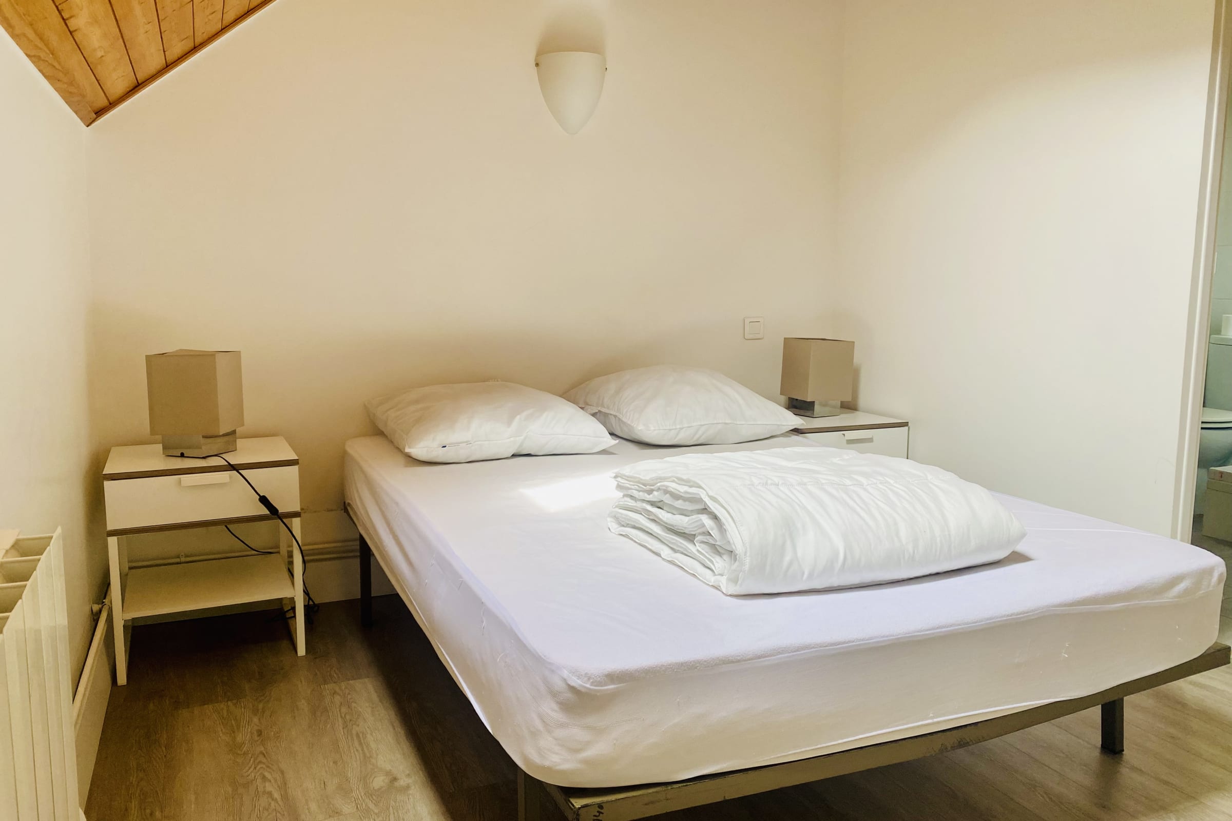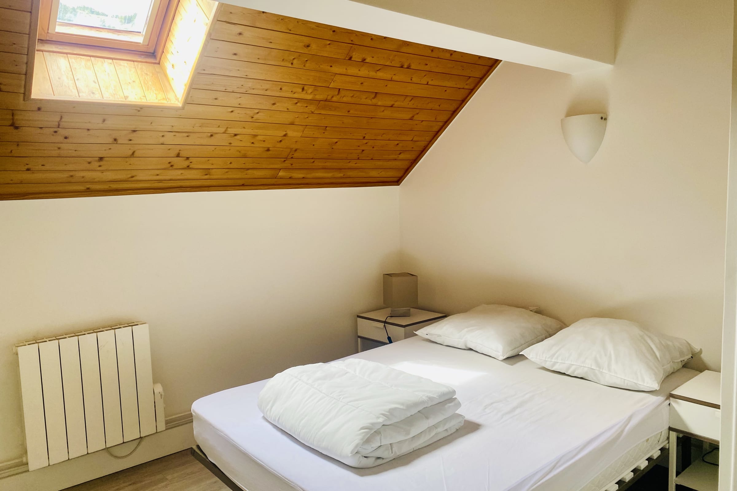 Côté couchages, l'appartement est doté d'une chambre double et d'un coin montagne avec lit superposés (attention le linge n'est pas inclus, il peut être pris en option).
