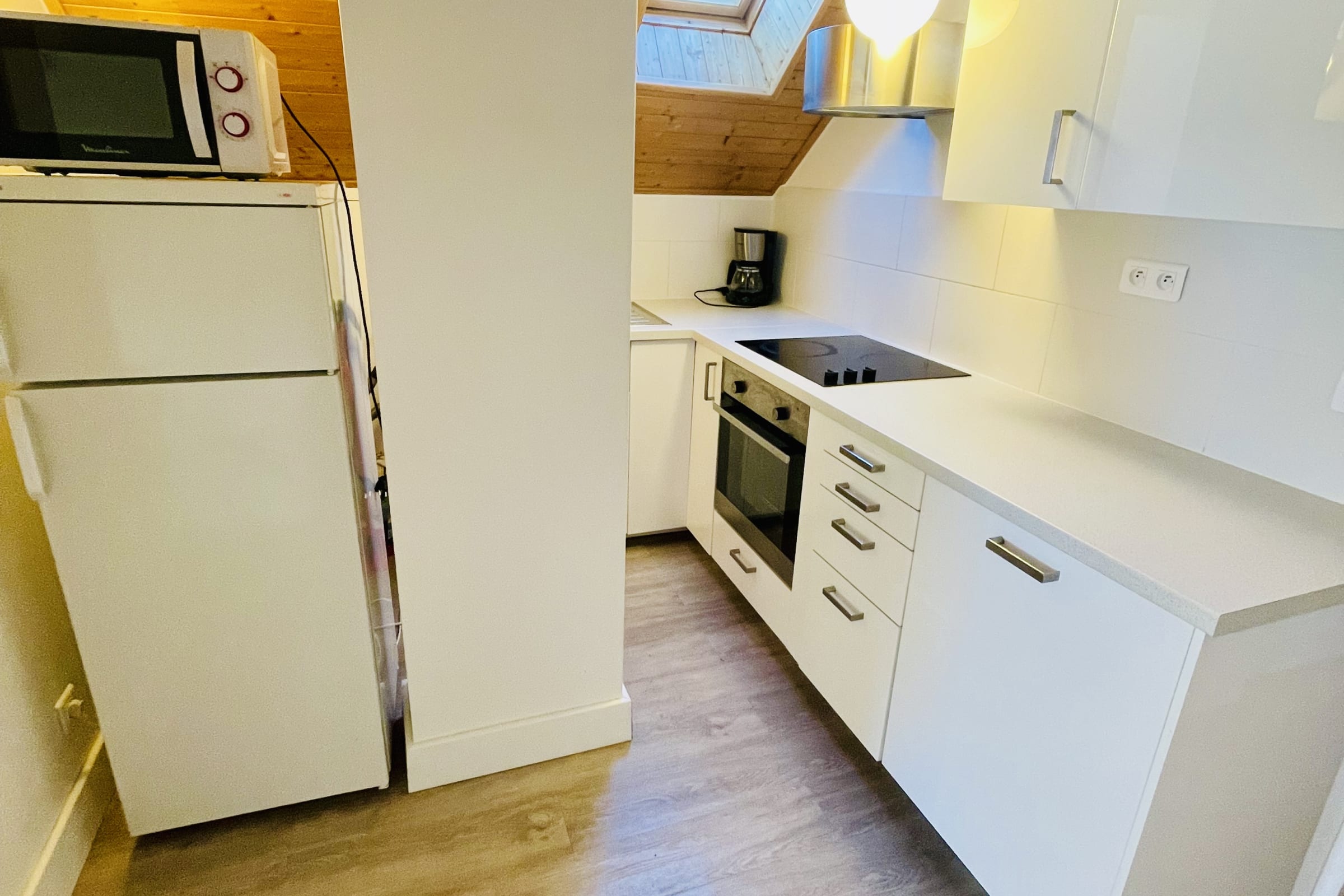 Côté cuisine, vous disposerez d'un four, d'un micro-onde, d'un lave-vaisselle et d'une machine à café Nespresso.