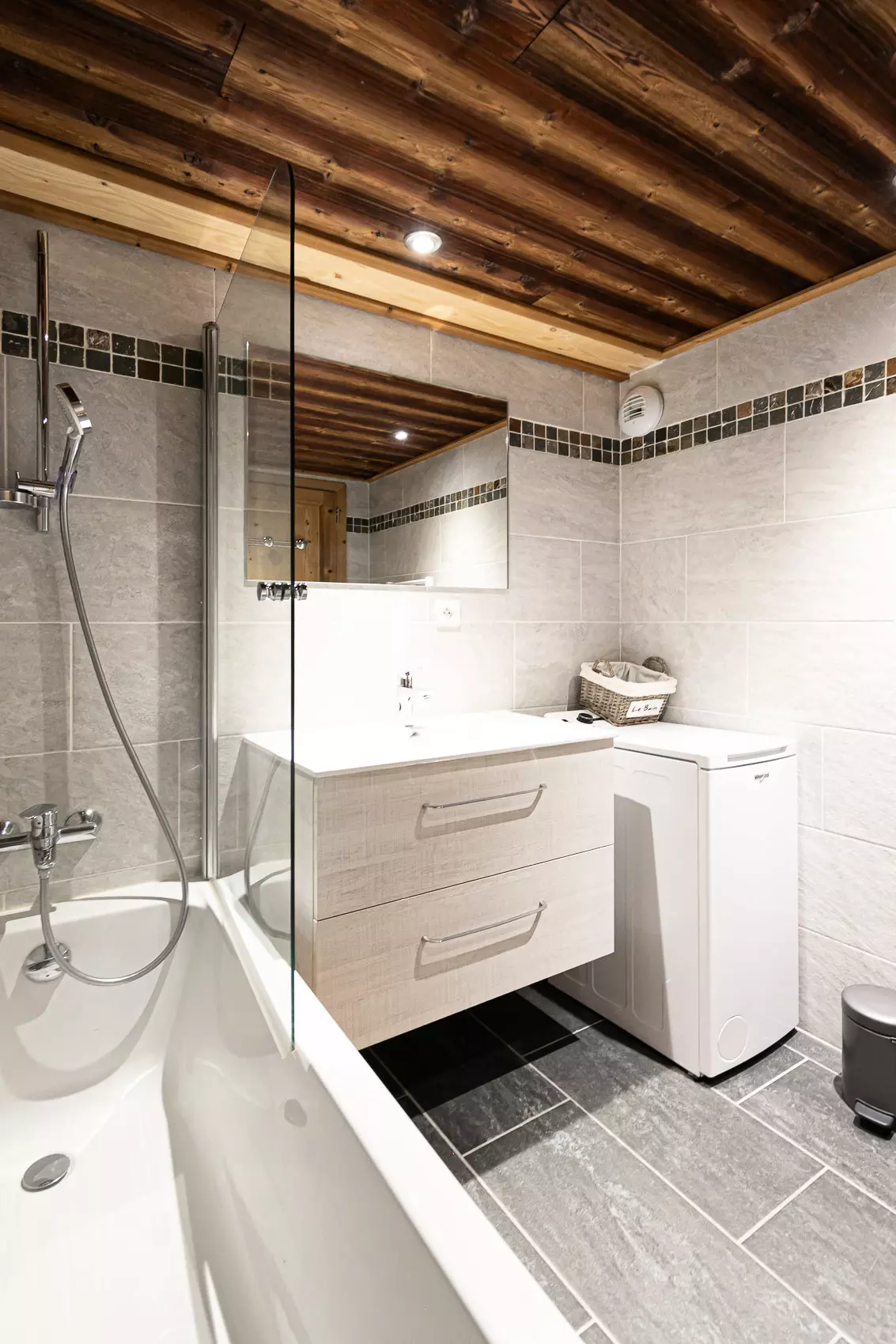 Salle de bain avec baignoire et lave linge à l’étage