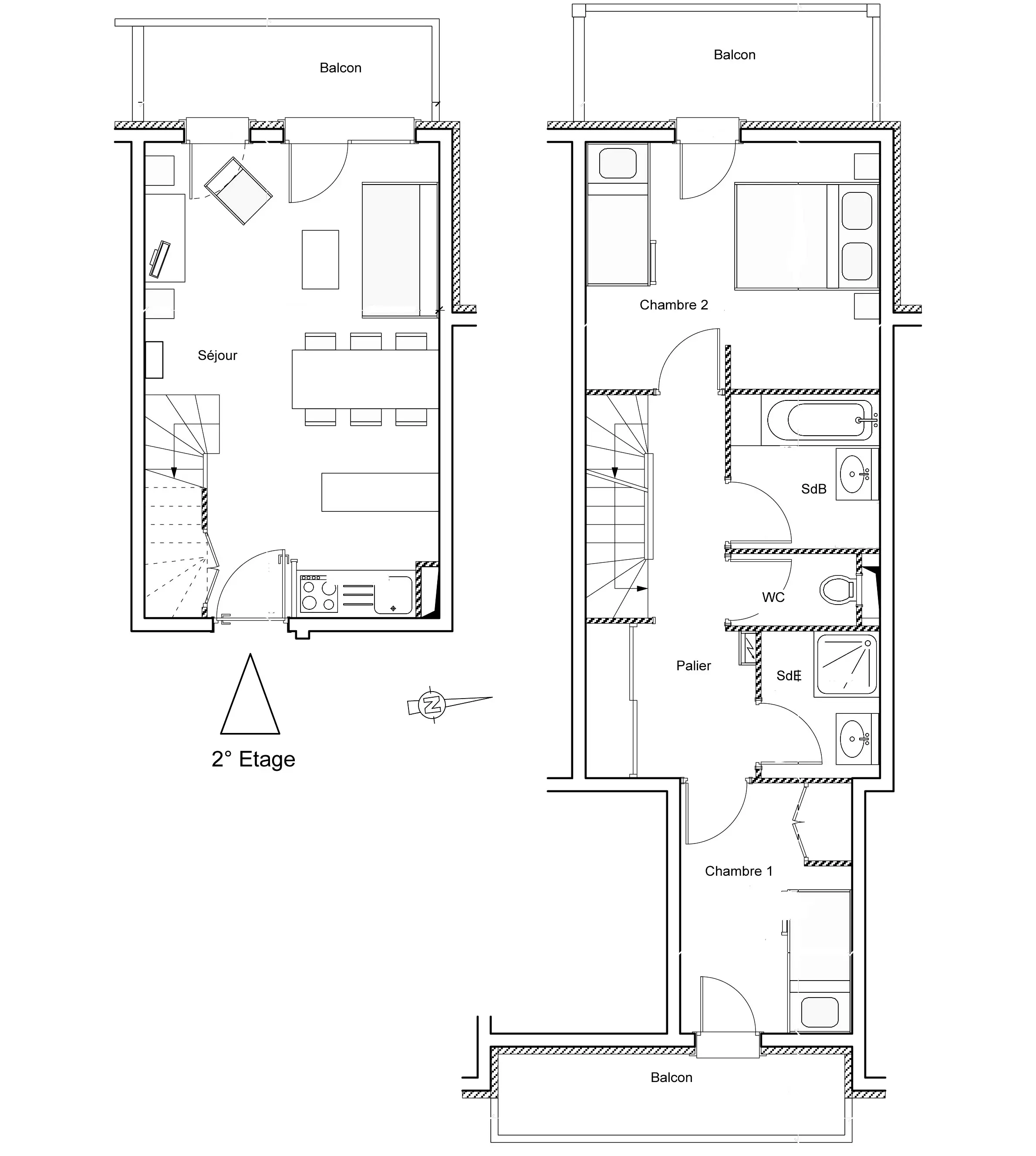 Appartement 3 pièces (2 chambres) duplex – 2ème étage avec 2 balcons orientés ouest, vue sur la dent Parrachée