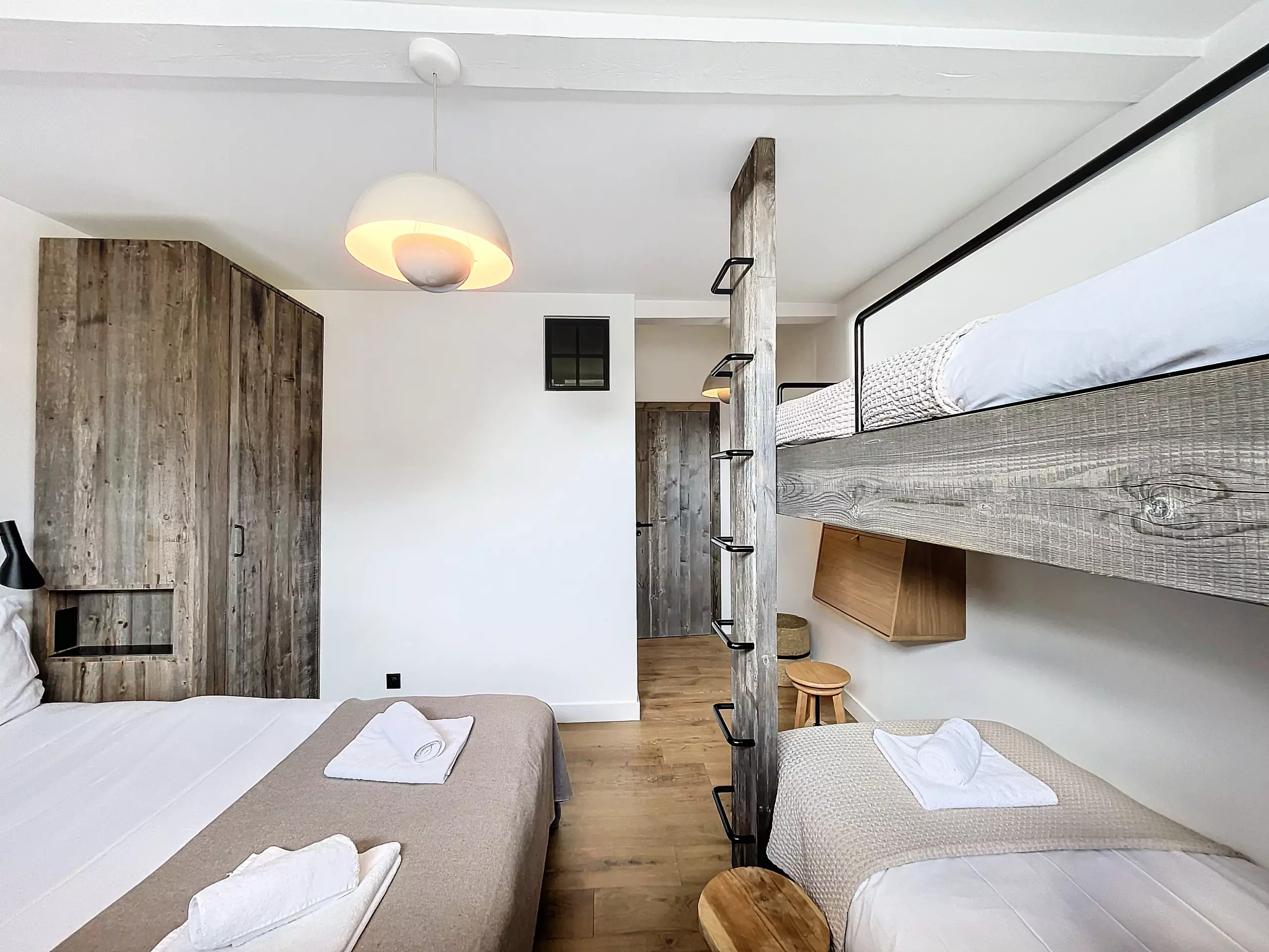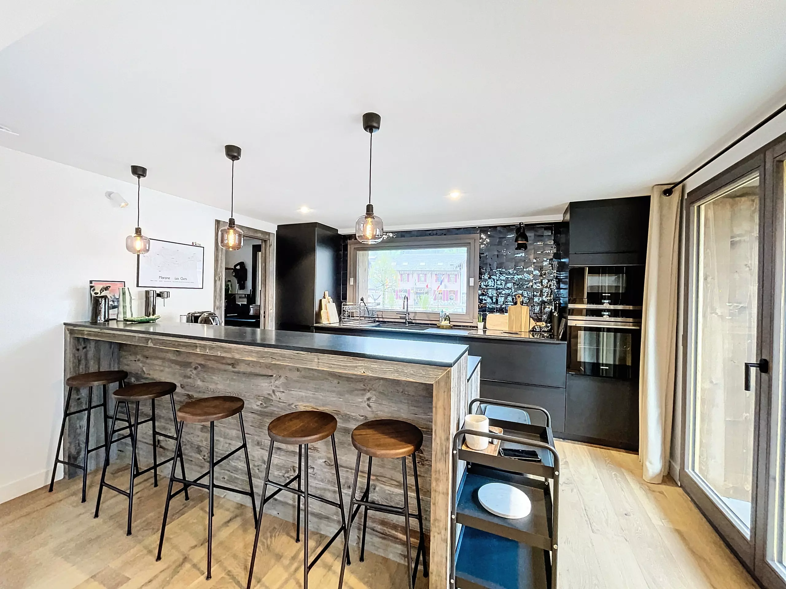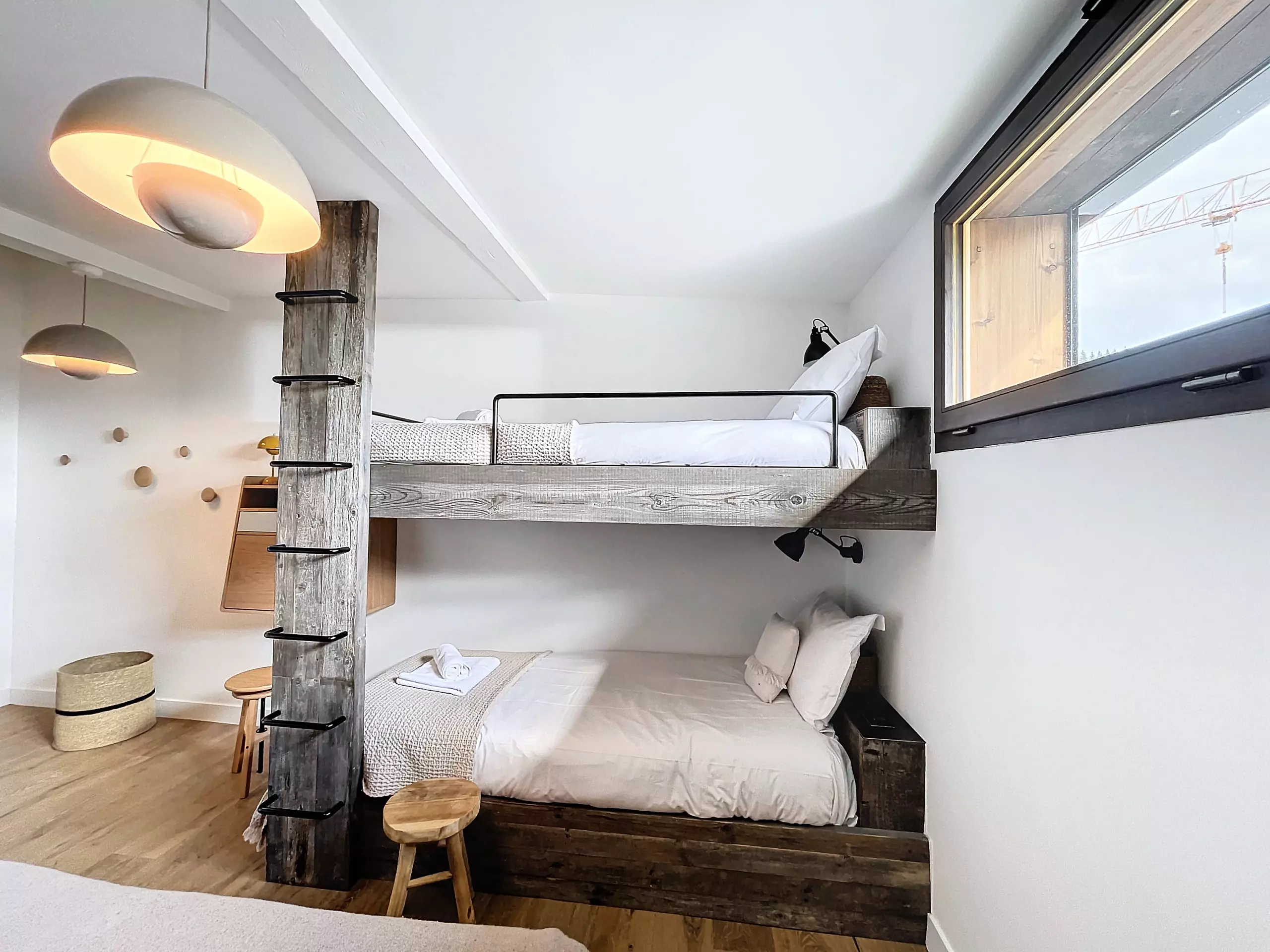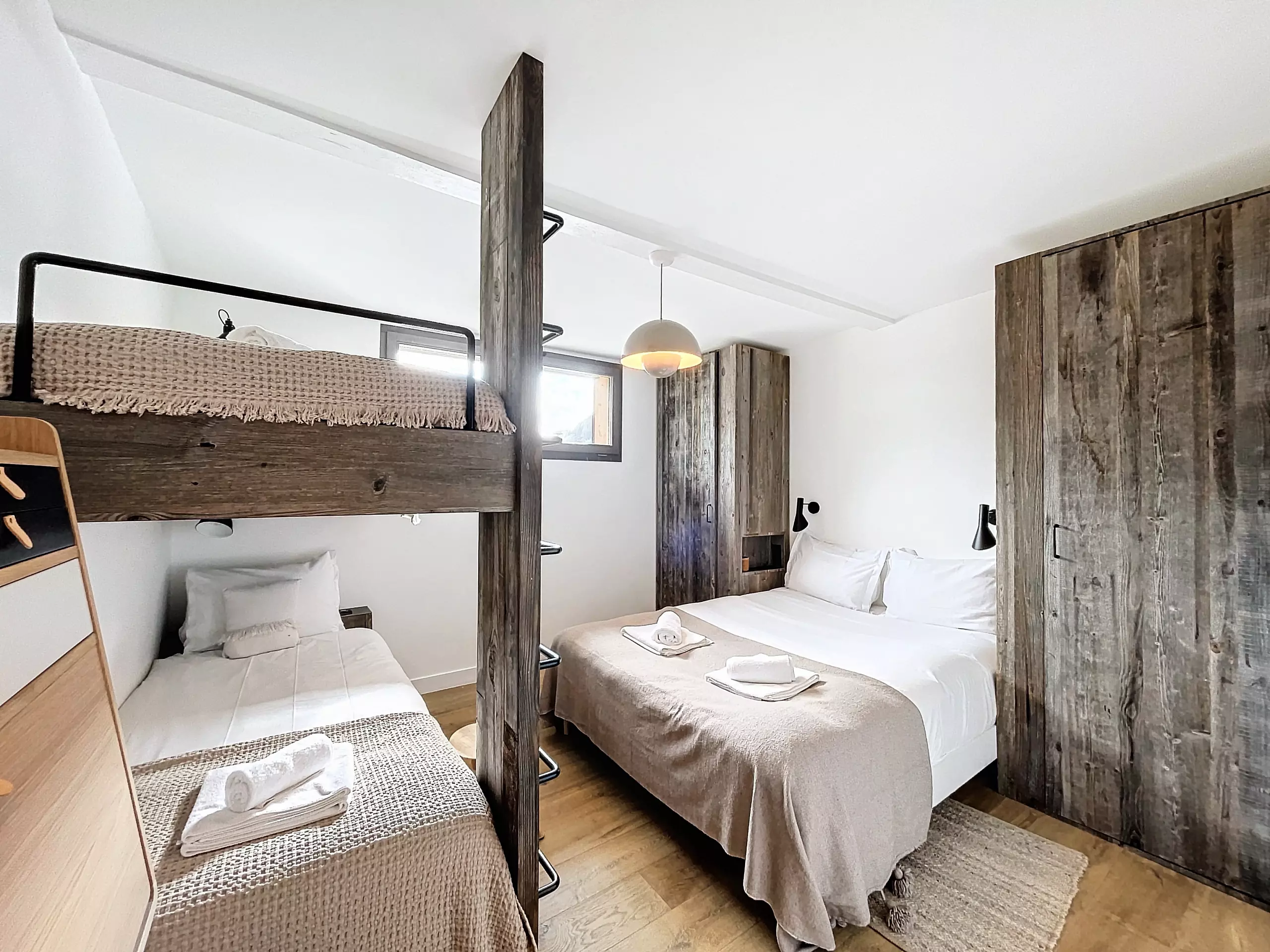 Dès l'entrée, vous serez séduit par les volumes généreux et la lumière qui baigne cet appartement. Avec ses trois chambres spacieuses et sa mezzanine douillette, il peut accueillir jusqu'à 11 personnes, parfait pour des séjours en famille ou entre amis. Chaque pièce invite à la détente après une journée sur les pistes, grâce à une décoration soignée et des matériaux nobles.