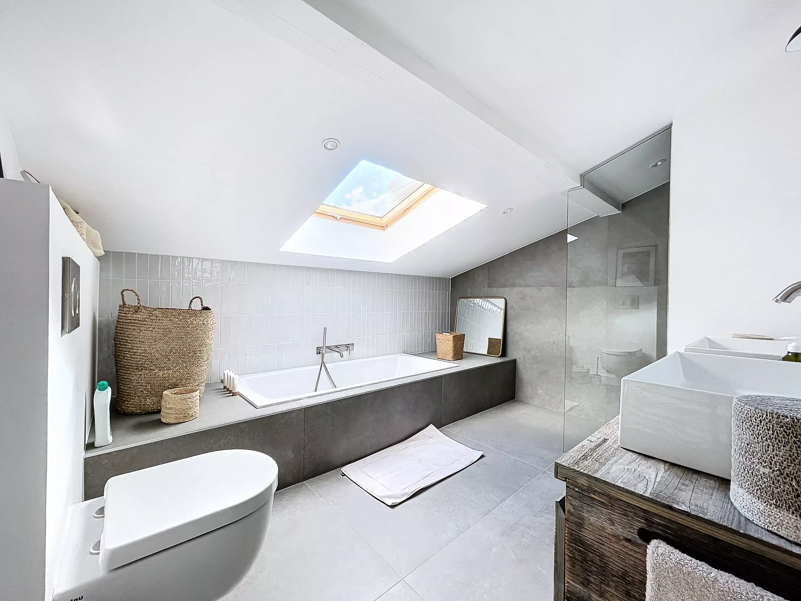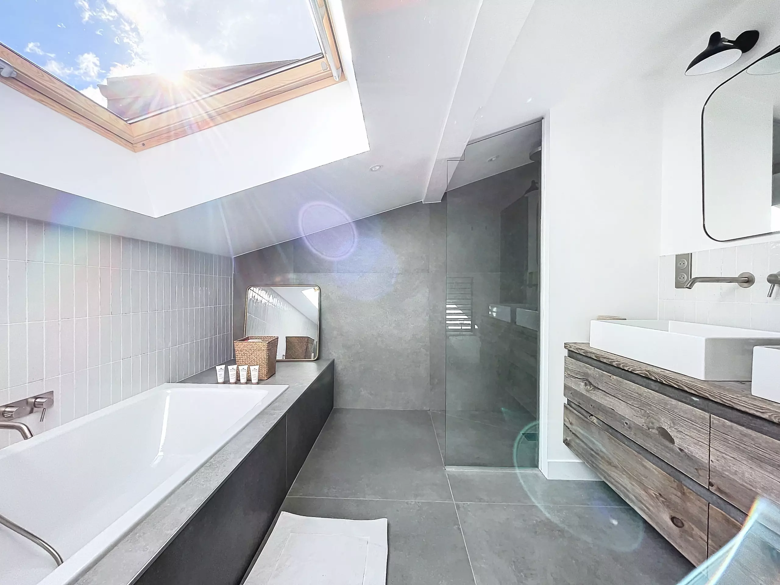 L'un des joyaux de ce duplex est sans conteste sa terrasse de 35m², baignée de soleil tout au long de la journée. Imaginez-vous en train de savourer un café au lever du soleil ou de partager un apéritif en fin de journée, tout en observant l'animation de la rue du centre en contrebas.