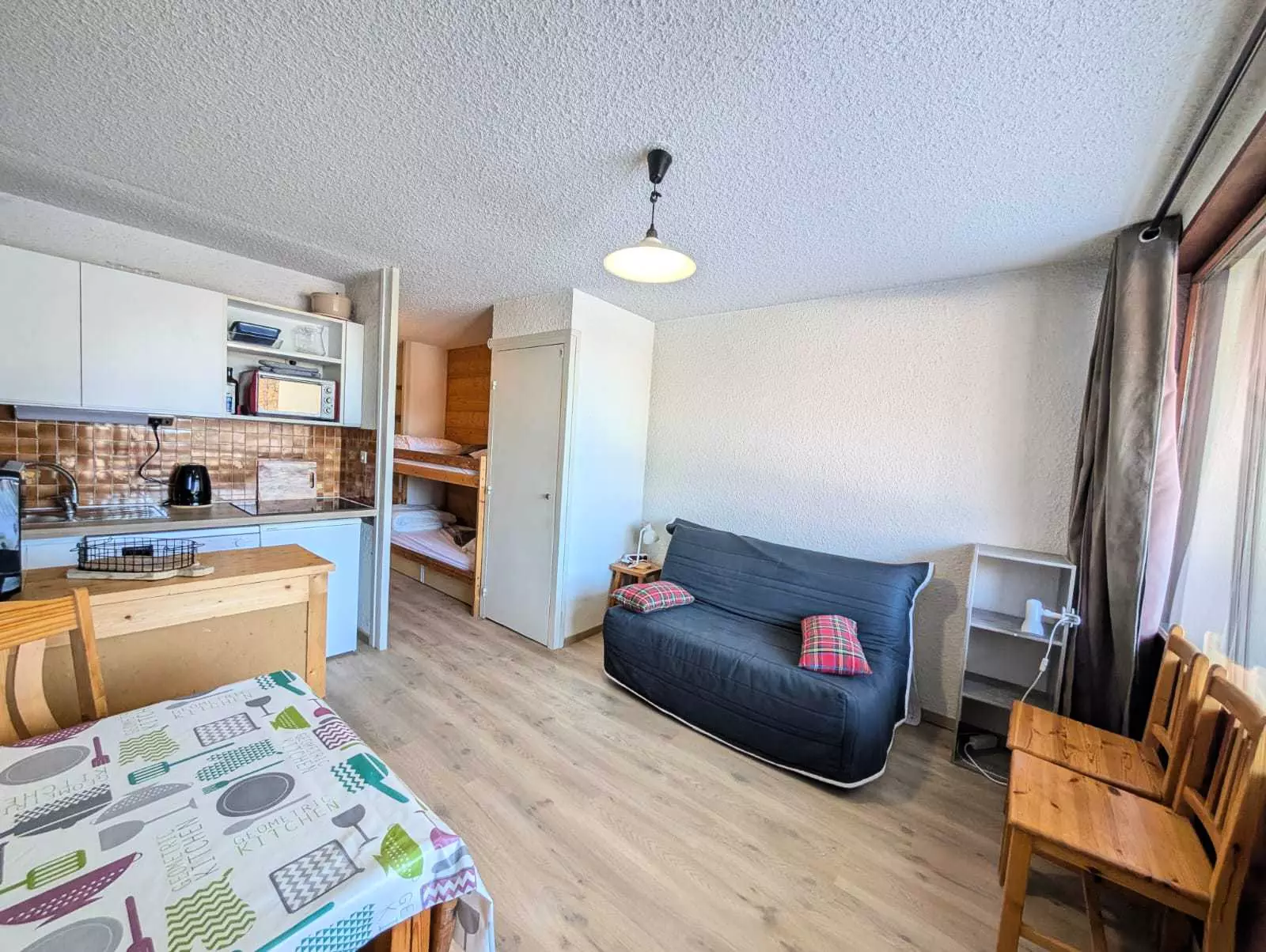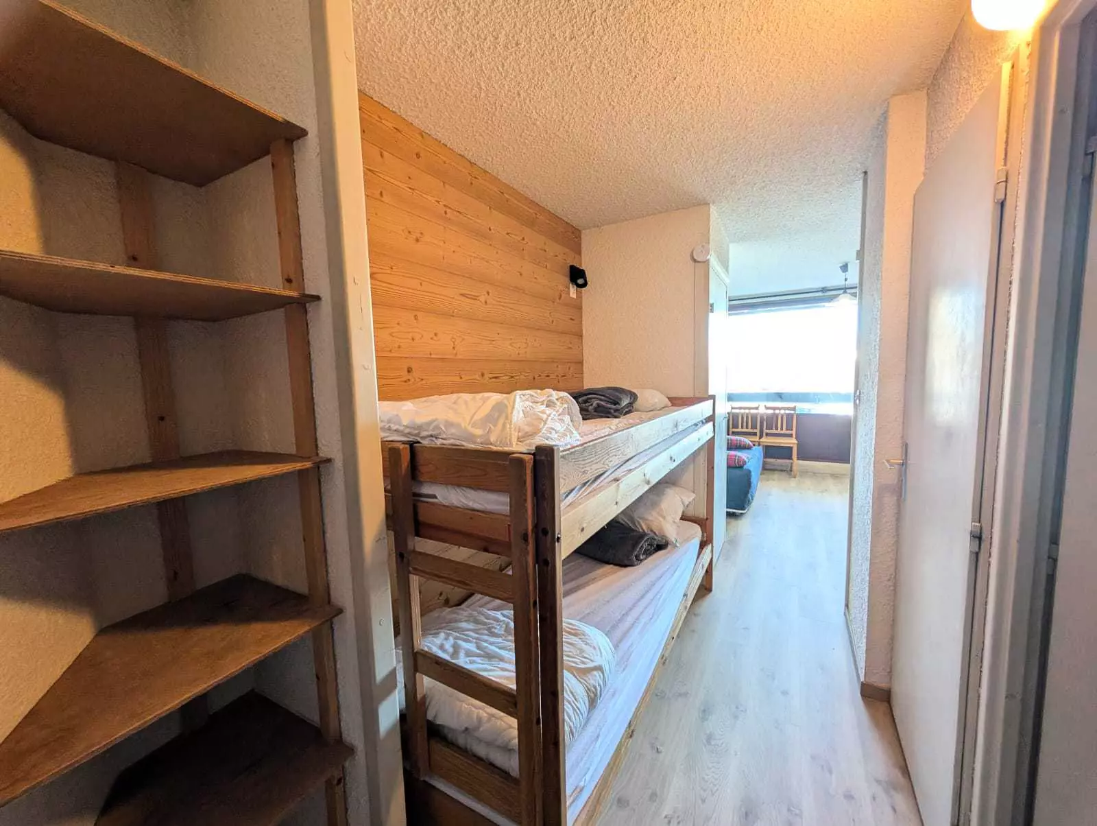 Coin montagne (séparé du séjour par une porte 3/4 ): 2 lits superposés 1 pers. (70x190)