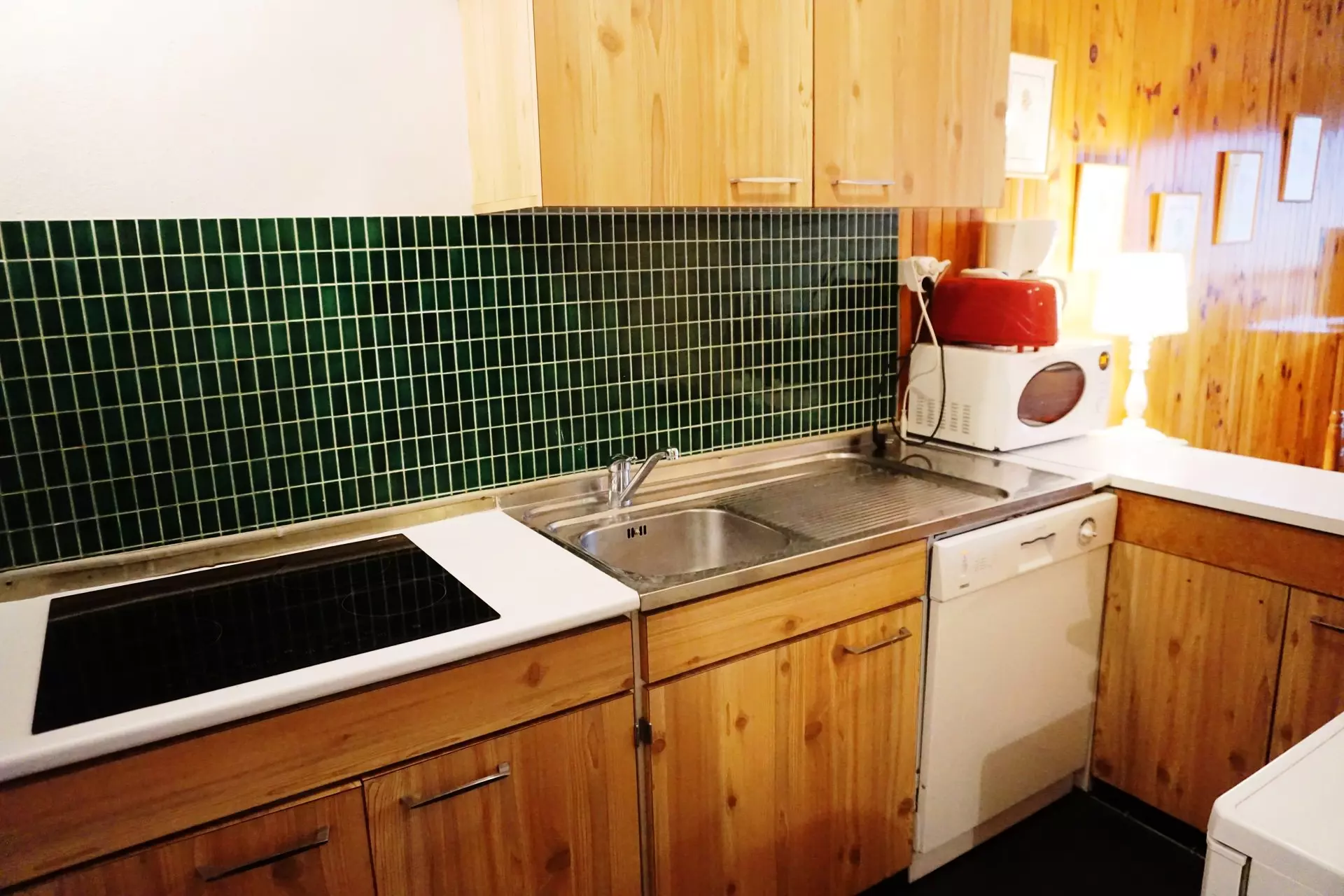 Kitchenette : plaque vitro céramique, frigo, micro ondes, lave-vaisselle.