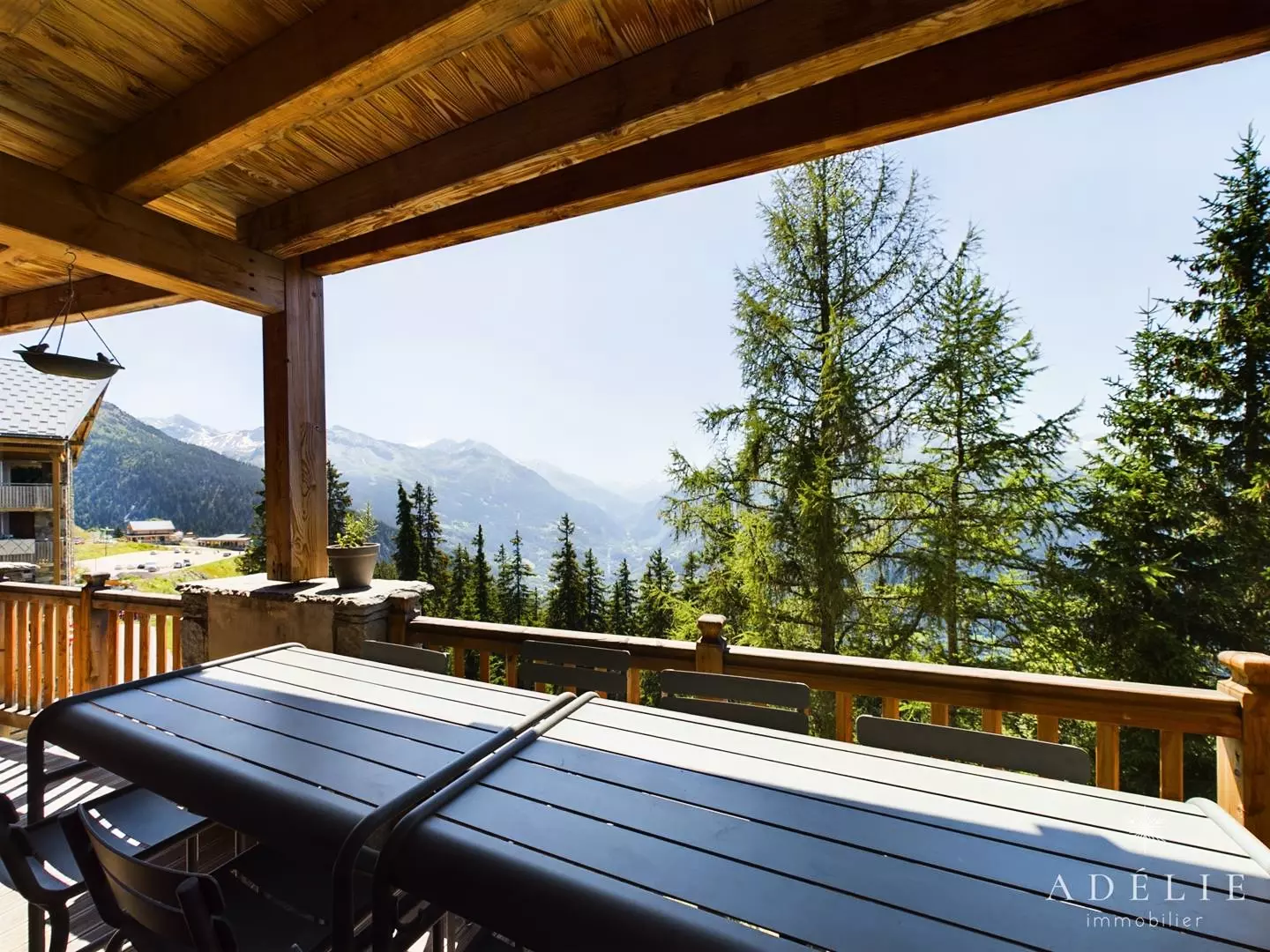 - Terrasse sud avec mobilier Fermob pour repas à 8, vue dégagée