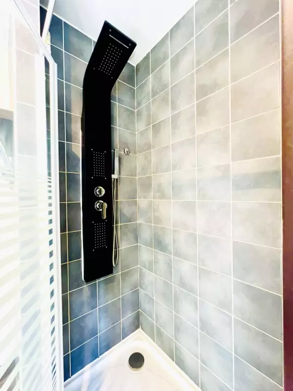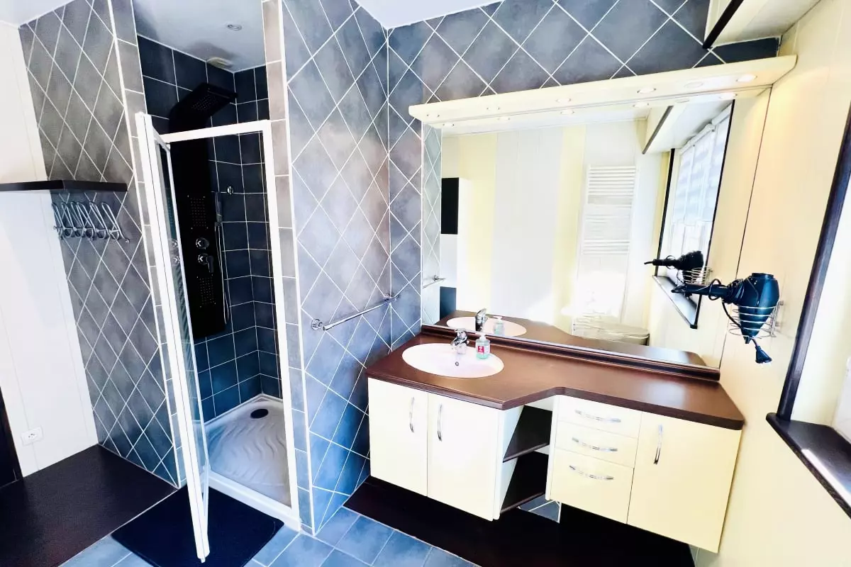 Vous disposerez également d’une salle de douche fonctionnelle, d’une cuisine entièrement équipée et d’un grand salon avec télévision pour vous détendre après une journée bien remplie.