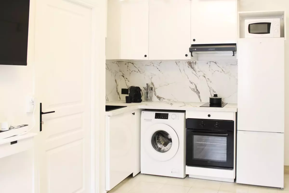 Au sein d’un immeuble élégant et bien entretenu, cet appartement allie modernité, confort et décoration haut de gamme. Vous y trouverez une chambre avec un lit double 140x200, une salle de bain moderne avec douche, ainsi qu’une cuisine entièrement équipée comprenant four, plaques, lave-vaisselle, machine à café et vaisselle complète.