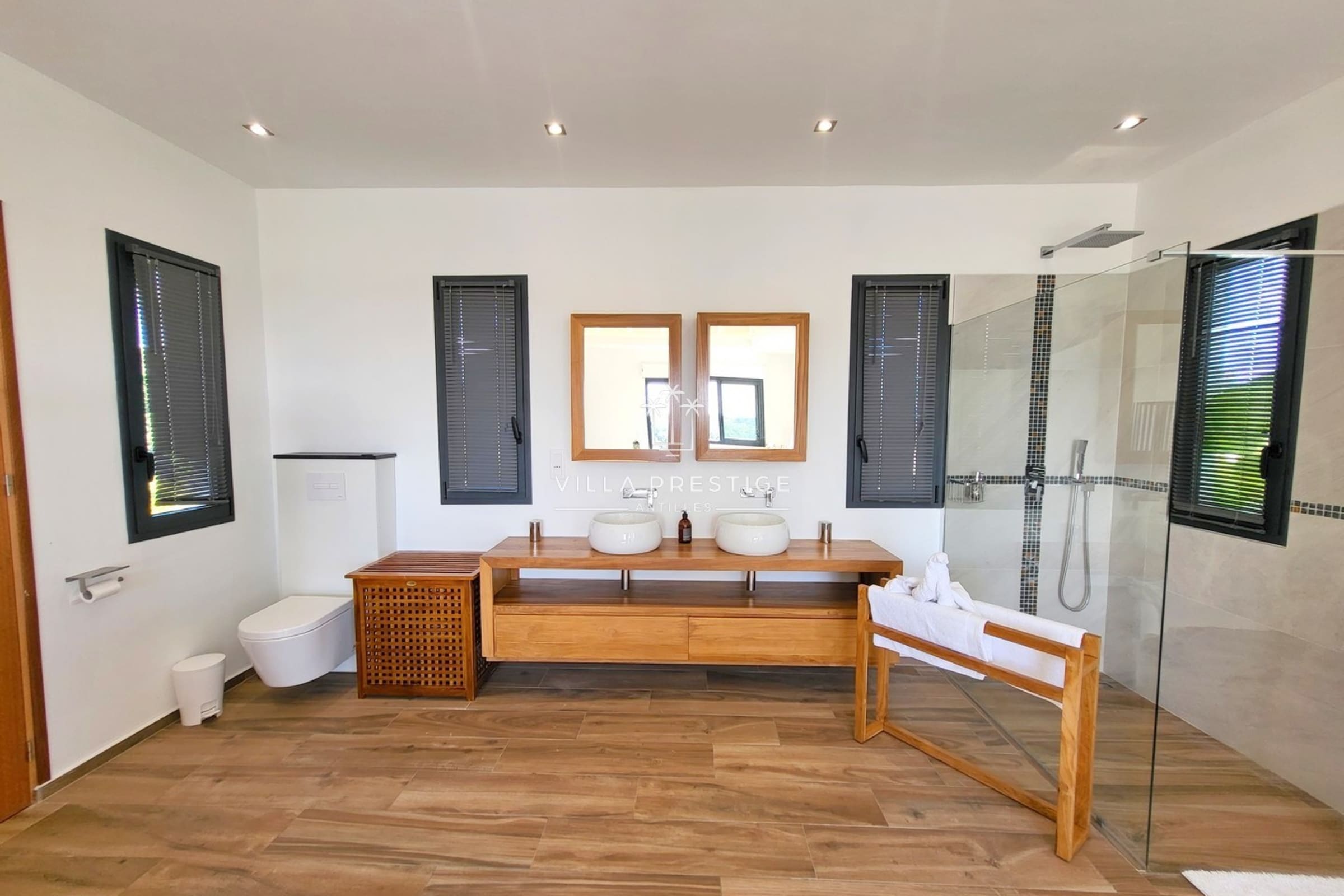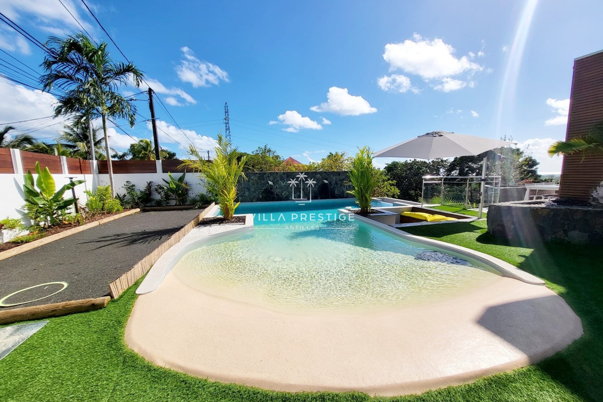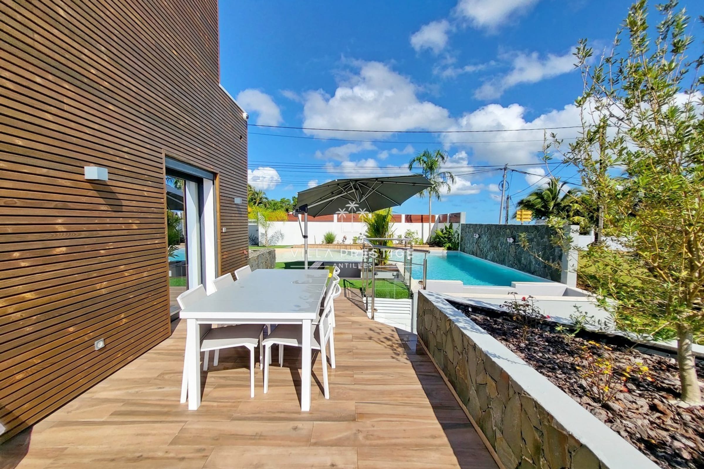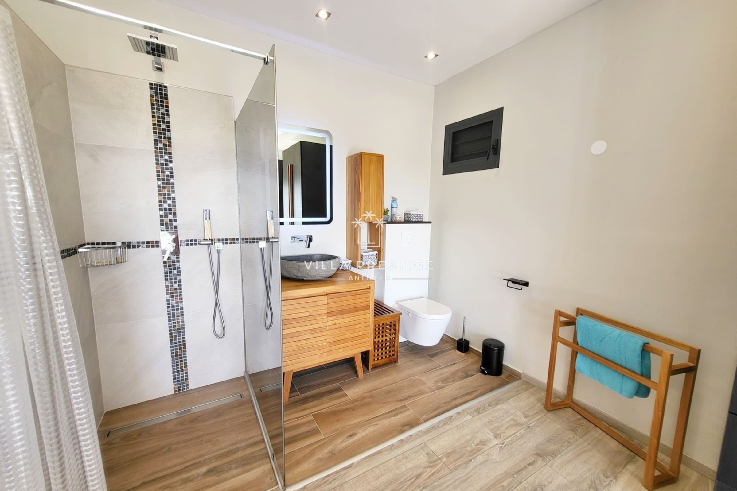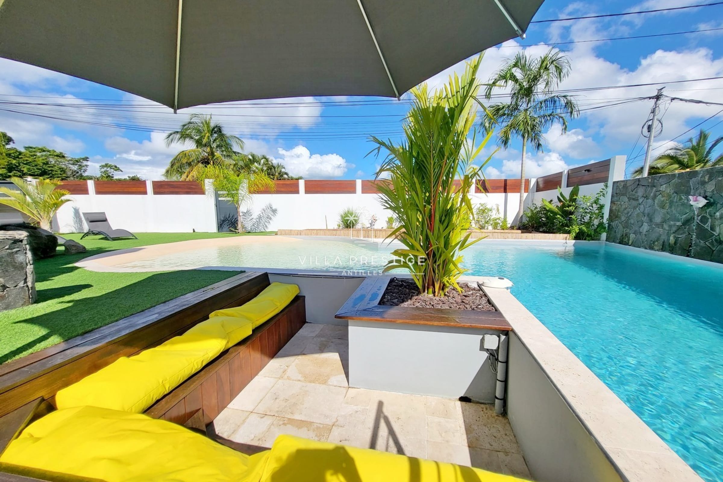 La villa s’ouvre sur une grande terrasse avec vue mer et montagne, une superbe piscine au sel avec plage immergée et des coins détente ombragés. Le jardin paysager, agrémenté d’un terrain de pétanque et d’un bar à punch, invite à la convivialité. Un barbecue est également à disposition pour vos repas en plein air. Parking sécurisé sur place.