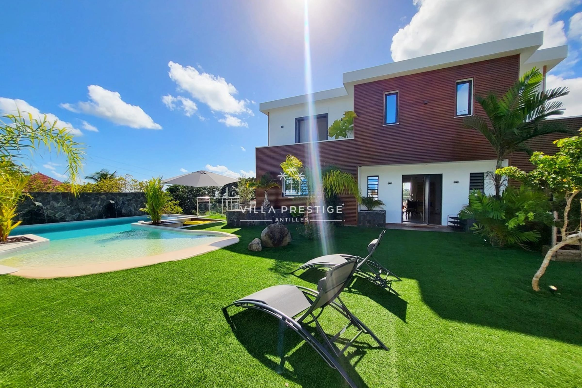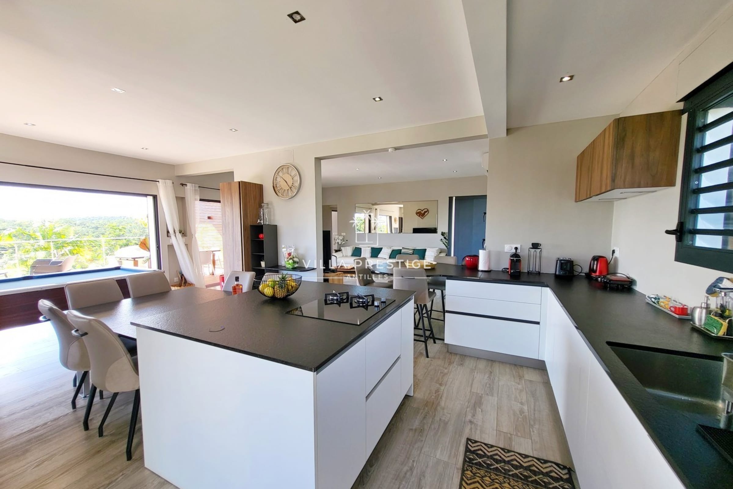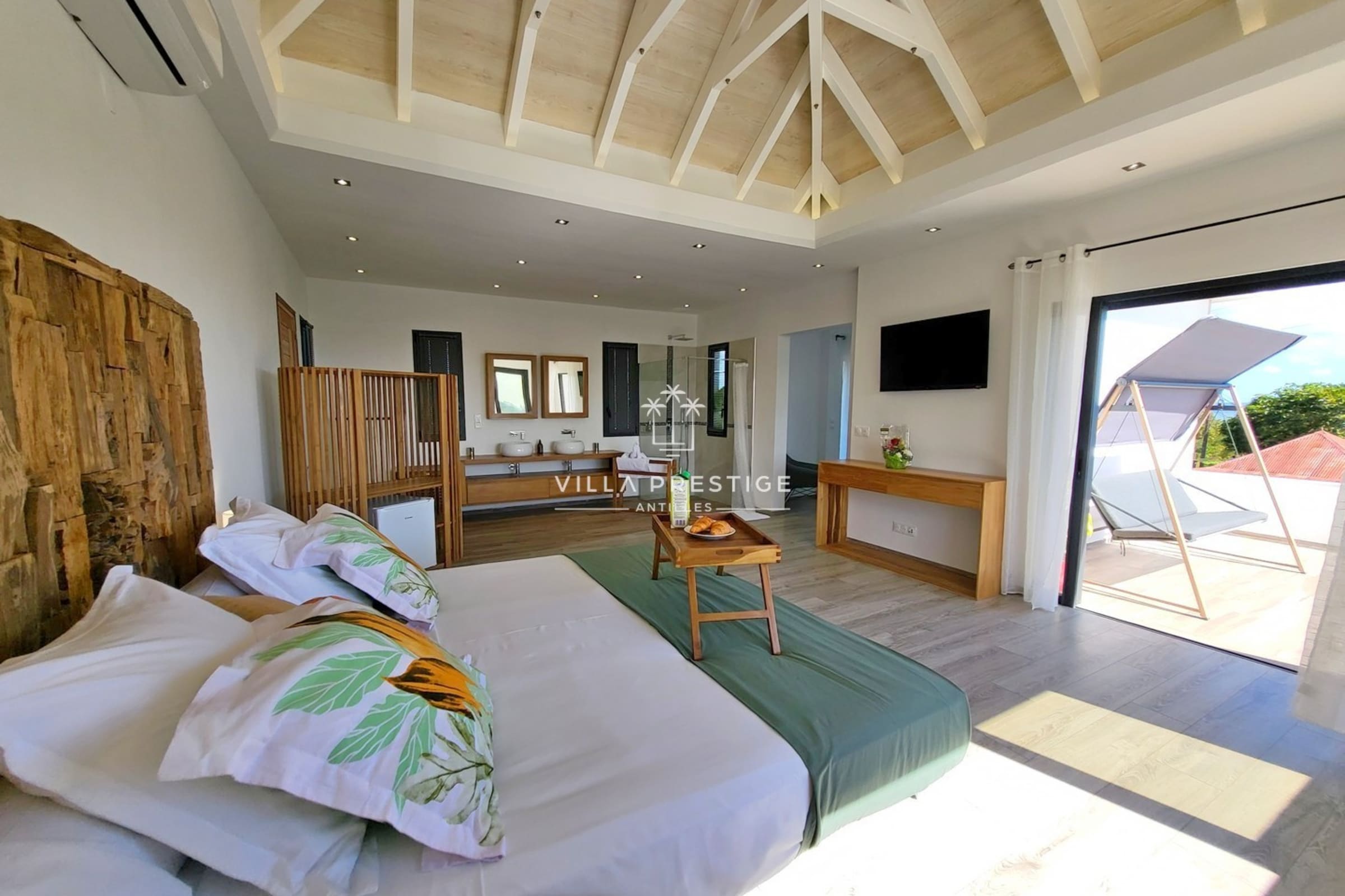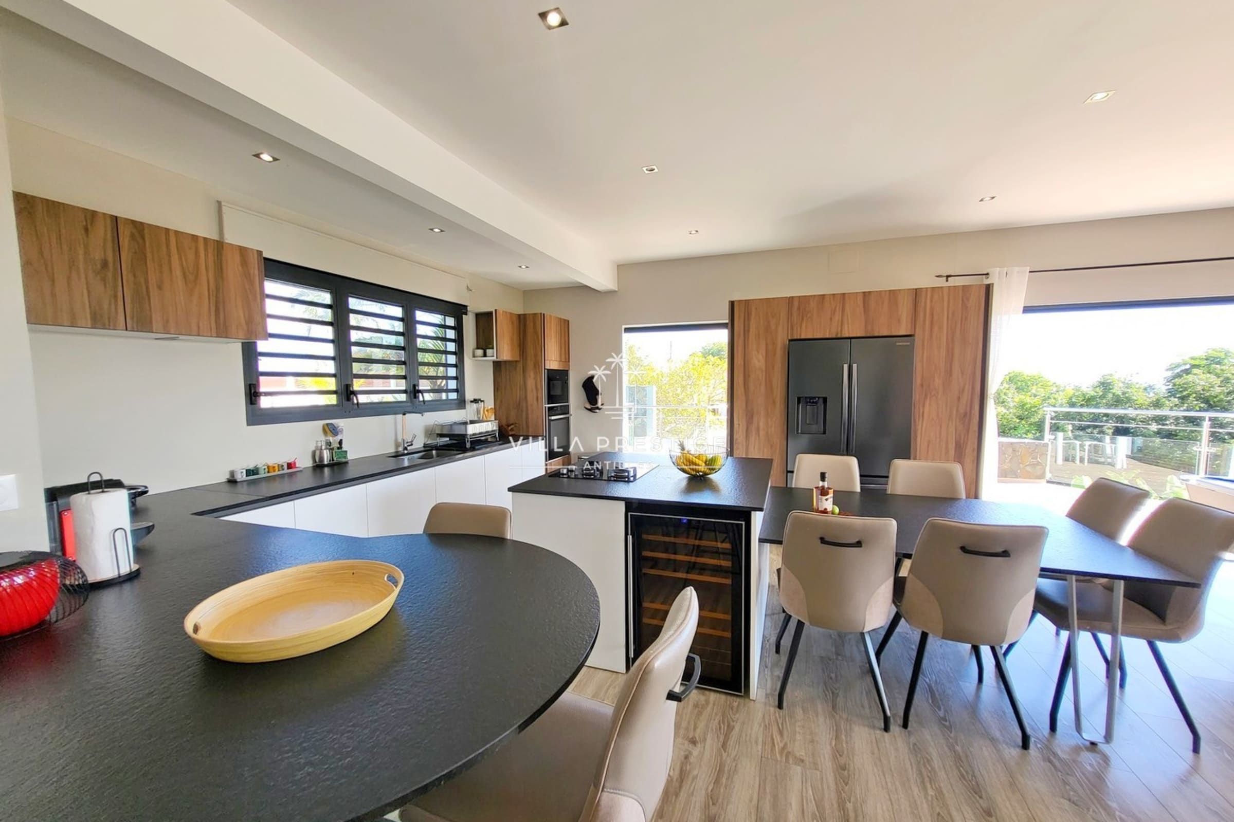 La villa s’ouvre sur une grande terrasse avec vue mer et montagne, une superbe piscine au sel avec plage immergée et des coins détente ombragés. Le jardin paysager, agrémenté d’un terrain de pétanque et d’un bar à punch, invite à la convivialité. Un barbecue est également à disposition pour vos repas en plein air. Parking sécurisé sur place.
