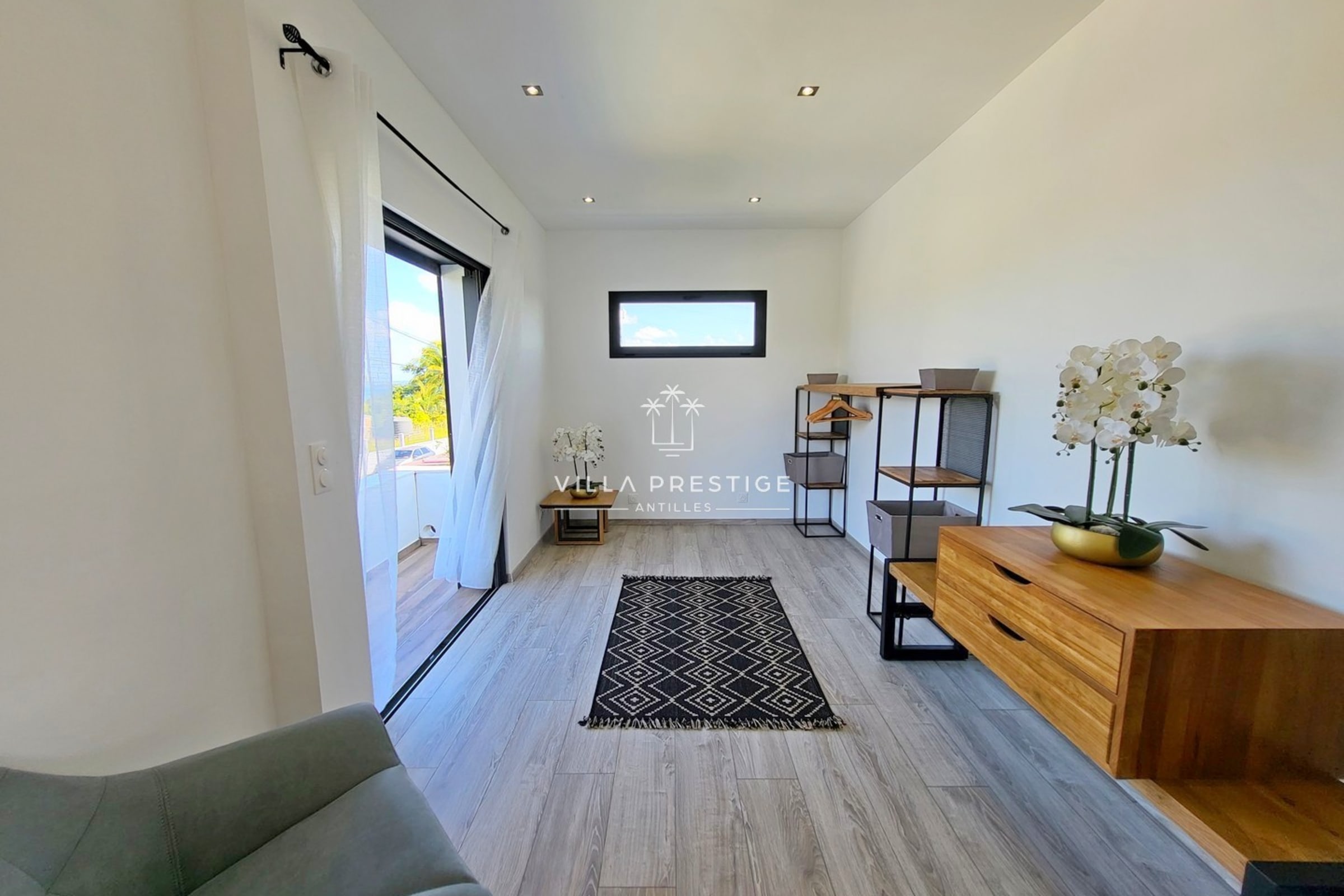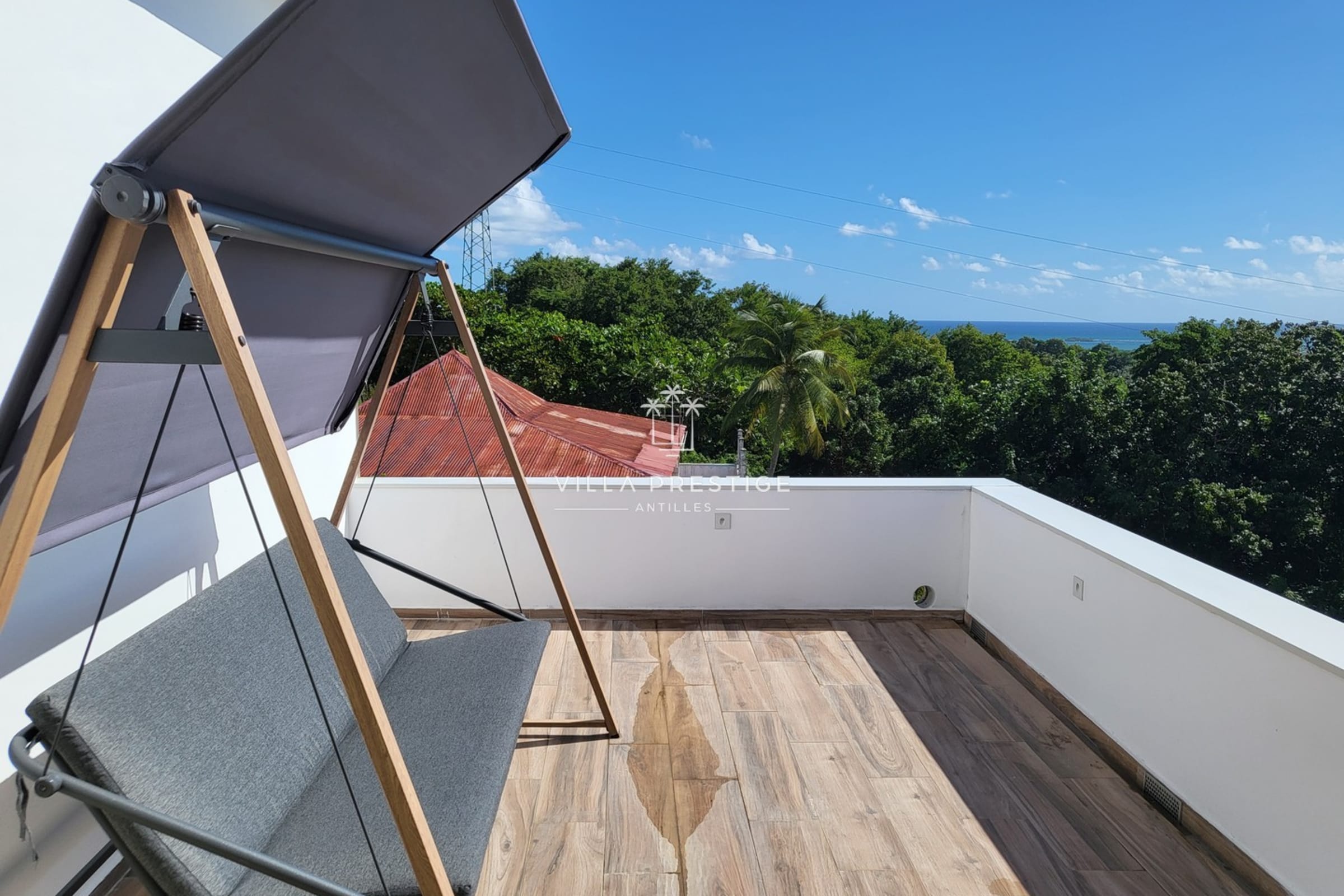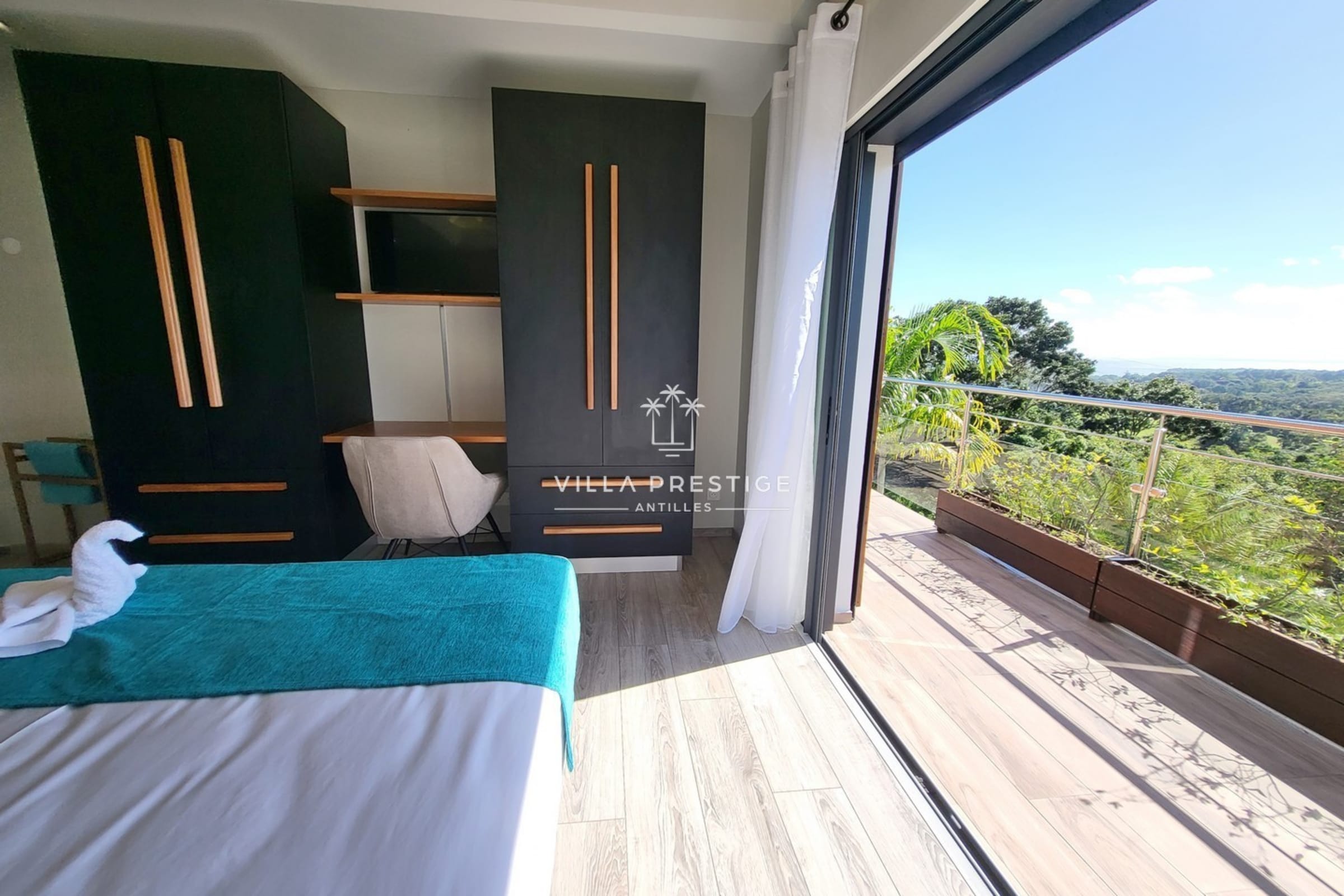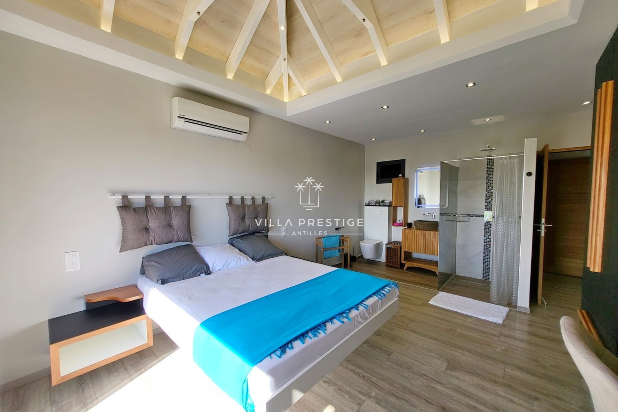 La Villa J’Aime vous accueille entre mer et montagne, sur les hauteurs verdoyantes du Jardin d’Eau à Goyave, à la limite de Petit-Bourg. Véritable havre de paix, elle offre un cadre exceptionnel avec vue panoramique sur l’océan et les collines environnantes. Idéale pour un séjour en famille ou entre amis, elle allie confort, convivialité et prestations haut de gamme pour 6 personnes.
