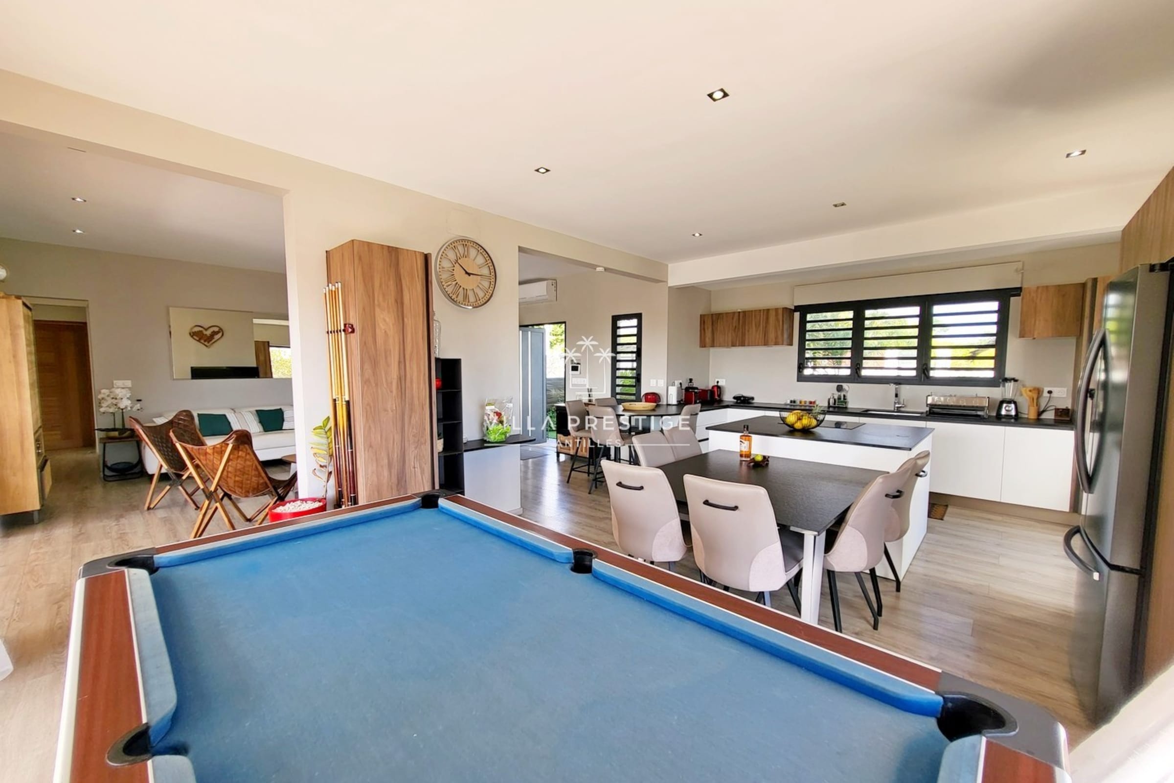Spacieuse et lumineuse, la villa s’organise autour d’un séjour climatisé avec coin TV, billard, espace lecture et WiFi. La cuisine moderne, ouverte sur la pièce à vivre, est entièrement équipée pour des repas en toute simplicité : plaques de cuisson, four, micro-ondes, lave-vaisselle, réfrigérateur, congélateur, cafetière, grille-pain et nombreux ustensiles.