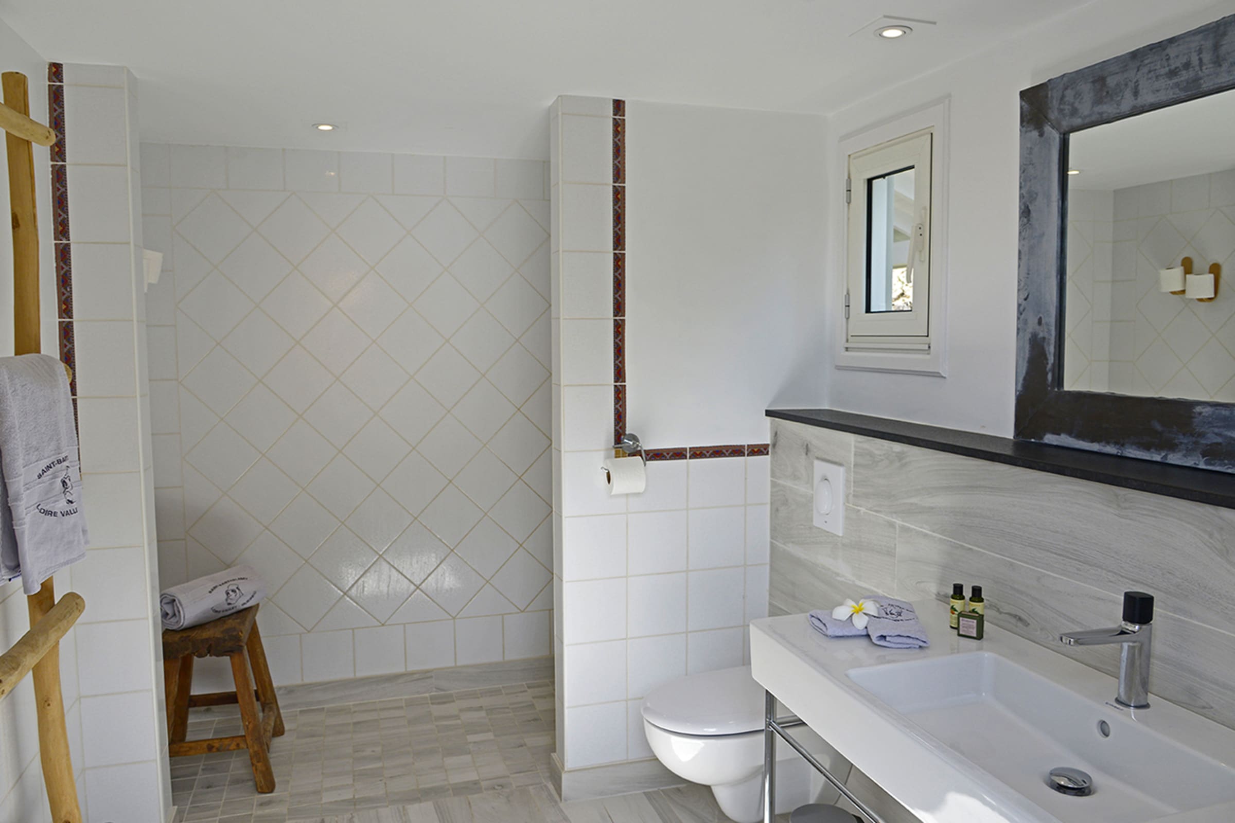 Sur plusieurs étages, la villa est composée de 5 chambres doubles climatisées, parfait pour accueillir vos vacances en famille ou entre amis. Chaque chambre propose des prestations identiques: lit king-size, coin bureau, rangements et salle de bain privative. Les deux chambres du bâtiment principal s’ouvrent sur une terrasse; deux autres chambres situées au niveau inférieur offre un accès à la piscine. La dernière chambre est vaste et se situe dans un bungalow privé.