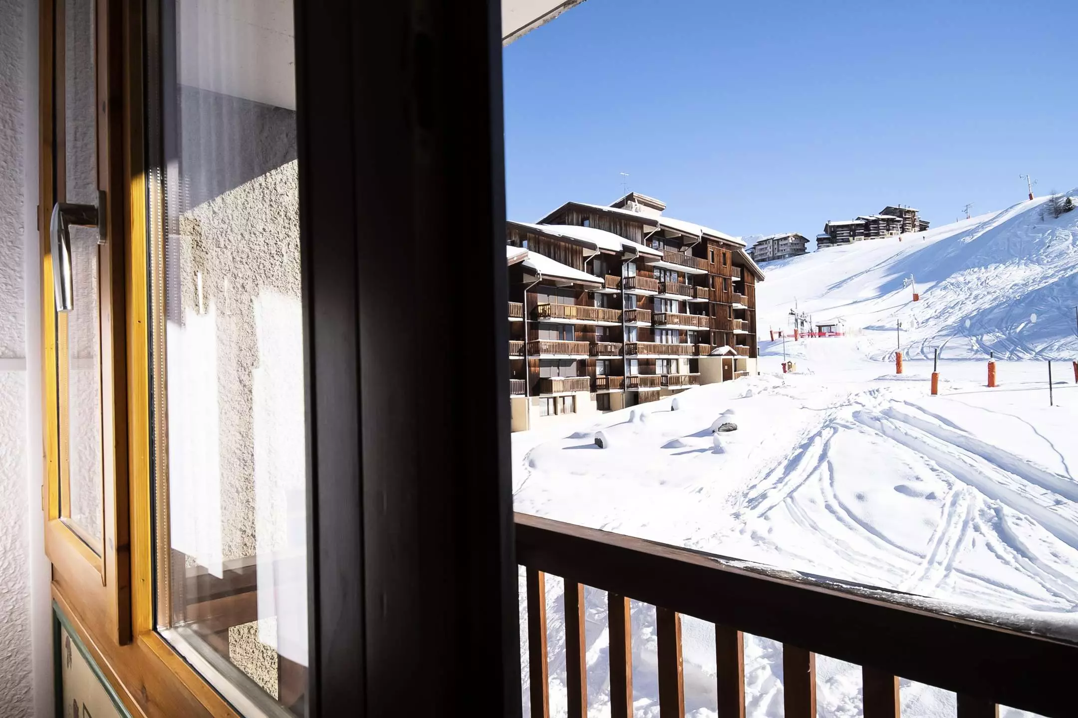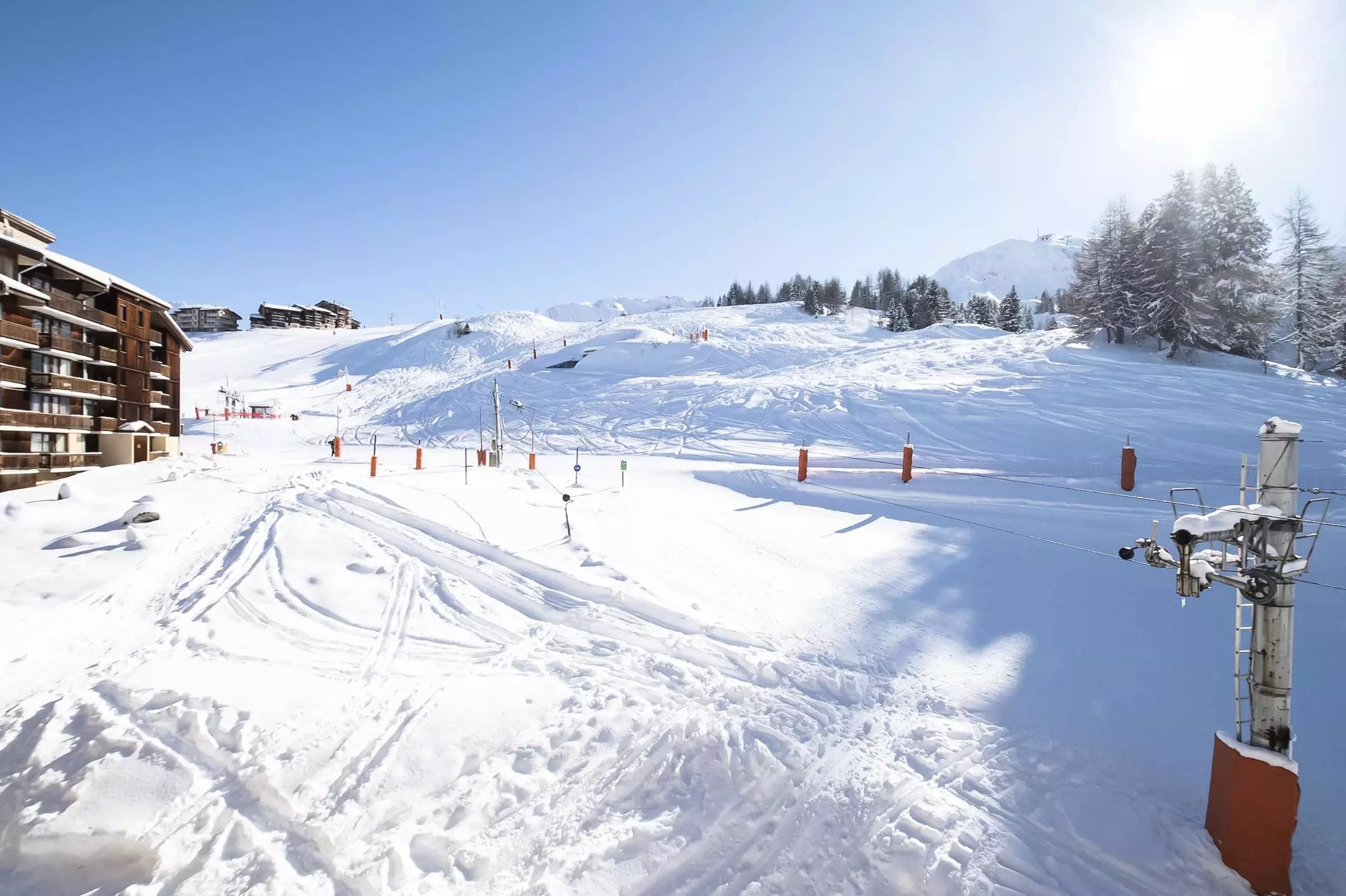 Résidence composé de 5 étages, calme, au PIED DES PISTES et à 50 m des commerces - parking extérieur gratuit à proximité - Plagne Villages est reliée à PLAGNE CENTRE par TELEBUS télécabine gratuite.