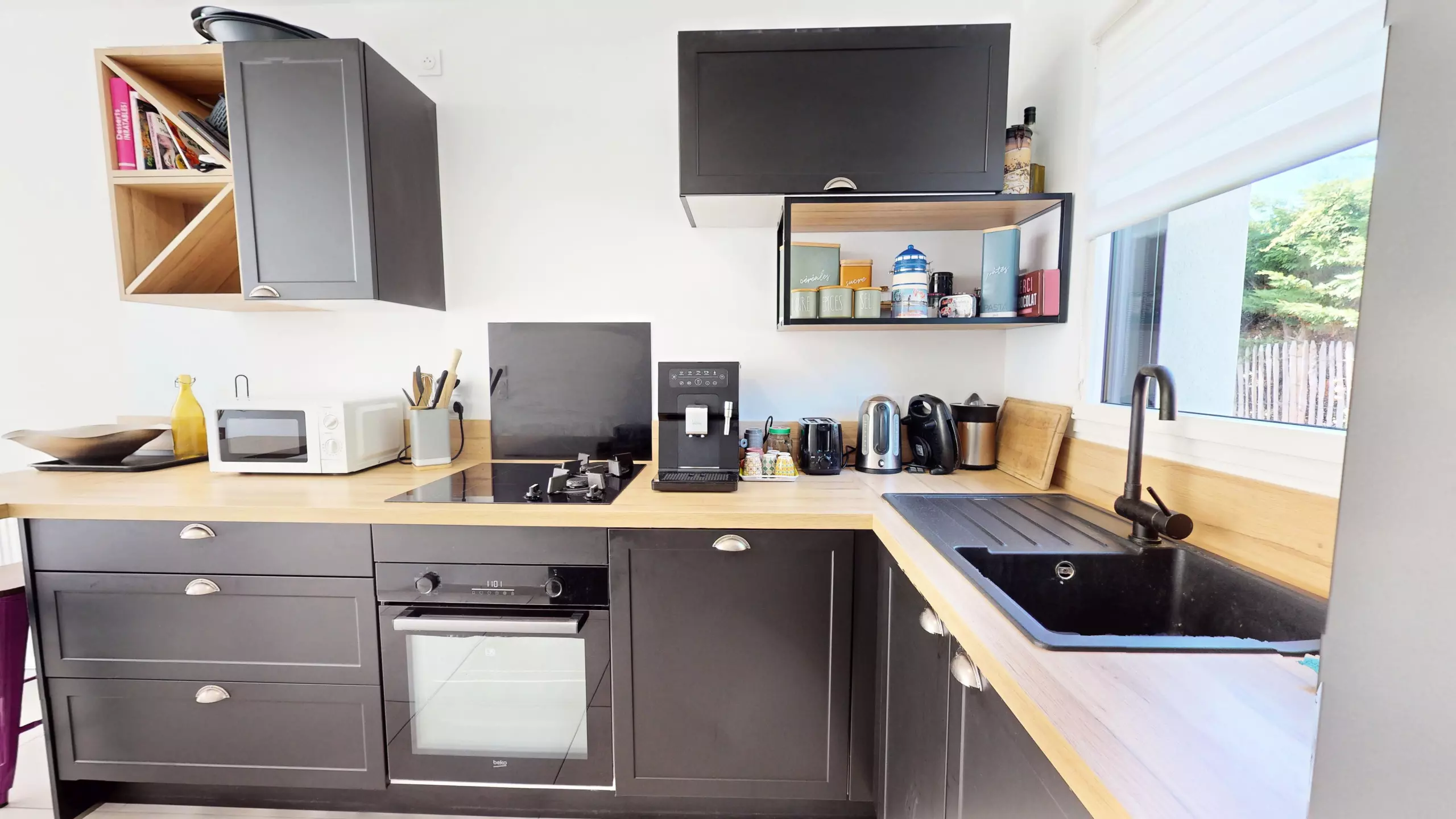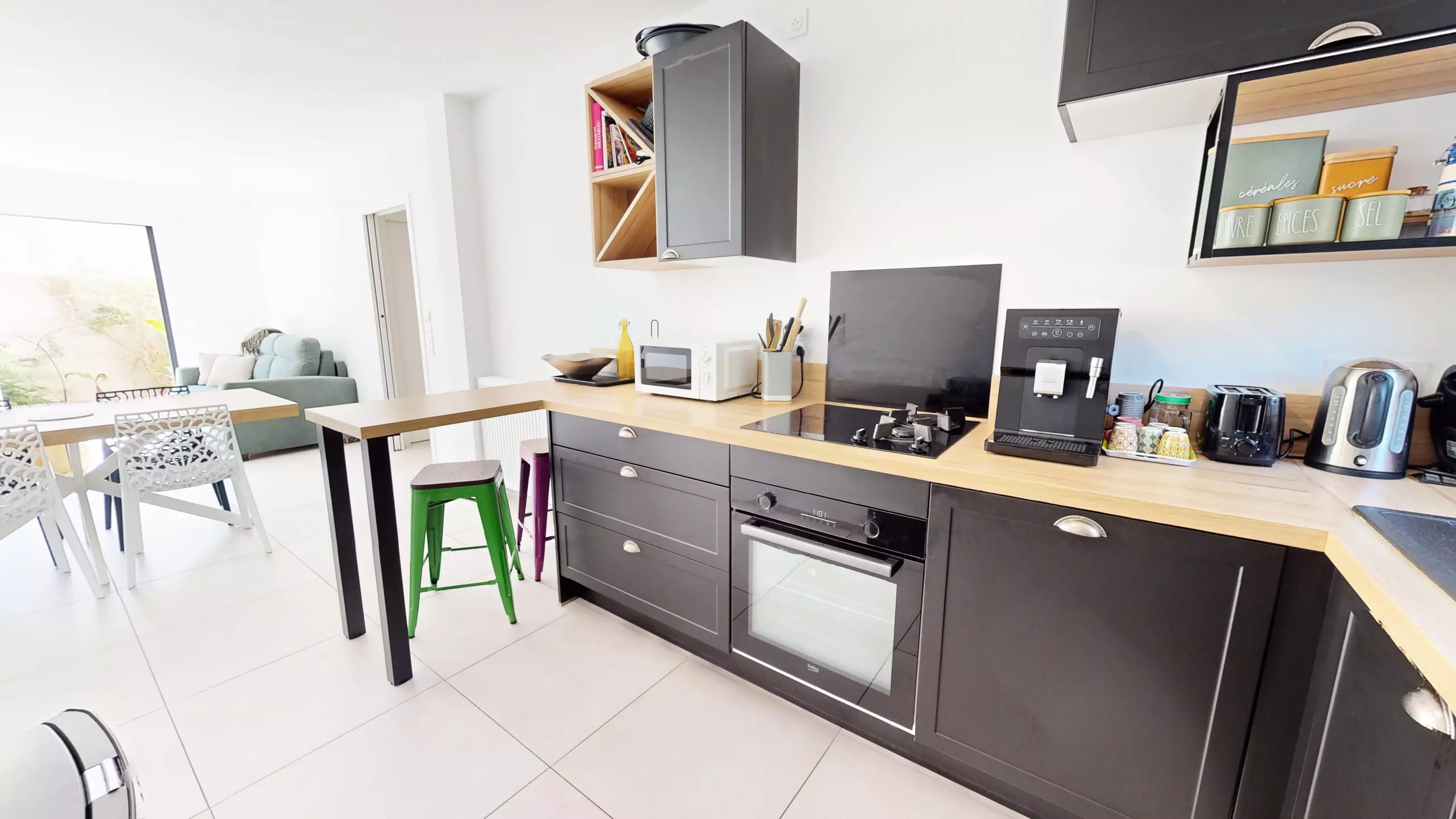 - ? Cuisine ouverte et entièrement équipée : four, plaques, micro-ondes, lave-vaisselle, cafetière, ustensiles — tout le nécessaire pour cuisiner comme à la maison
