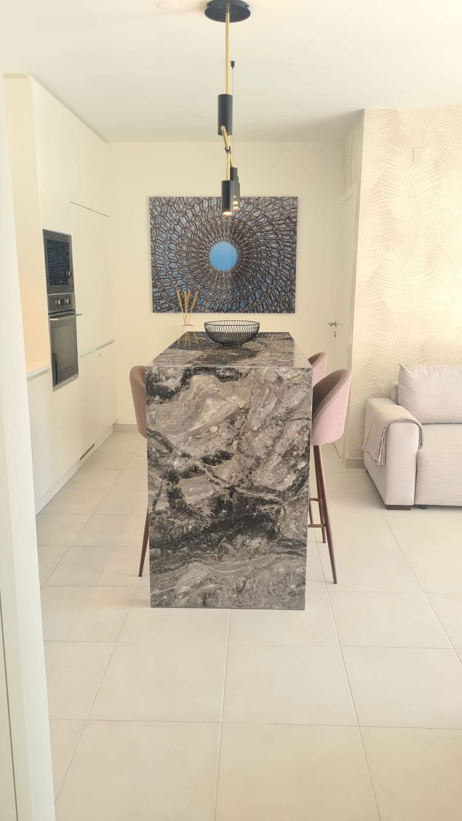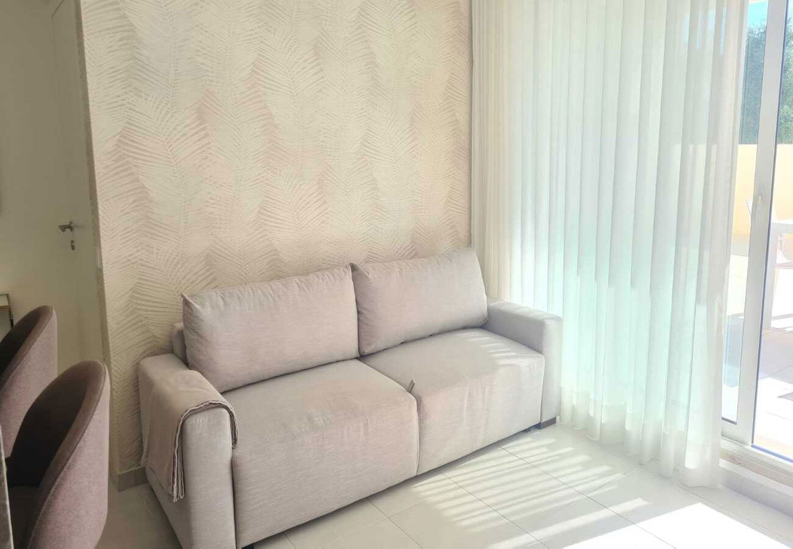 Cet appartement a été soigneusement décoré pour offrir une atmosphère contemporaine et accueillante. Avec deux chambres naturellement lumineuses, dont une suite avec salle de bains privative, et une deuxième salle de bains complète, il offre espace et intimité pour toute la famille. Le salon ouvert, avec accès à la terrasse, est parfait pour des moments de détente, et dispose d’une télévision avec des chaînes internationales et d'une connexion internet haut débit. Pour plus de commodité, la copropriété propose un accès à une piscine et une salle de sport partagées, ainsi qu’une place de parking, faisant de cet appartement le choix idéal pour des vacances sans souci.