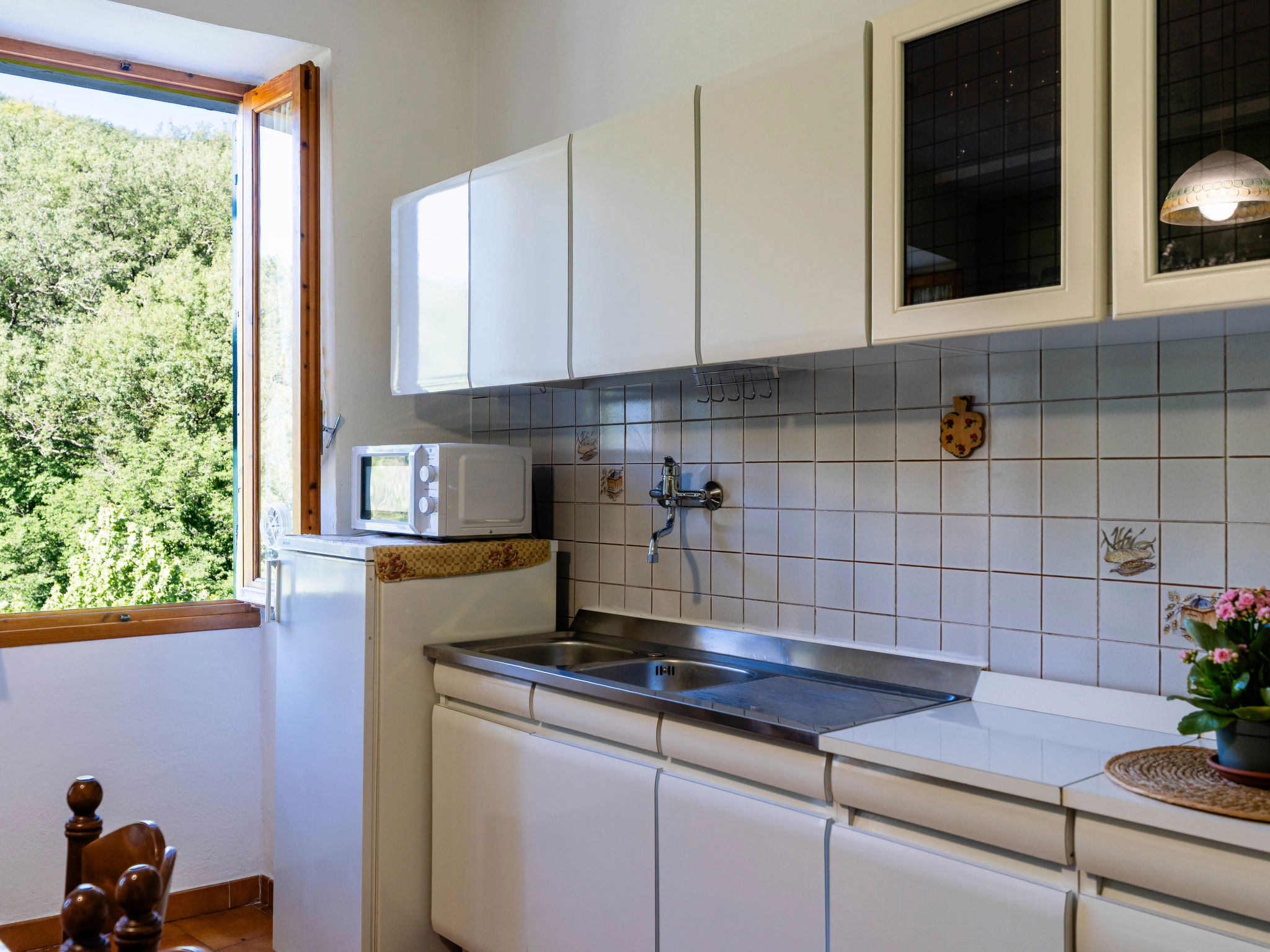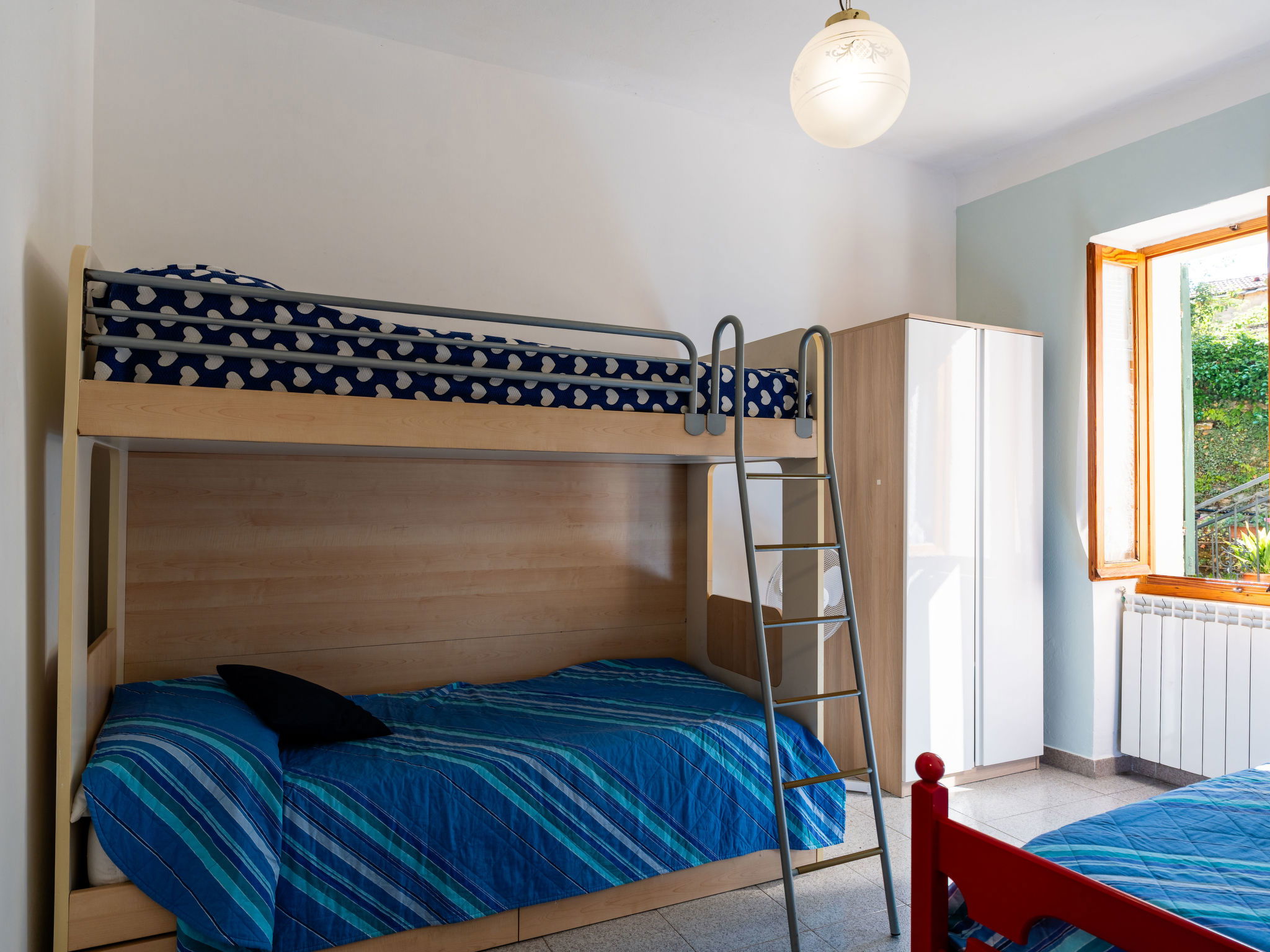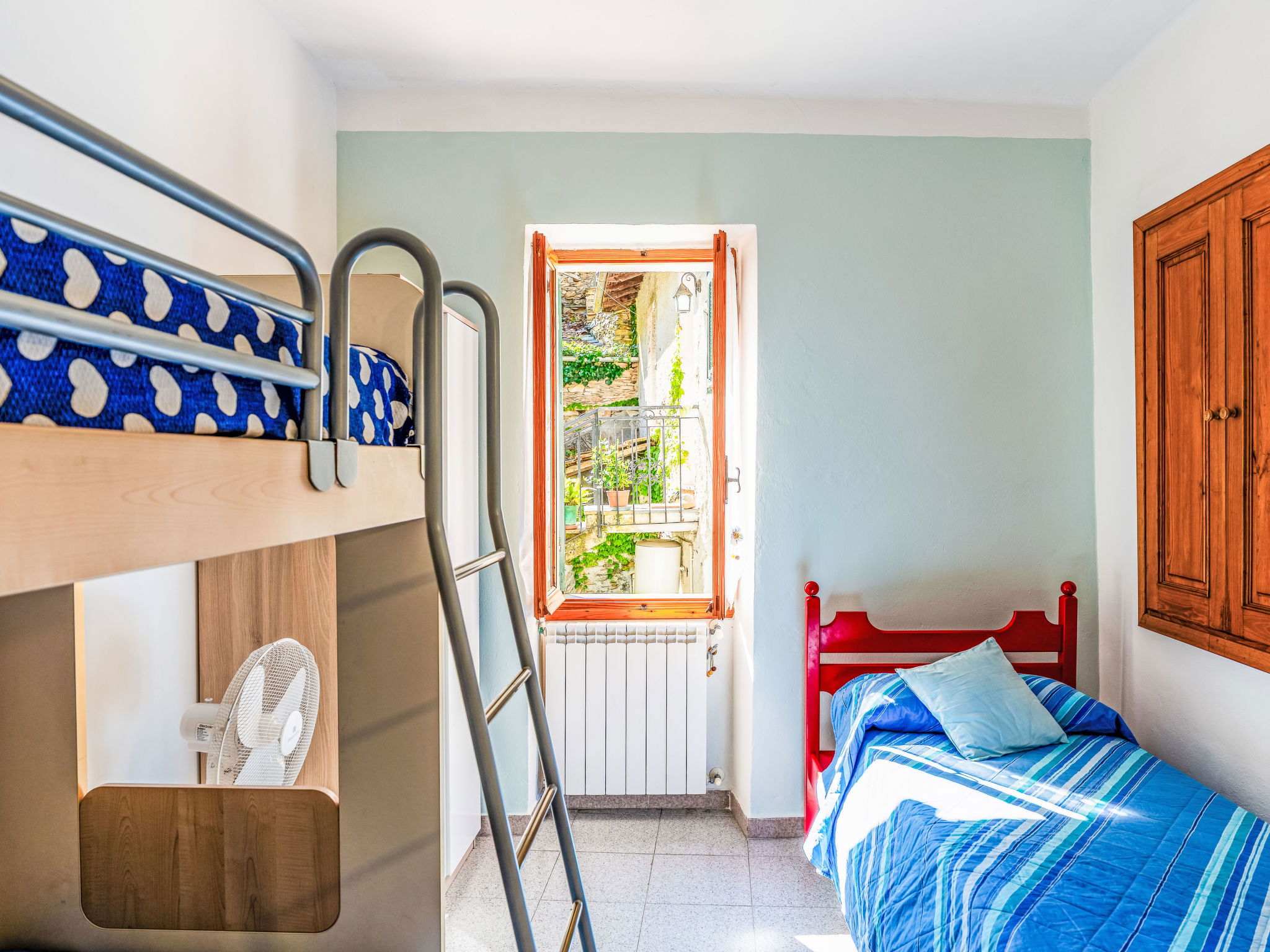 "Nonna Lena", maison mitoyenne 3 pièces 70 m2 sur 2 niveaux. Clair, aménagement fonctionnel et plaisant: séjour/salle à manger avec table pour les repas et TV (satellite). Coin cuisine (four, 4 feux, grille-pain, bouilloire électrique, congélateur, cafetière électrique, Capsules pour machine à café (Nespresso) inclus). Douche/bidet/WC. Pas de chauffage. À l'étage supérieur: 1 chambre avec 1 lit double (1 x 160 cm, longueur 200 cm). 1 chambre avec 1 lit et 1 x 2 lits superposés. Jardinet. Vue latérale sur la vallée et la localité. A disposition: lave-linge, fer à repasser, sèche-cheveux. Internet (Connexion WIFI, gratuit). Maximum 1 animal/ chien autorisé. IT008047C2LK7AY2A5