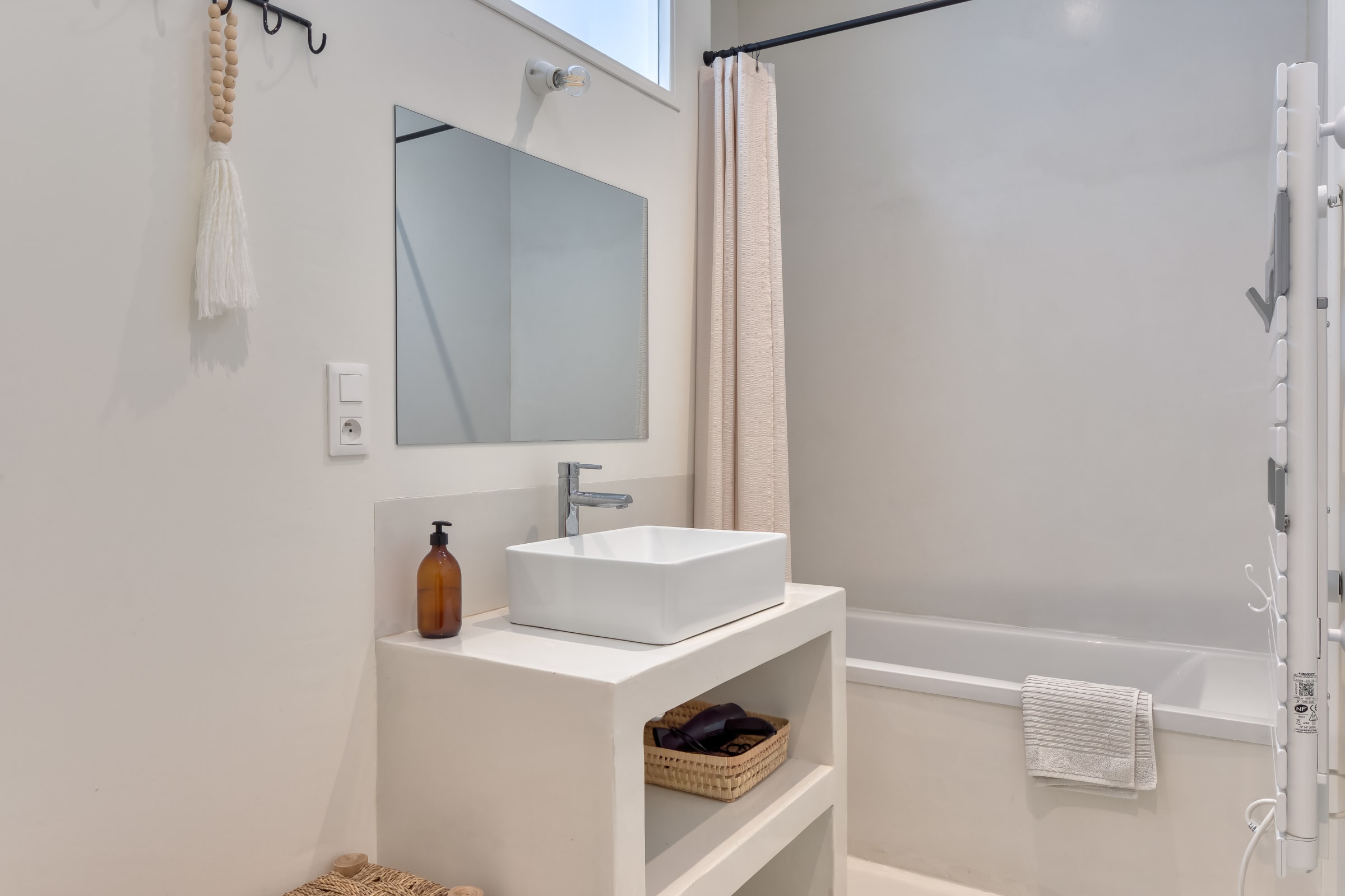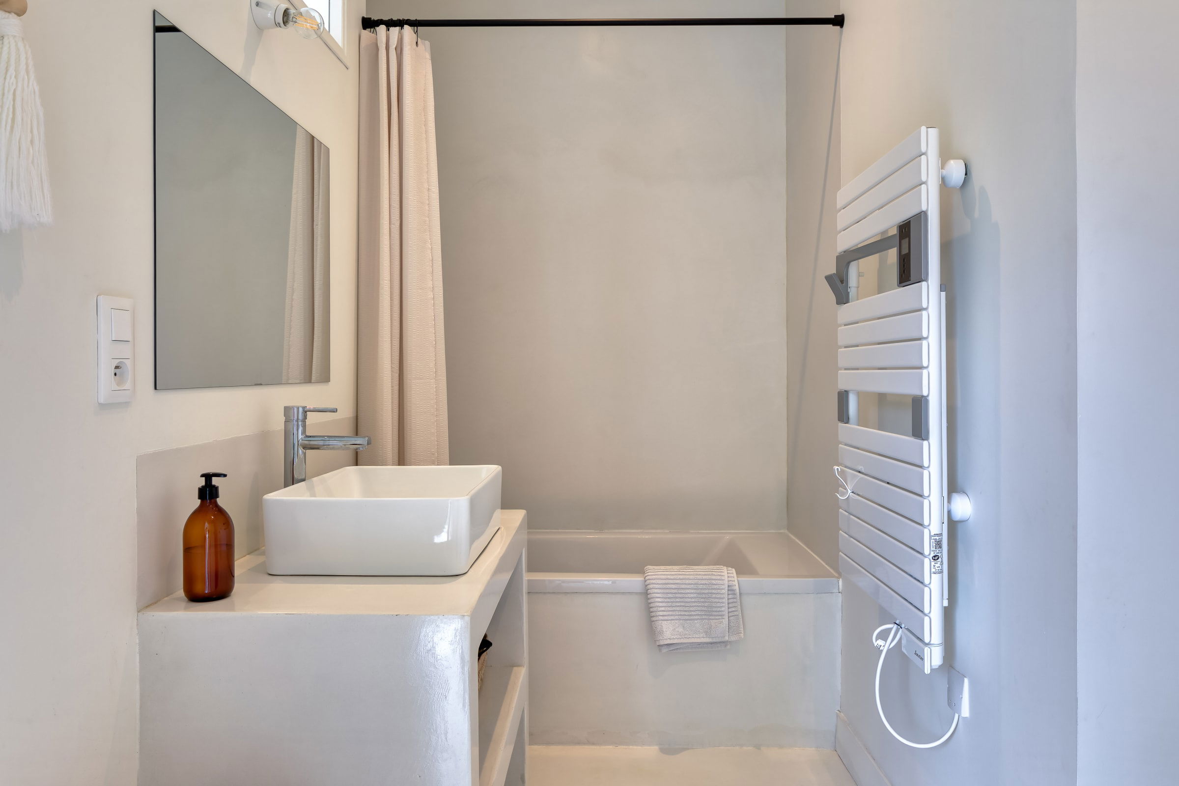 Une salle de bain avec baignoire/douche et WC complète l’espace nuit.
