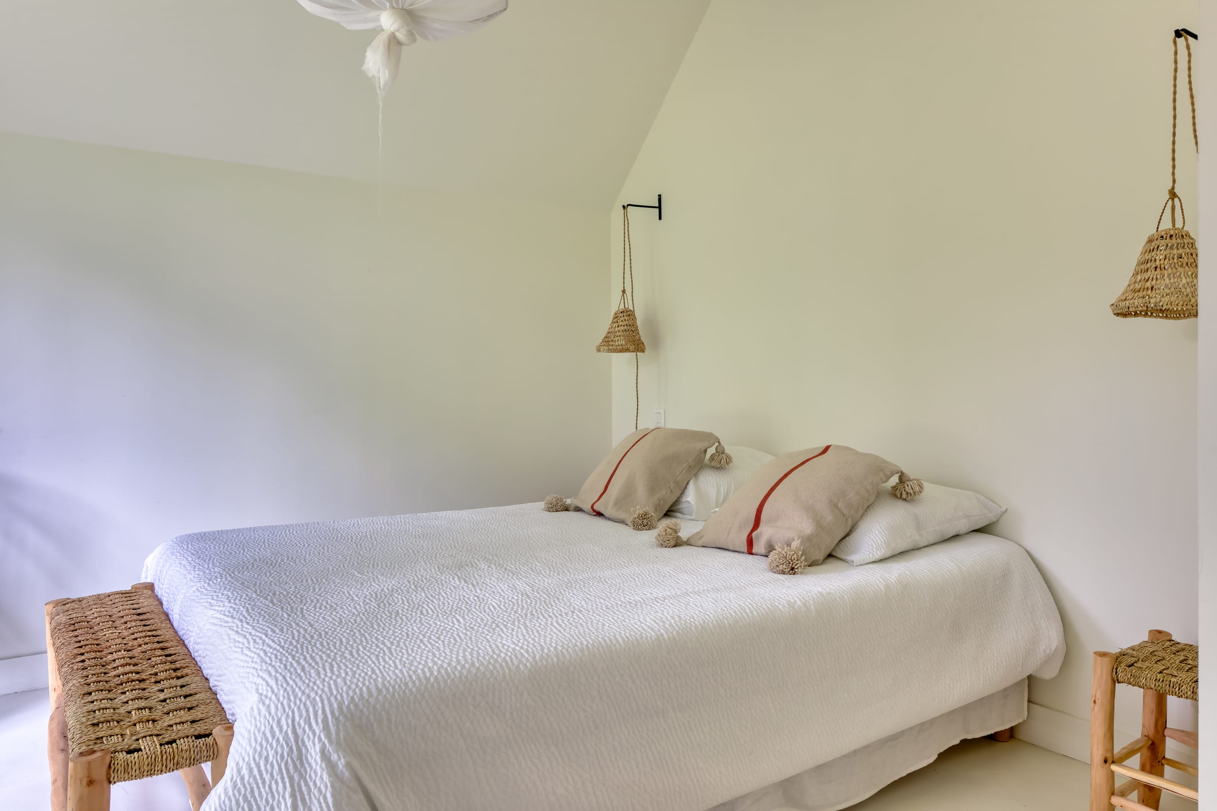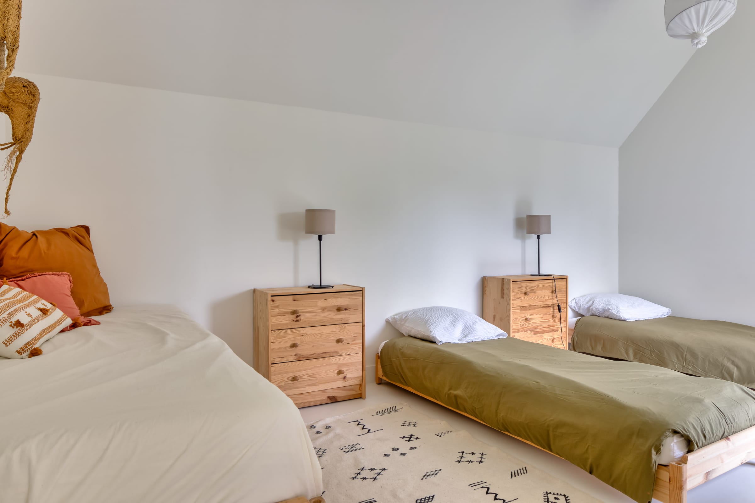 → Une troisième chambre modulable avec jusqu’à quatre lits simples (80x200) ou un lit queen size, idéale pour les enfants ou une seconde famille. Le linge de lit et de maison est mis à votre disposition dans cette chambre sauf pour un lit double qui est en supplément de 12€ sur demande. Le linge sera disponible dans un coffre sous cadenas à nous demander sous réserve du paiement.