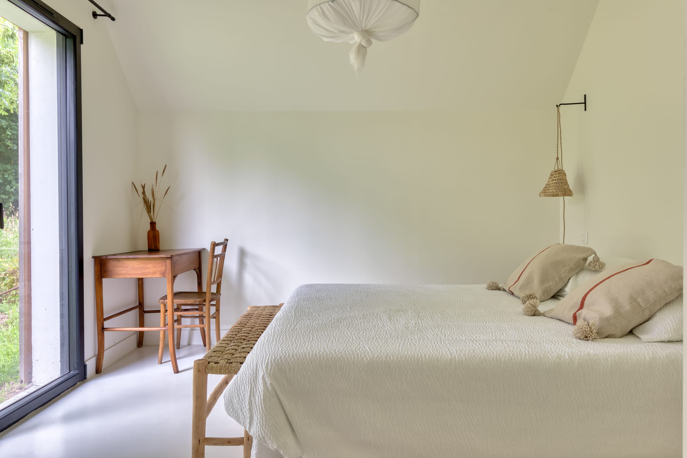 → Une deuxième chambre avec lit queen size (160x200) et un espace bureau, Le linge de lit et de maison est mis à votre disposition dans cette chambre.