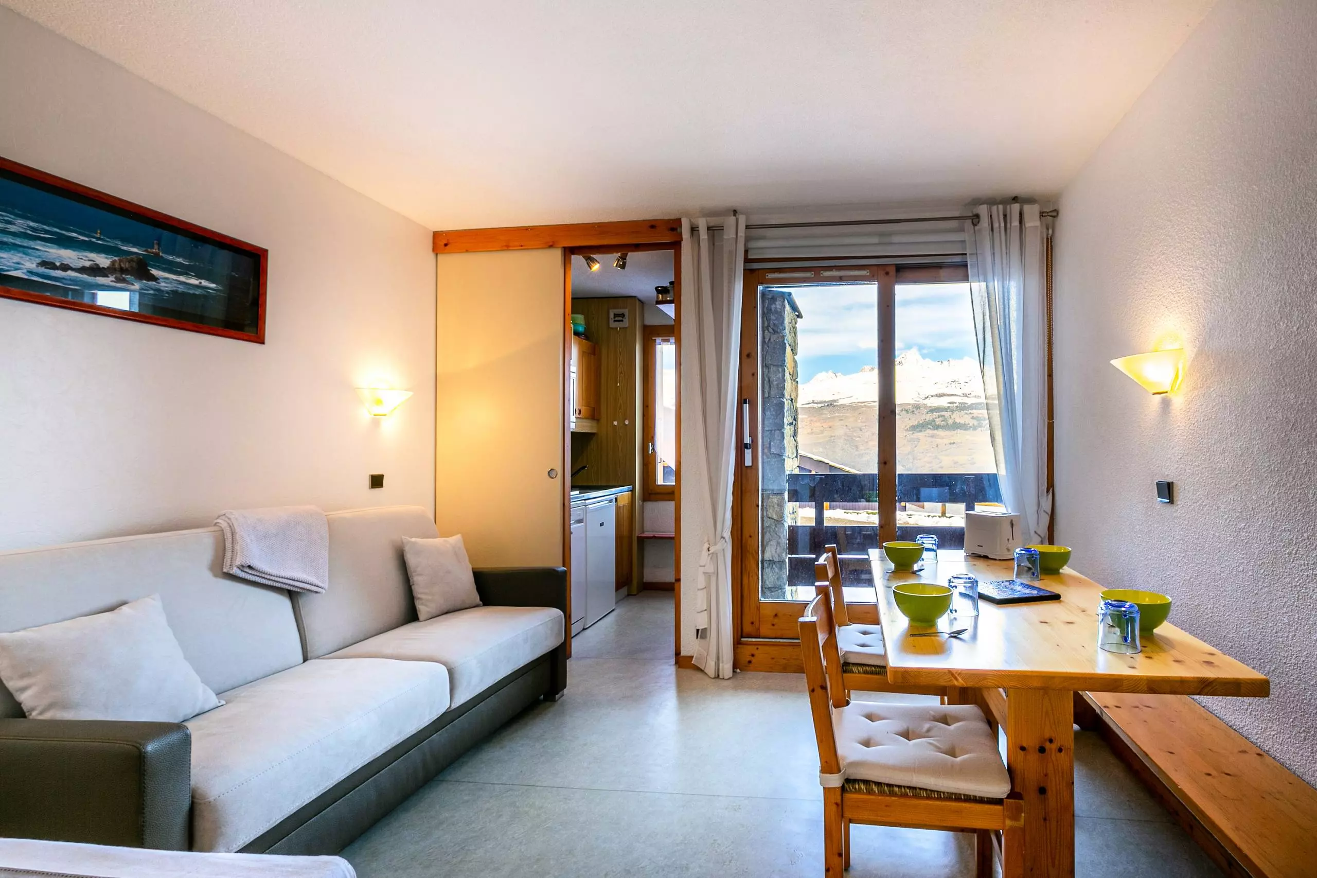 L’Équerre est située à moins de 300 mètres des commerces et du centre station. Départ et retour des pistes de ski à environ 100 mètres. Parking public à disposition devant la résidence. Les appartements exposés Nord bénéficient d'une belle vue sur la vallée et sur le Mont Blanc.
